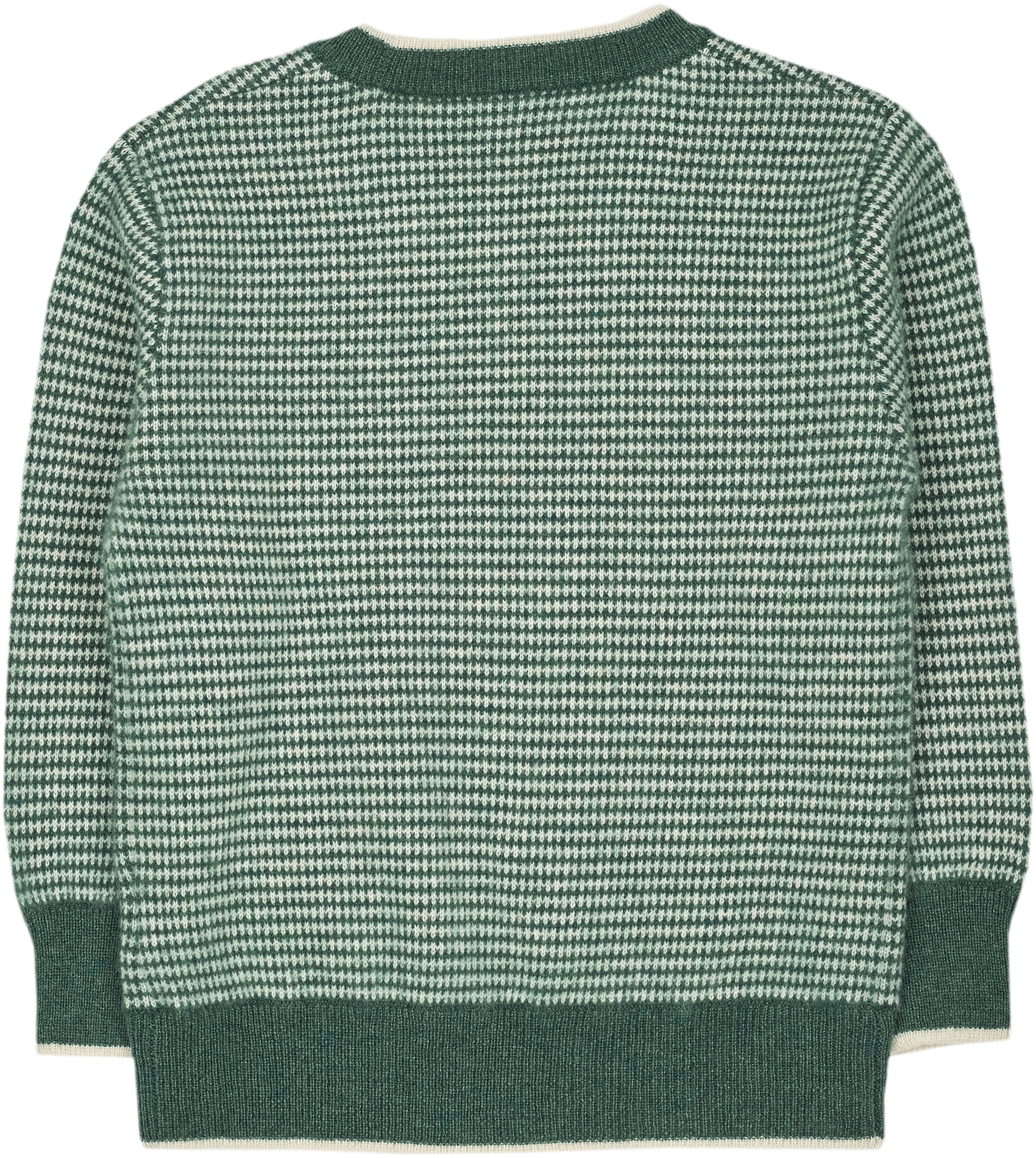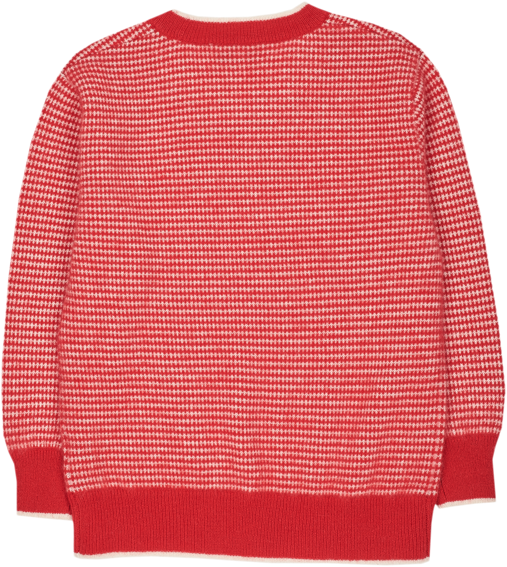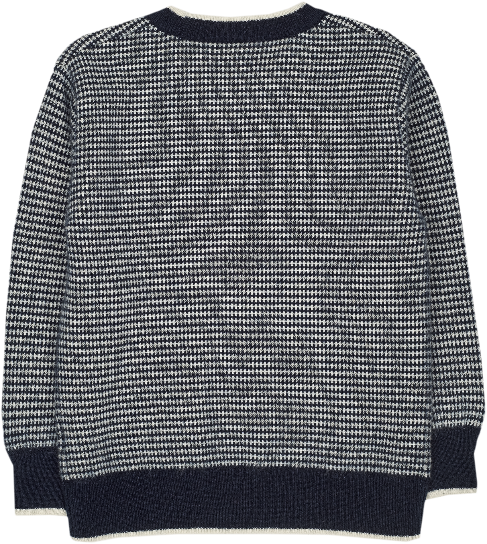 The perfect statement piece for your little one, made of 100% Mongolian Cashmere. This boy jumper features a bold contrasting neckline, sleeves and hemline, along with internal contrasts in a stunning houndstooth pattern. This lightweight jumper can be used in Fall or Spring or as a layer in Winter.