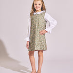 Girl - Brigitte Cotton Mini Dress in Green Meadows Print