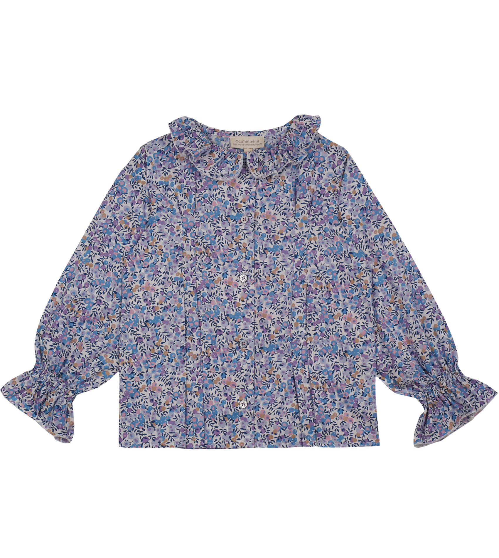 Capture the liberty of this stylish girl blouse made from 100% cotton,̴ with a ruffle collar, ruffle long sleeves and pleats on the top chest. Signature Cashmirino buttons on the front.