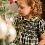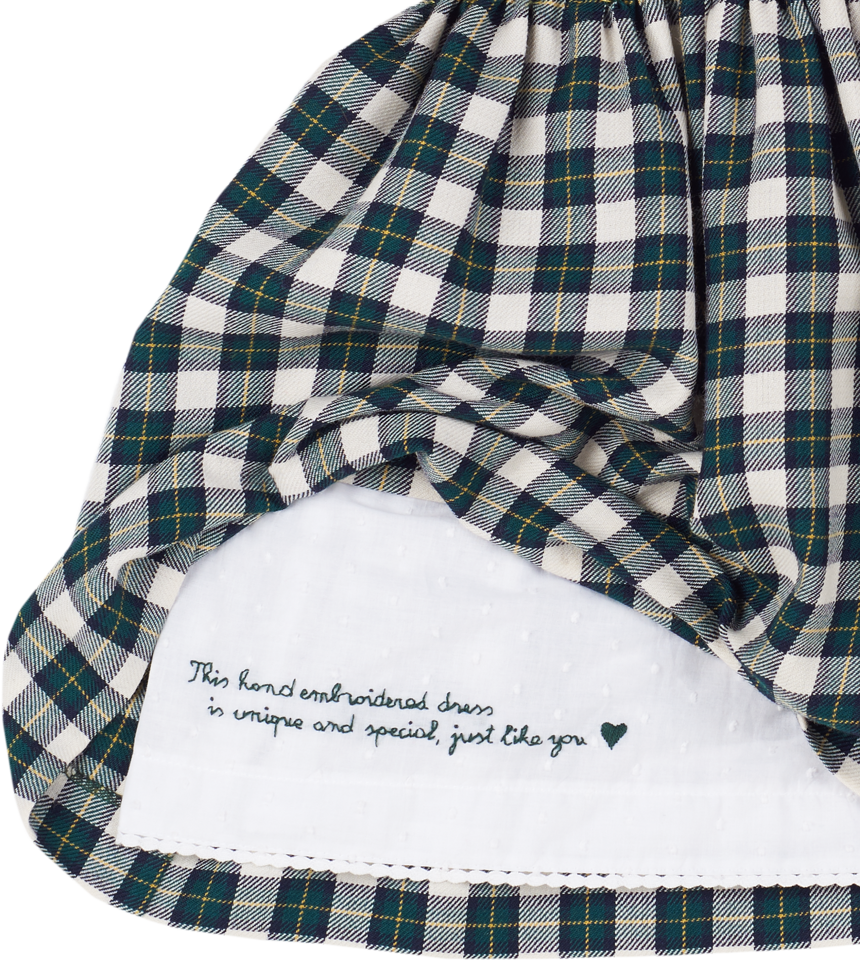 The Carys Dress is a charming and sophisticated piece that combines traditional tartan patterns with delicate craftsmanship. Designed for comfort and style, it’s perfect for festive gatherings or special occasions.