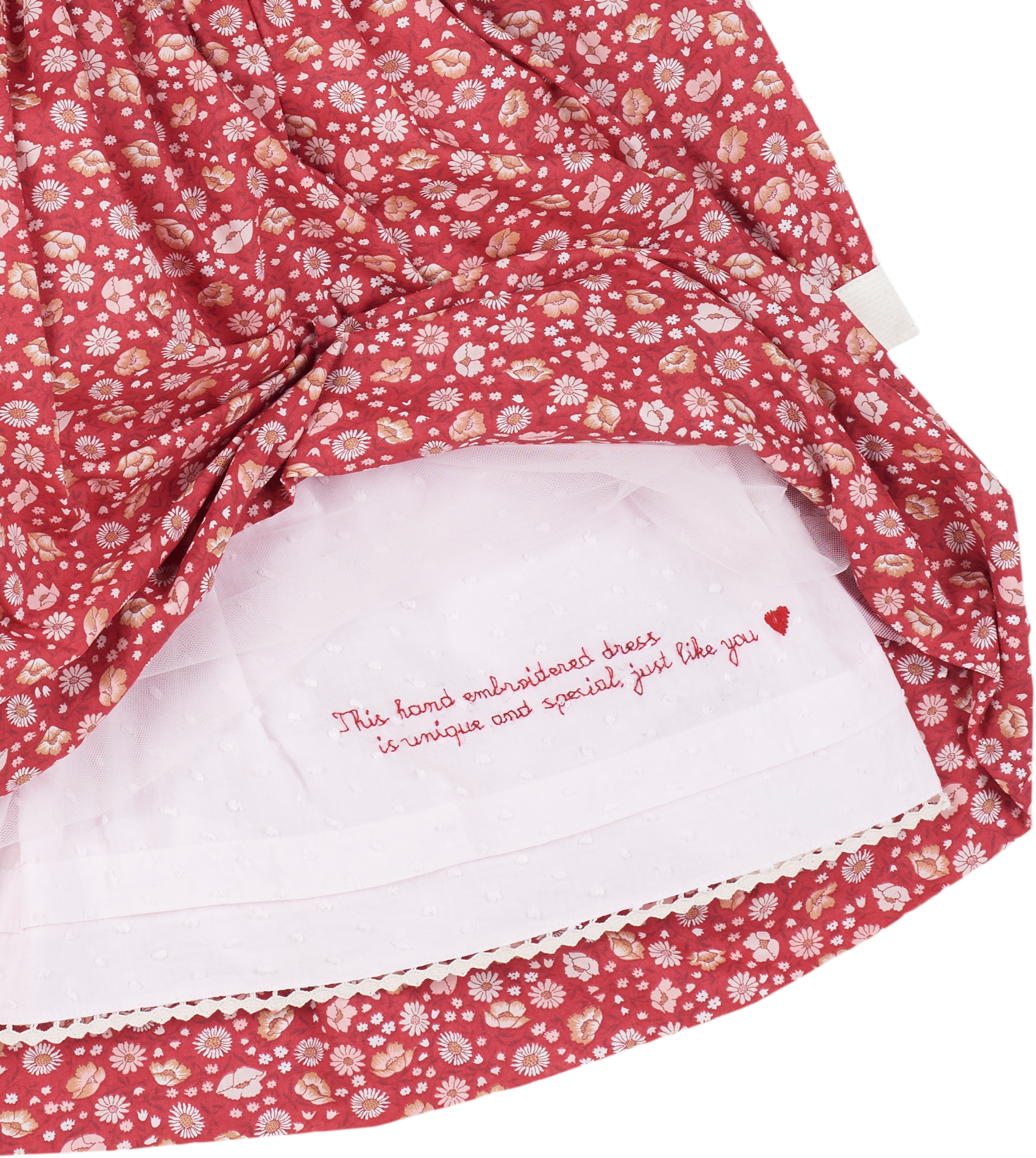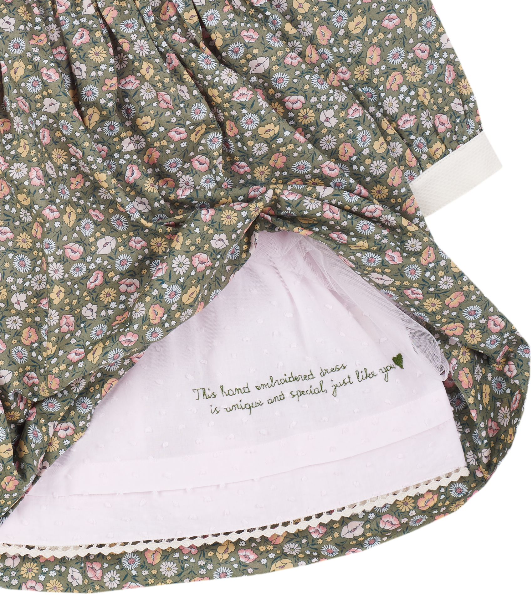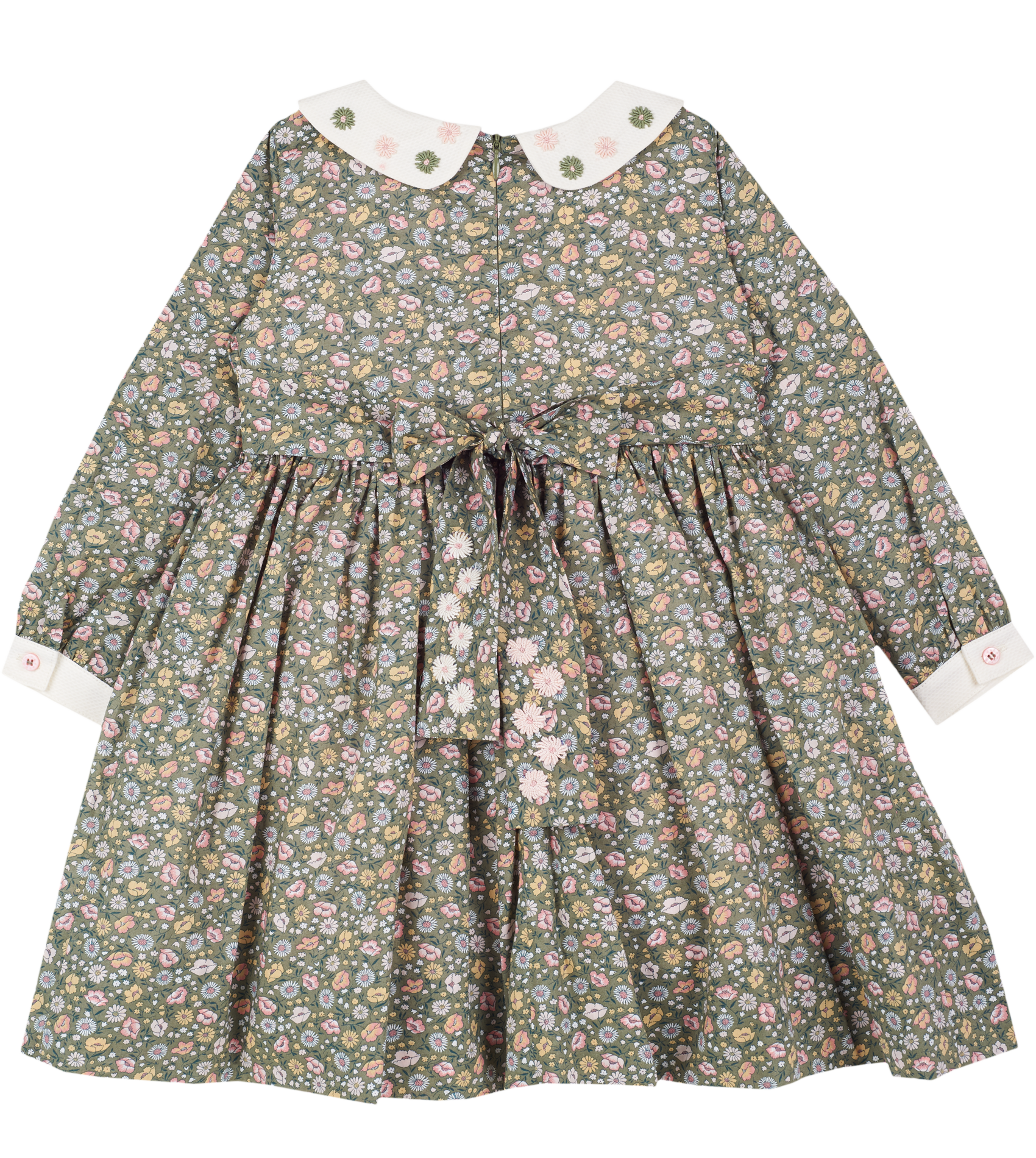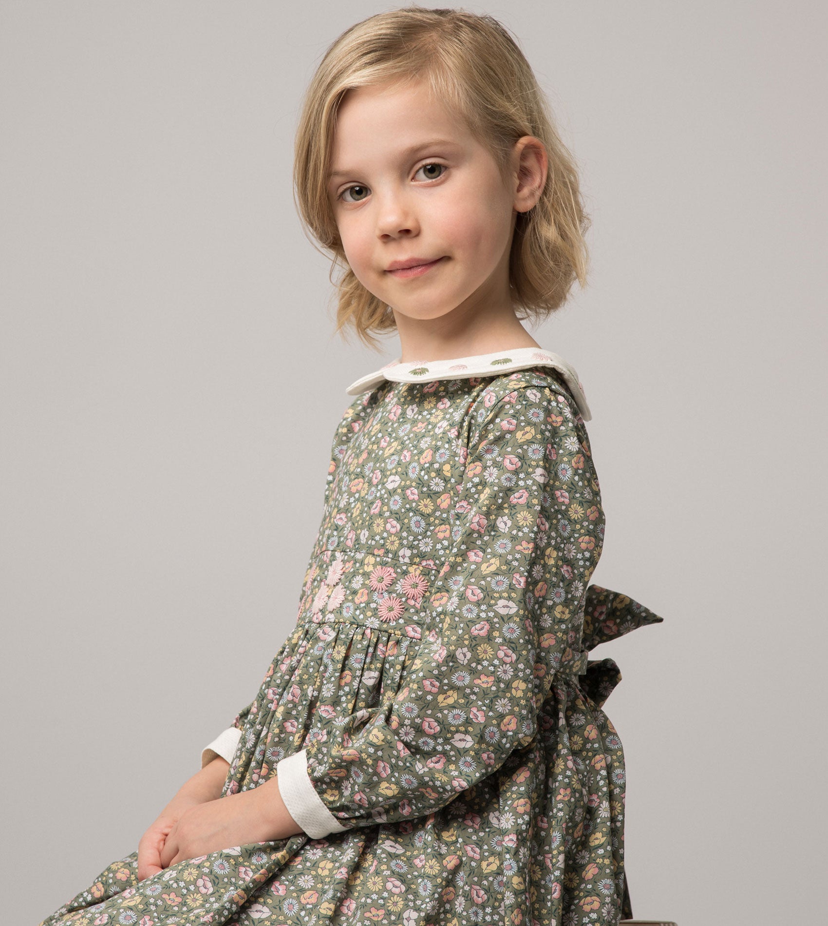 The Colette dress blends timeless charm with exquisite craftsmanship. Made from luxurious Liberty print cotton—celebrated for its softness, durability, and intricate floral designs—this knee-length dress is perfect for both special occasions and refined everyday wear.