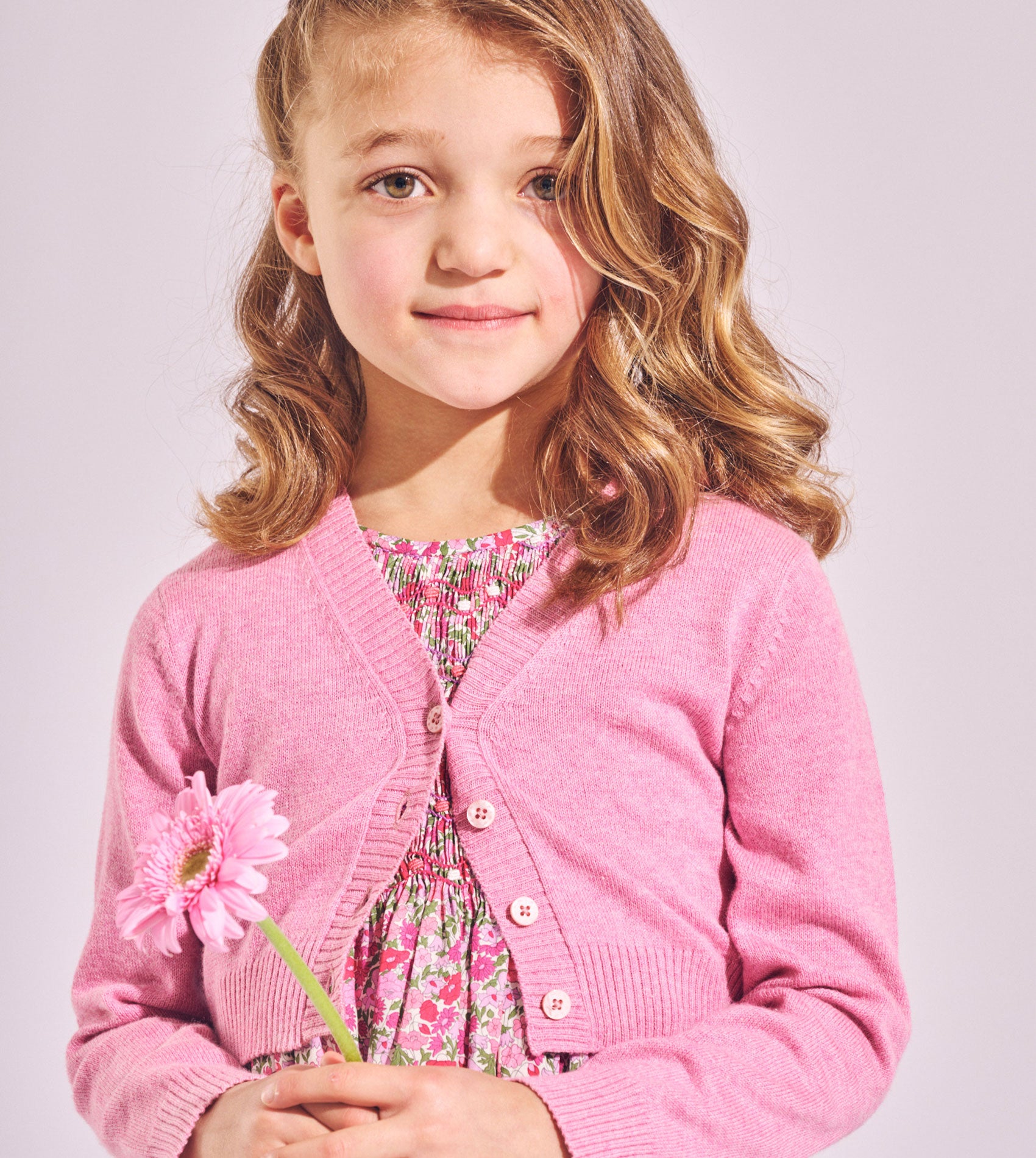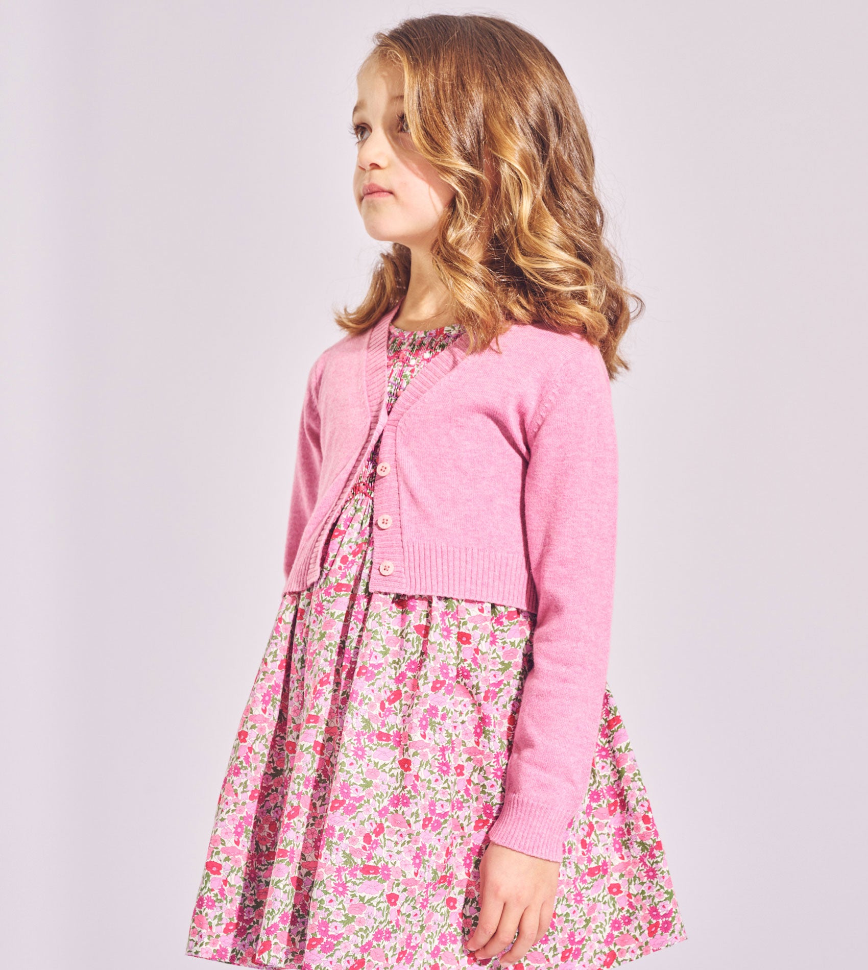 A charming wardrobe essential for changing seasons, this lightweight shrug for girls is beautifully crafted from 100% soft Pima cotton, renowned for its breathability, durability and luxurious softness. With a timeless V-neck, delicate ribbed trims, and Cashmirino’s signature buttons, it’s the perfect layering piece for smart or casual outfits.