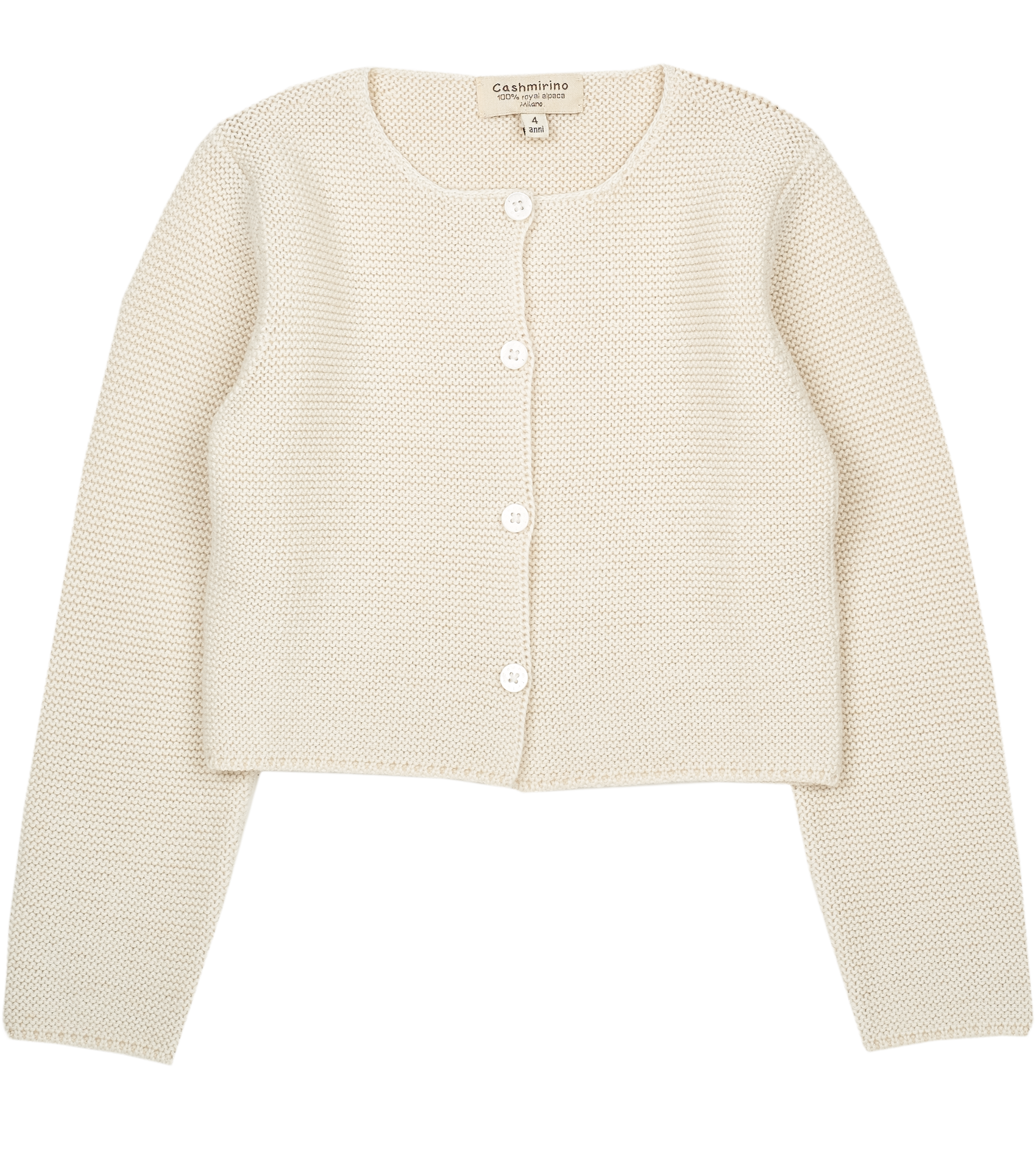 The timeless and elegant lines of this cropped girl cardigan are crafted from luxuriously soft 100% Peruvian Royal Alpaca. Beautifully simple in it's detailing, this smart little cardigan is topped off with colour-coded Cashmirino signature buttons.