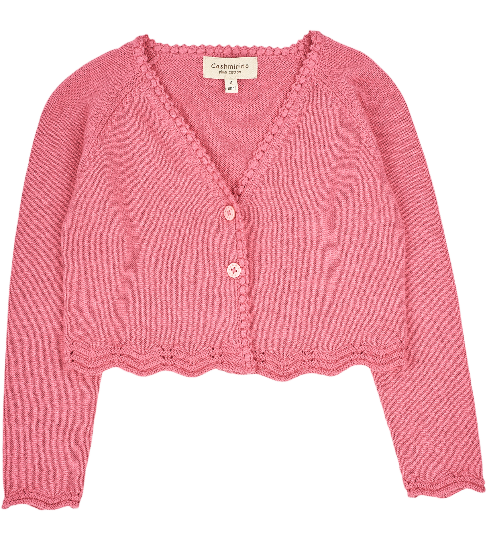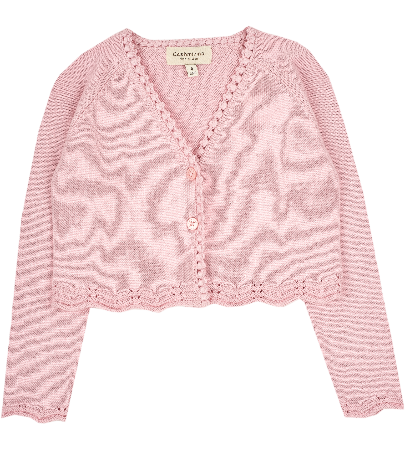 Girl - Giselle Pima Cotton V-Neck Shrug with Crochet & Scalloped Details