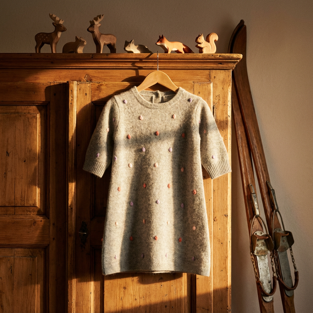Girl - 100% Cashmere Midi Dress with Dot Detail