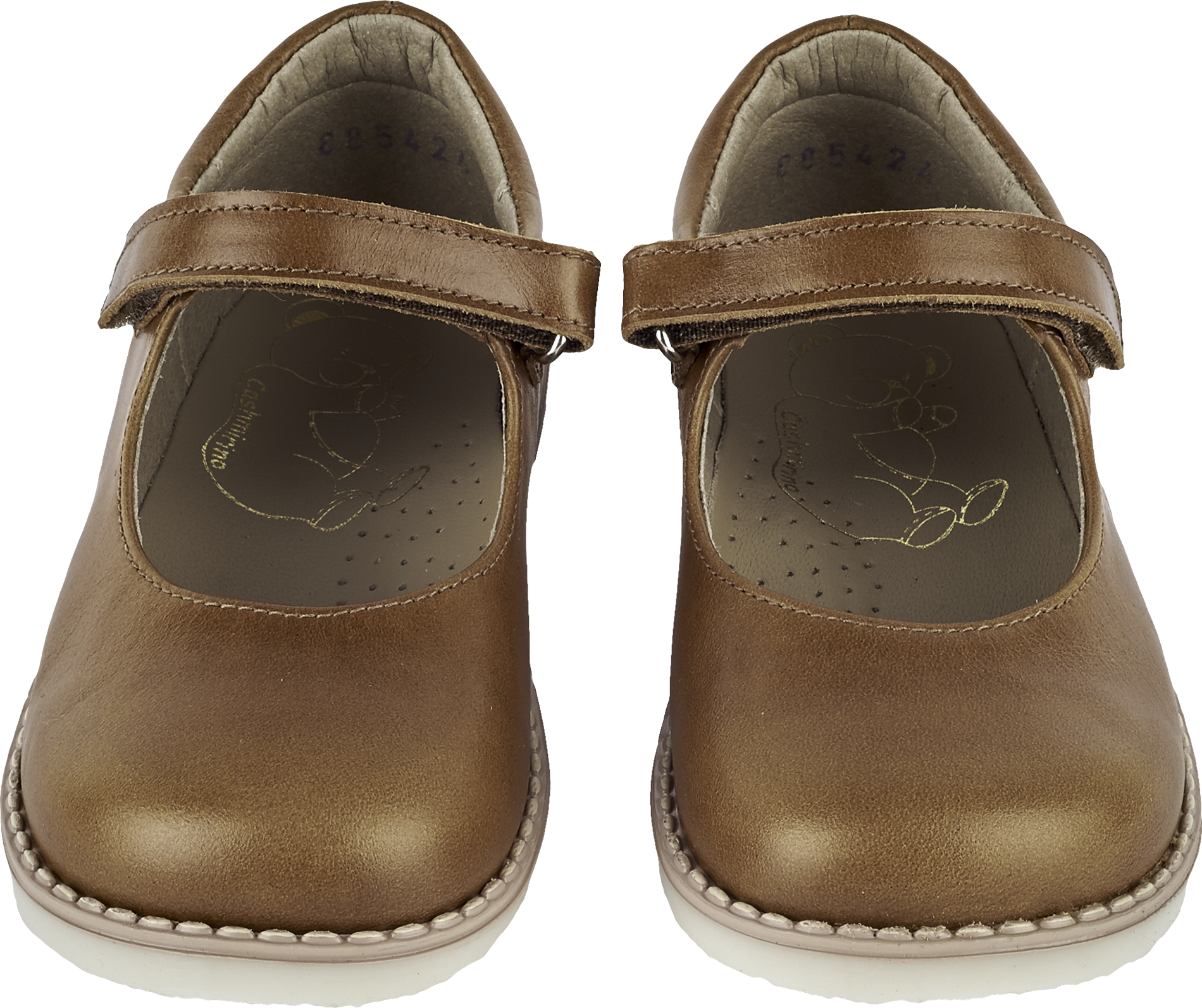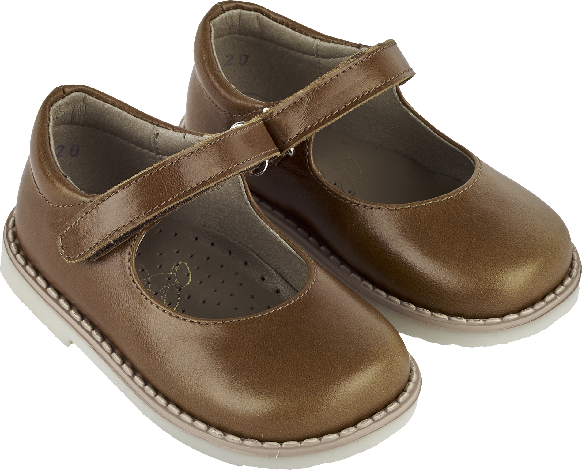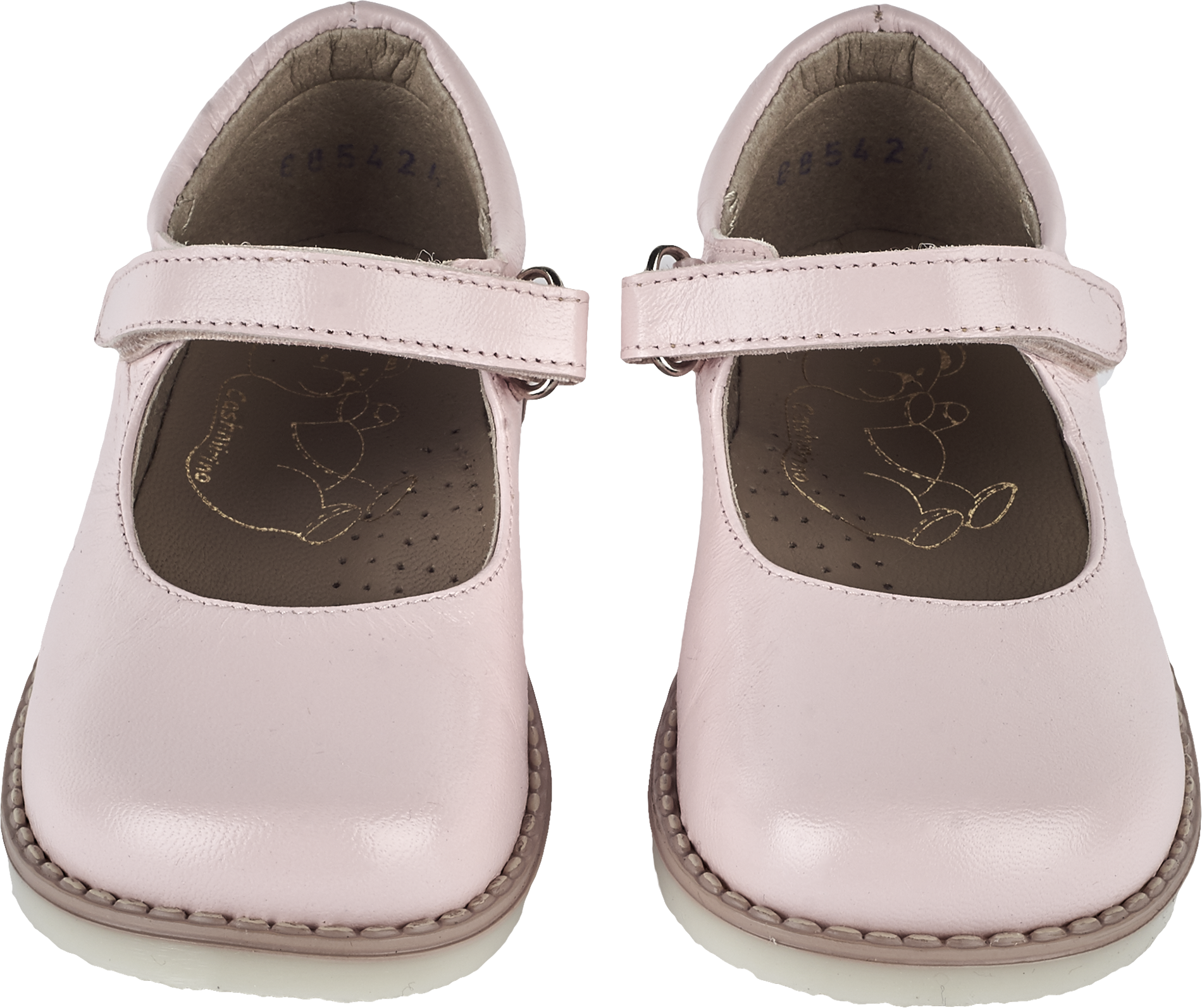 Featuring smooth leather uppers, cushioned leather insoles, and durable rubber soles, they are perfect for everyday wear as well as special occasions. The easy-to-fasten Velcro strap ensures a secure and comfortable fit, making them a practical yet timeless choice for growing girls.