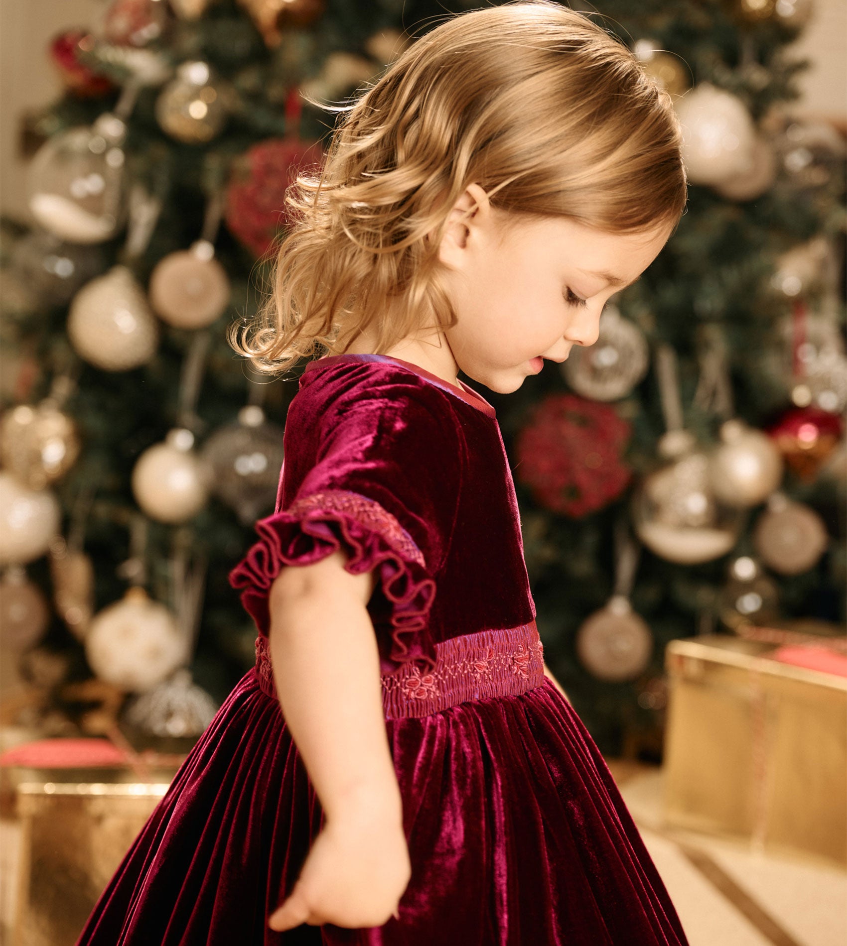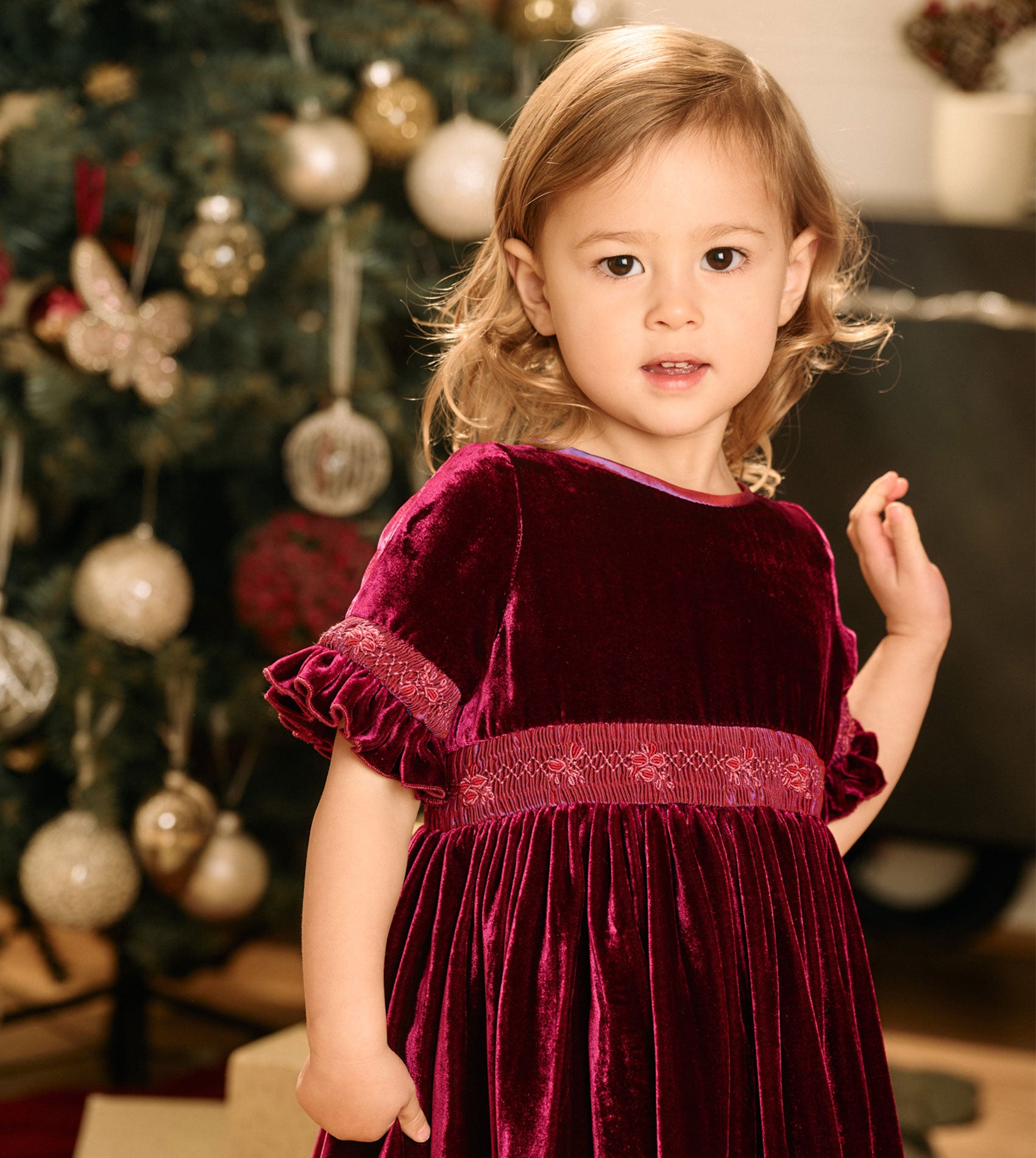 Girl - Letizia Velvet Hand Embroidered Smocked Dress – Cashmirino