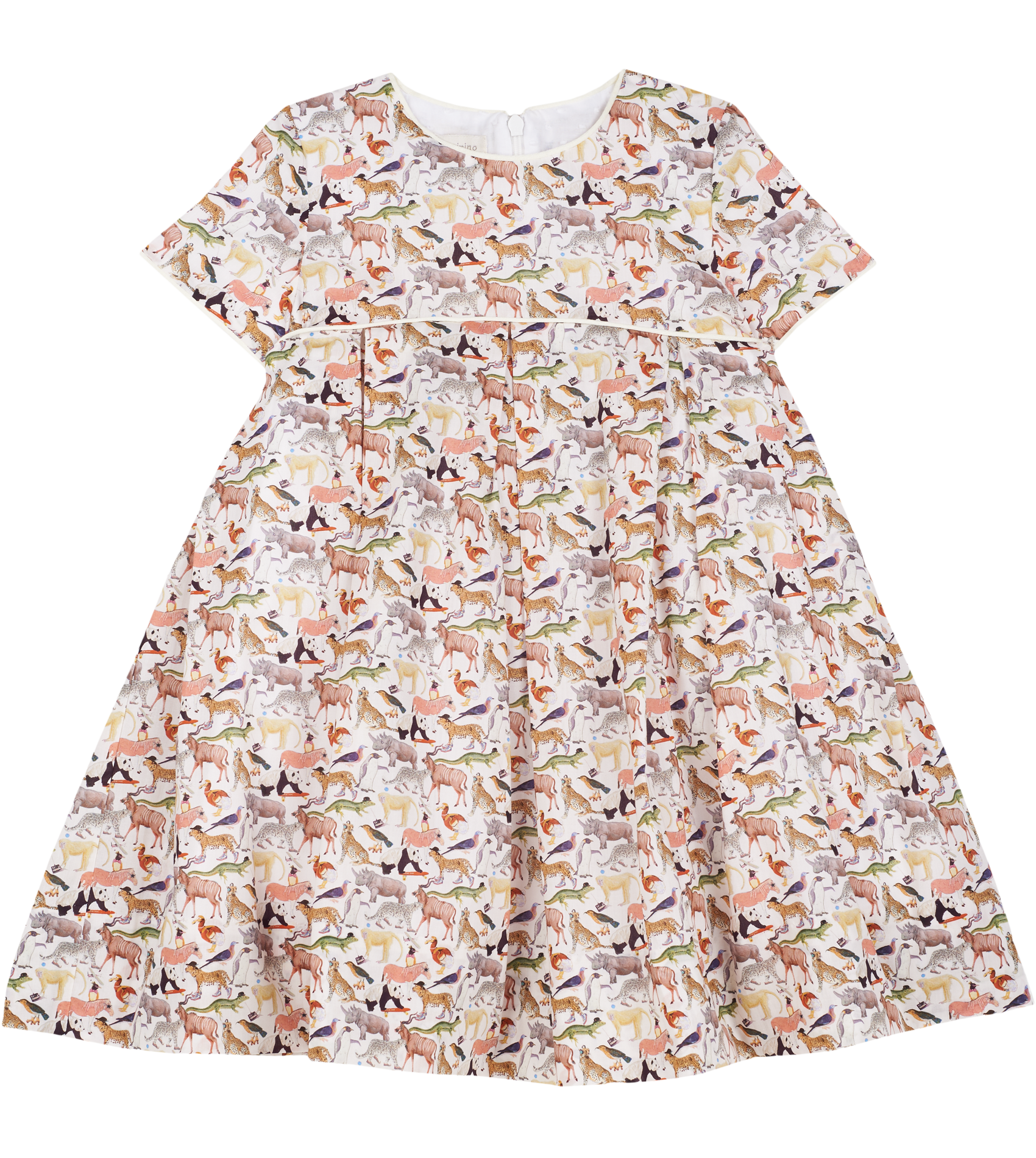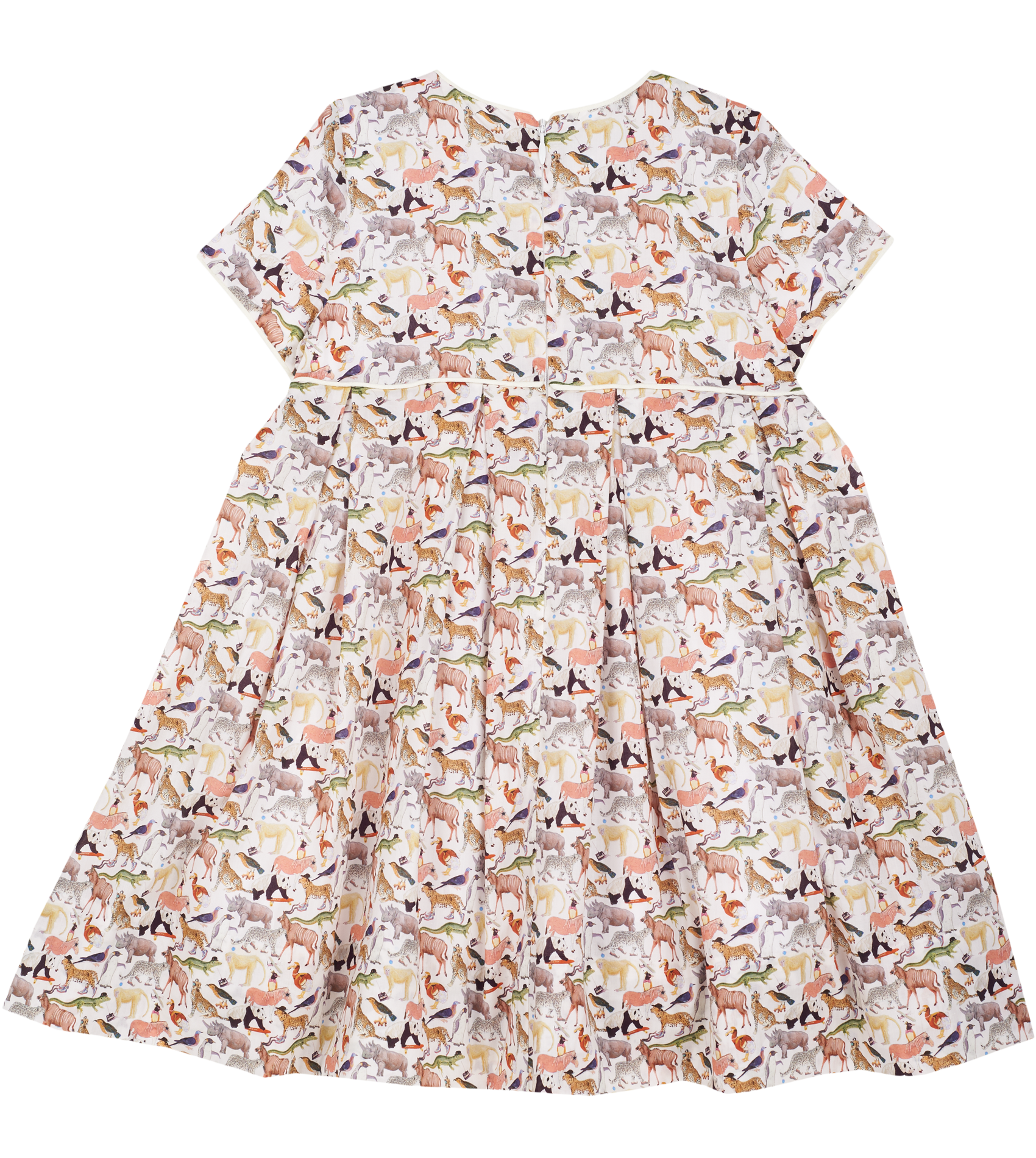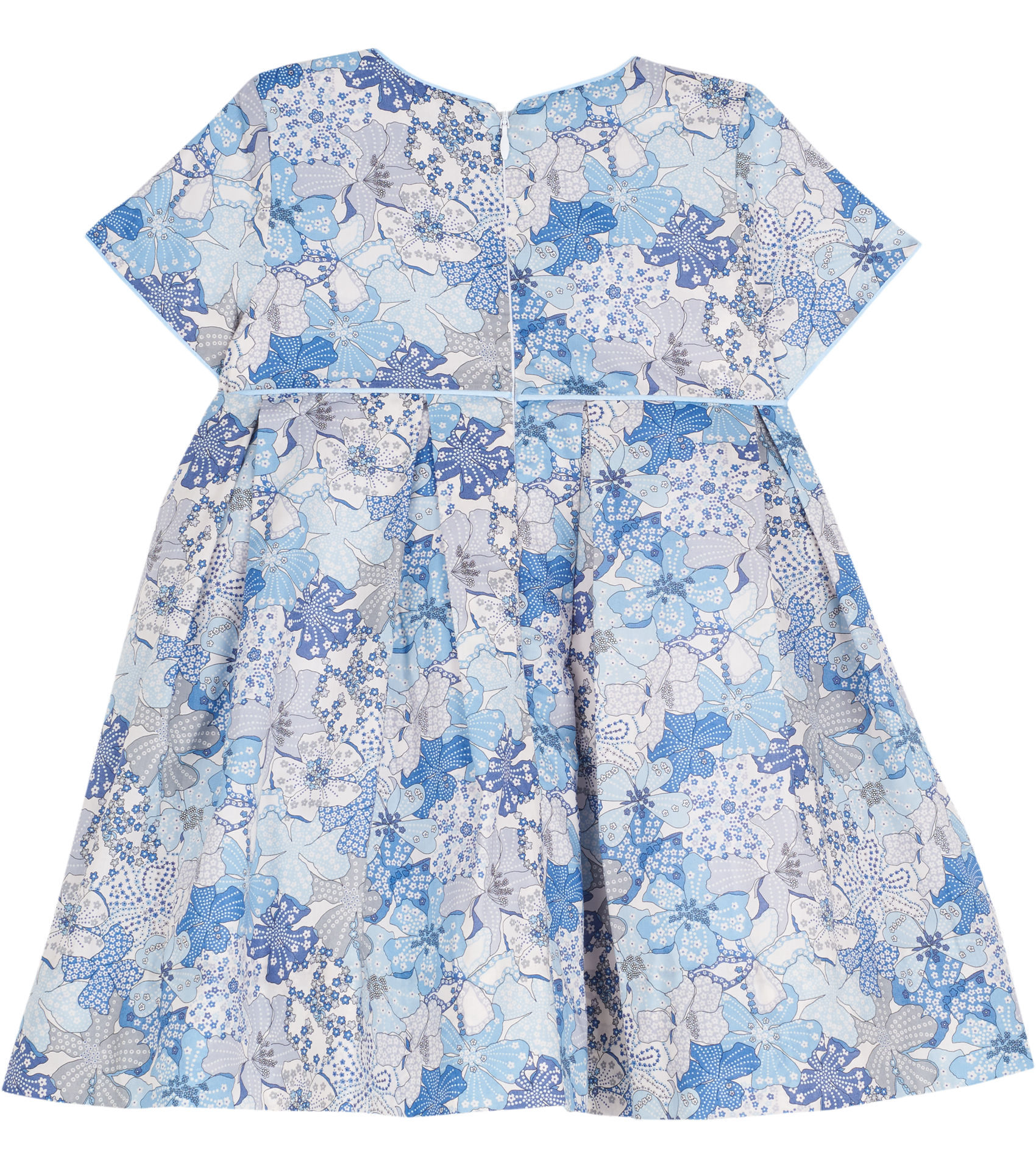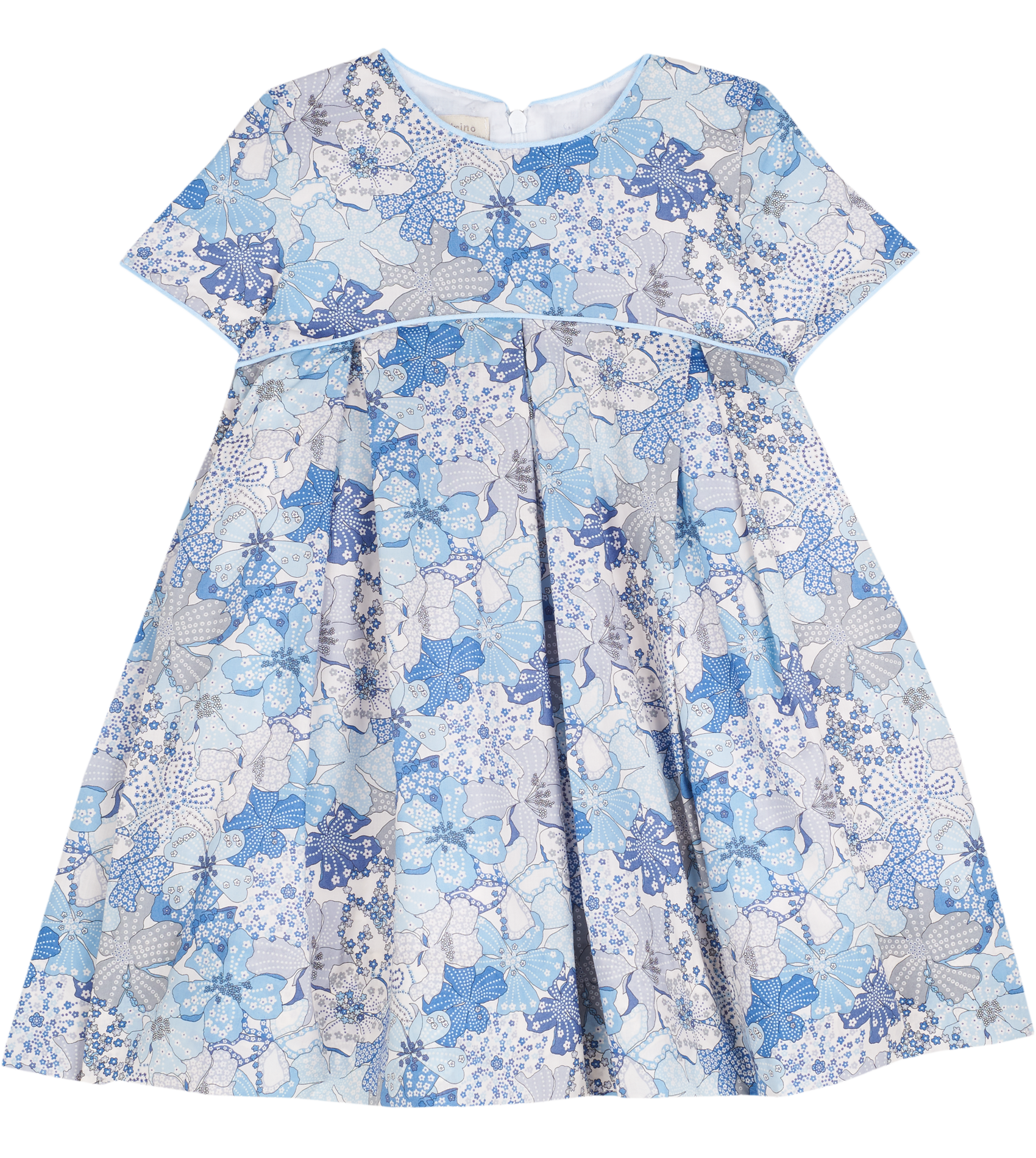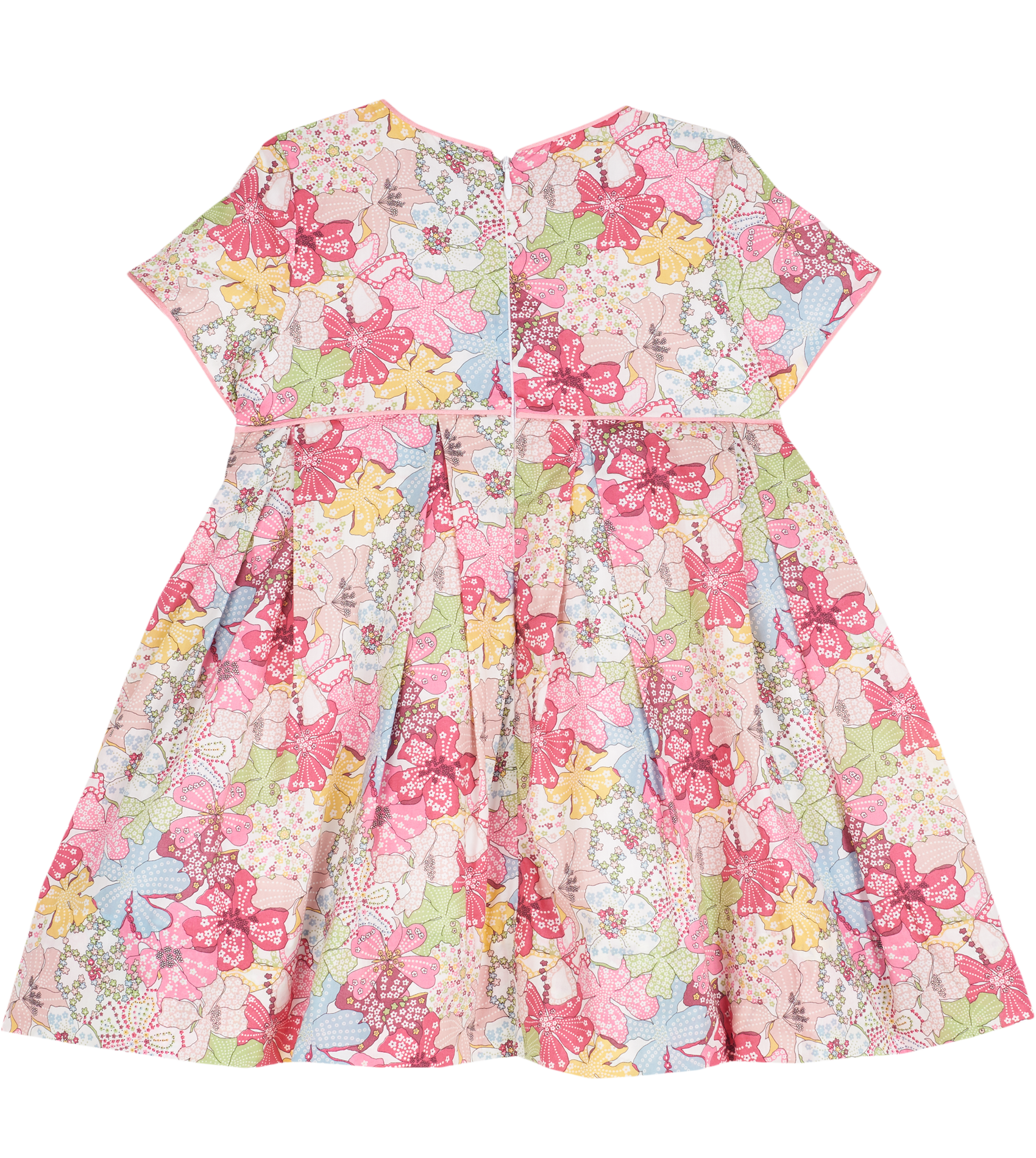 This exquisite cotton mini-length dress with short sleeves and a pleated skirt is perfect for summer adventures.
