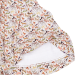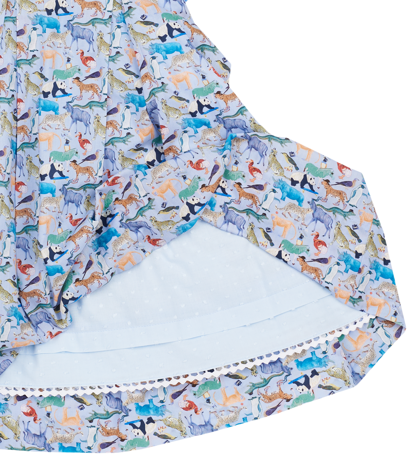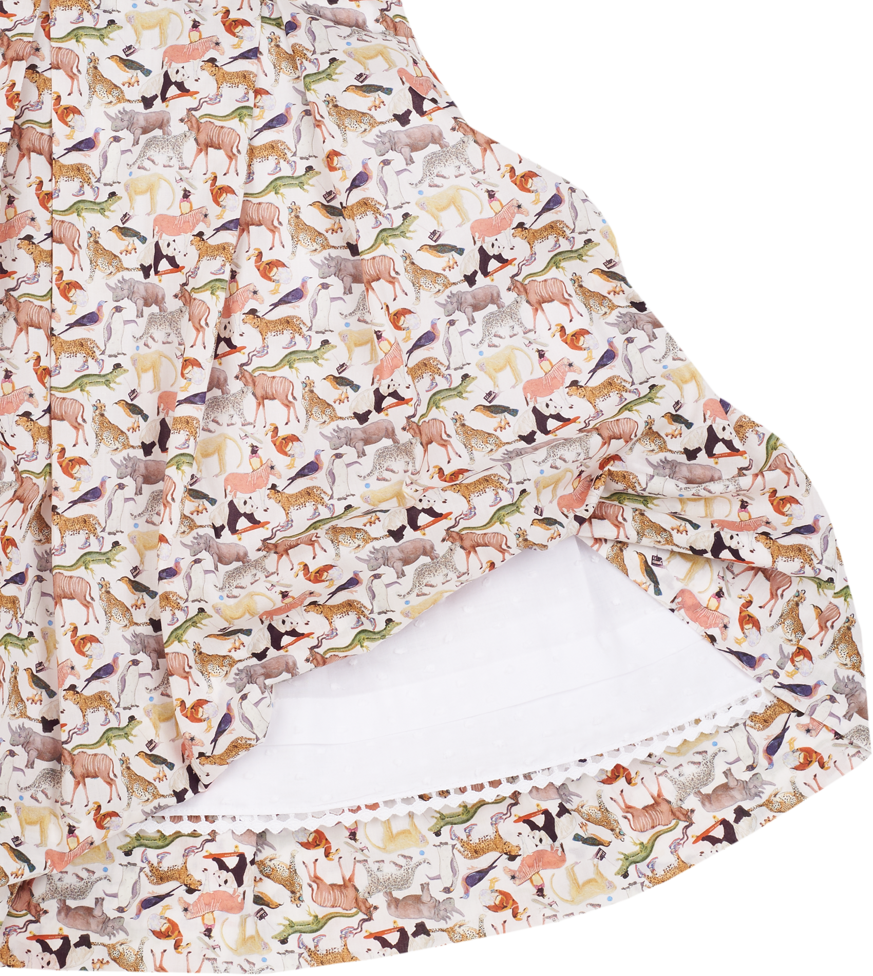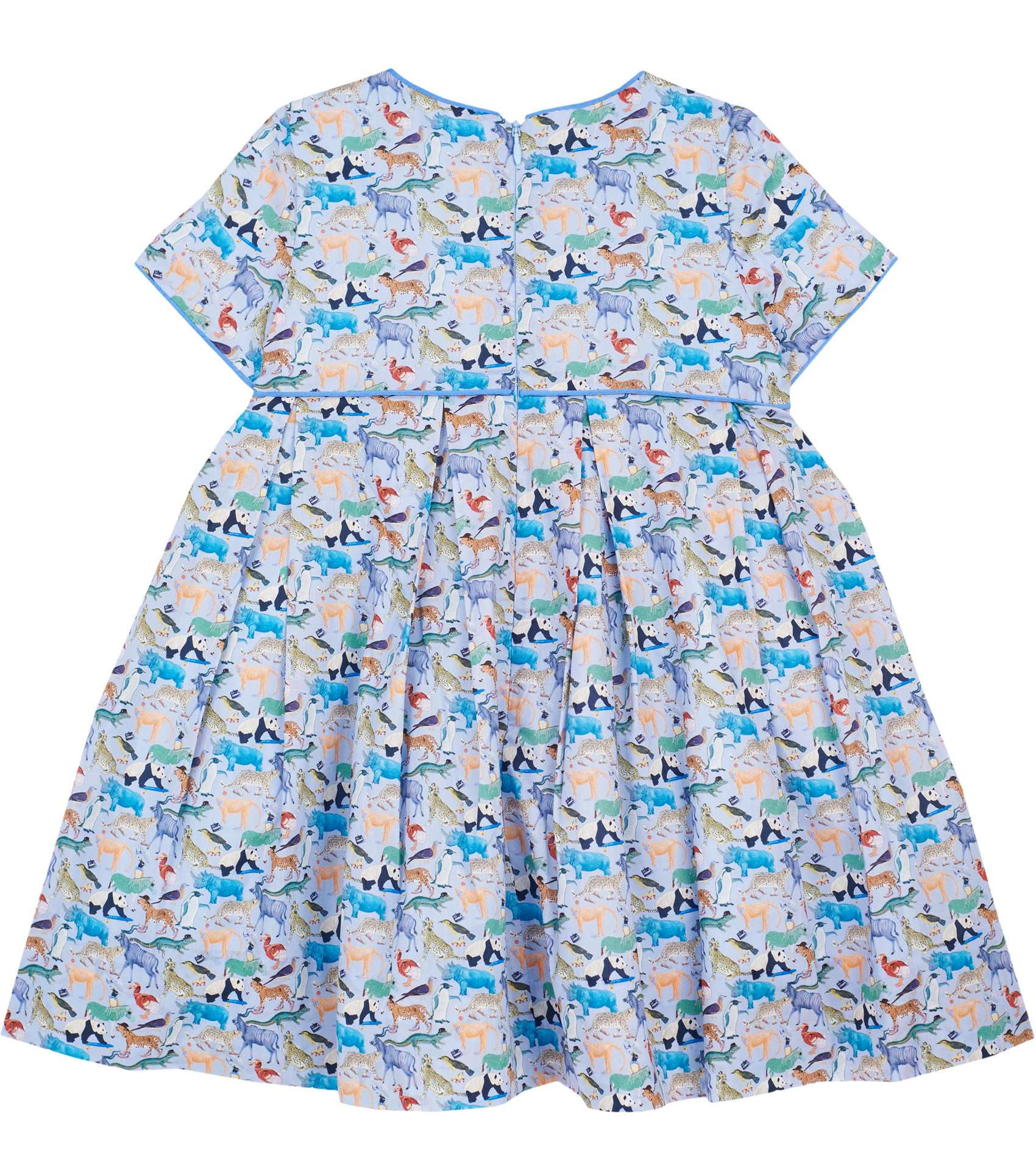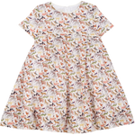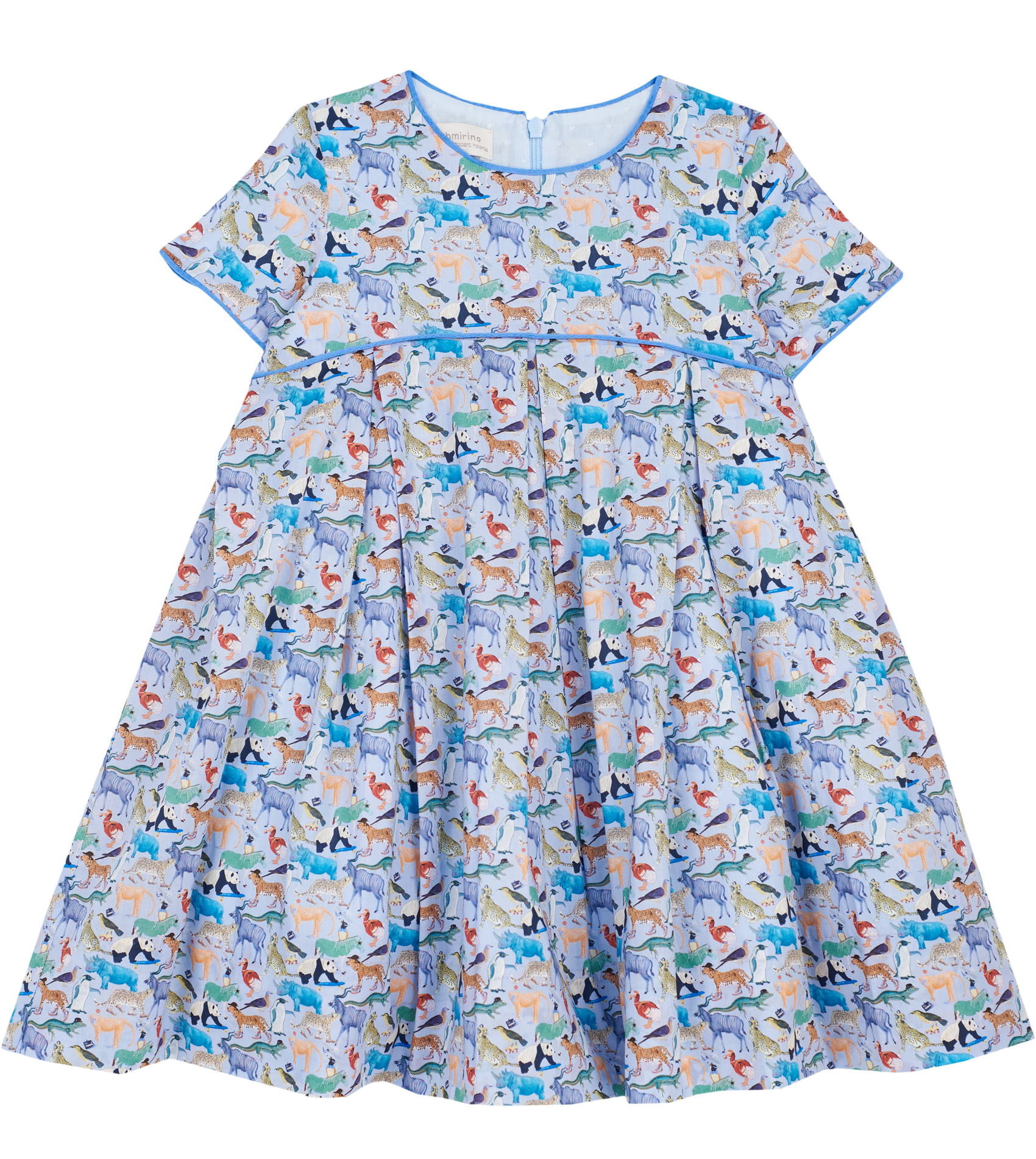 This exquisite cotton mini-length dress with short sleeves and a pleated skirt is perfect for summer adventures.