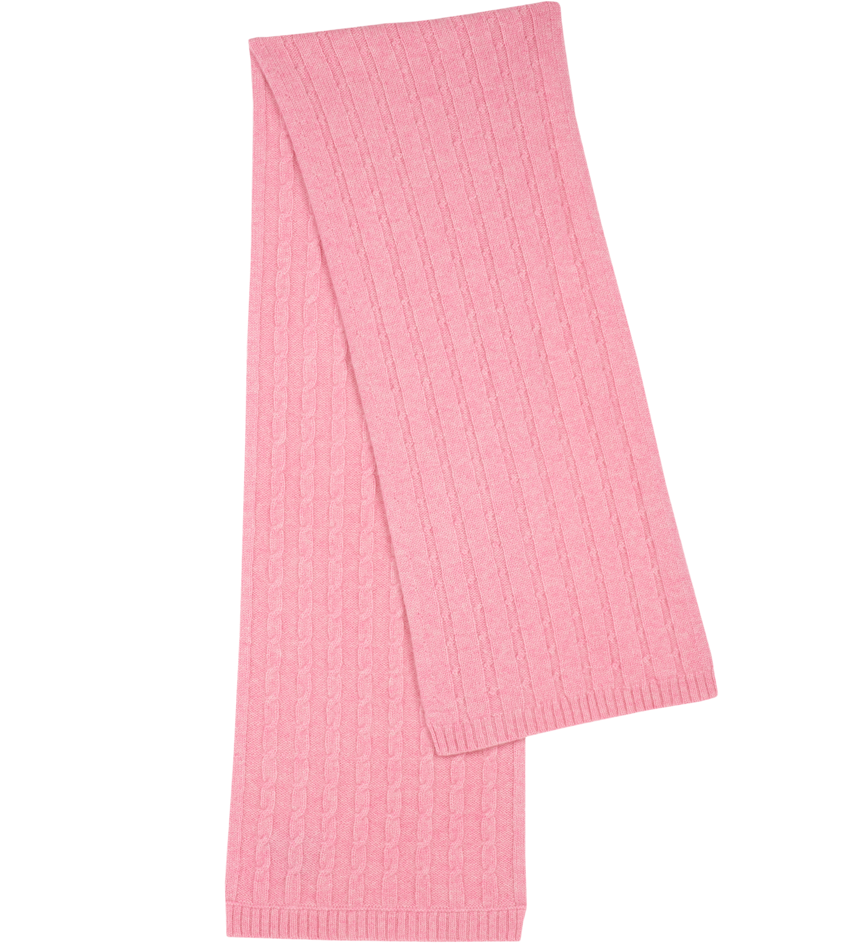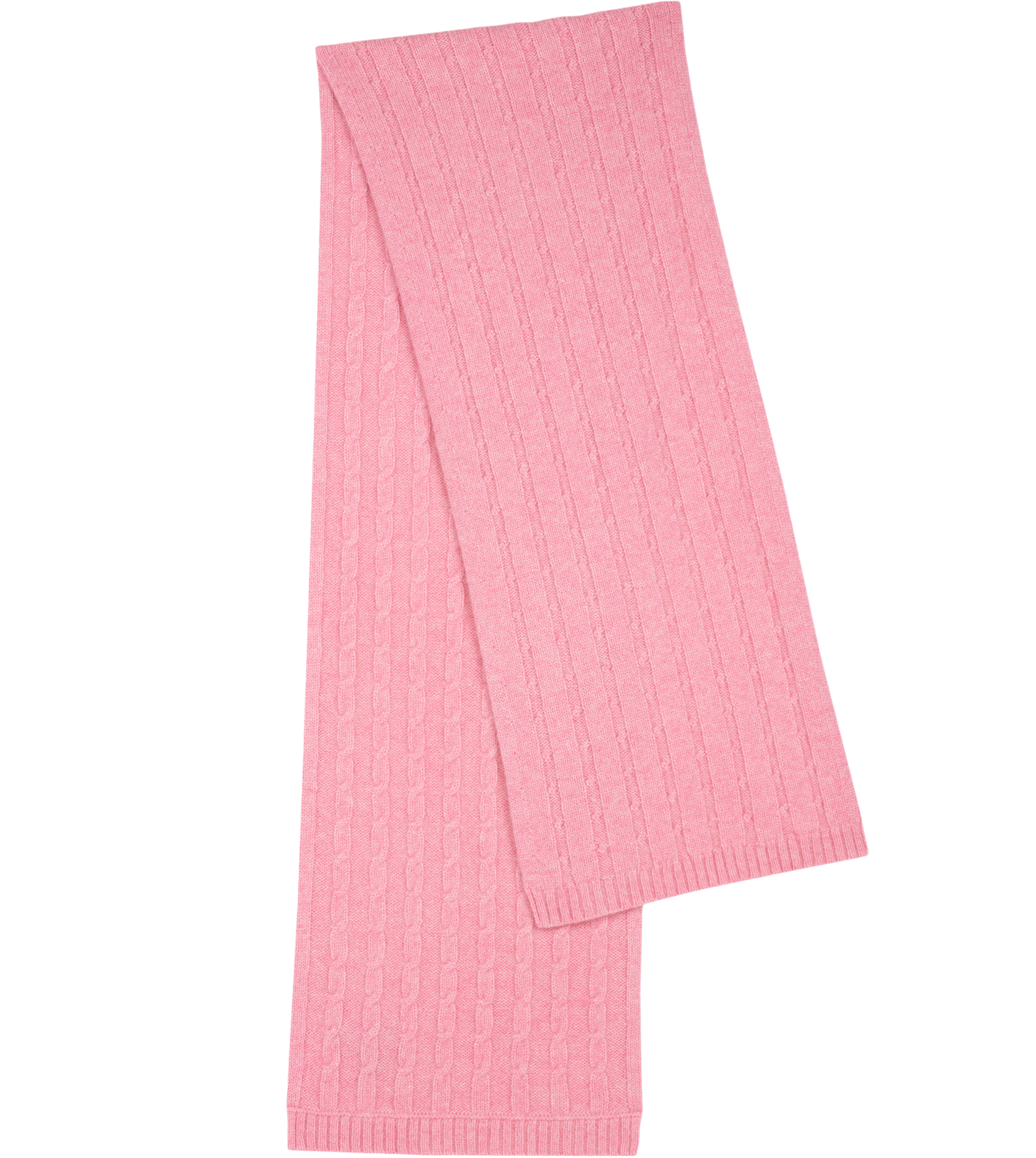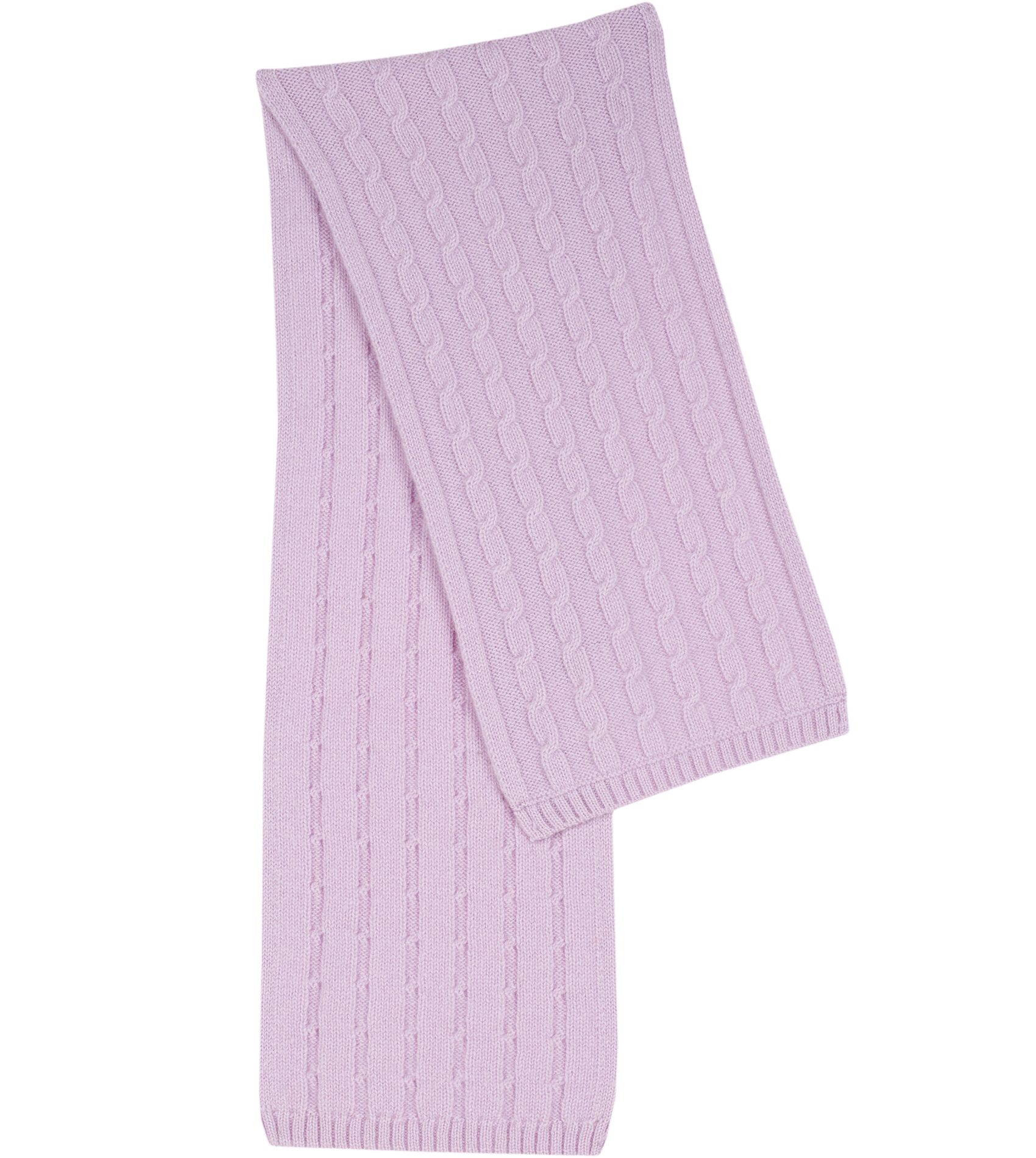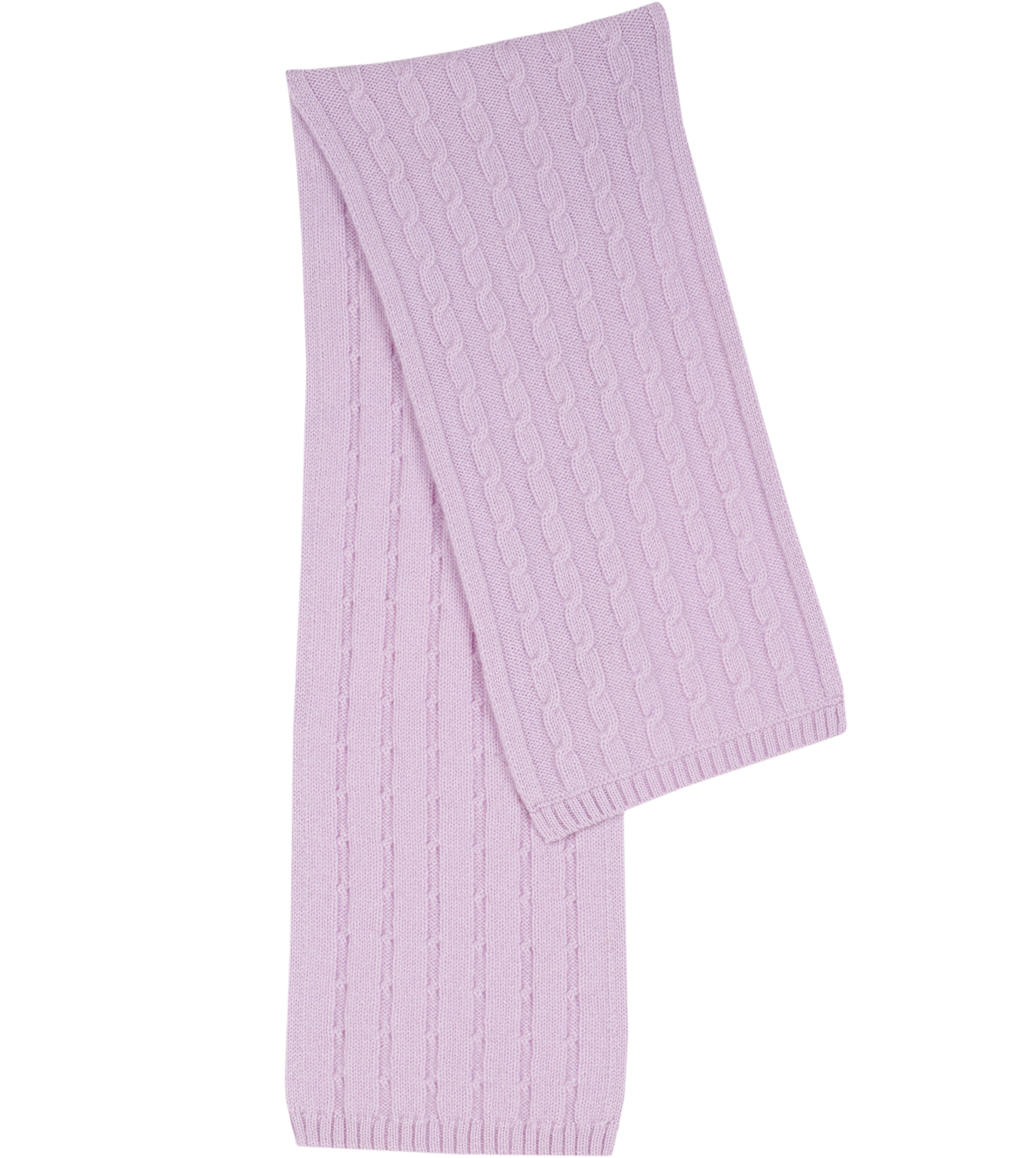 A cable knit scarf that is ideal for creating warmth during the colder seasons. Made from 100% cashmere.