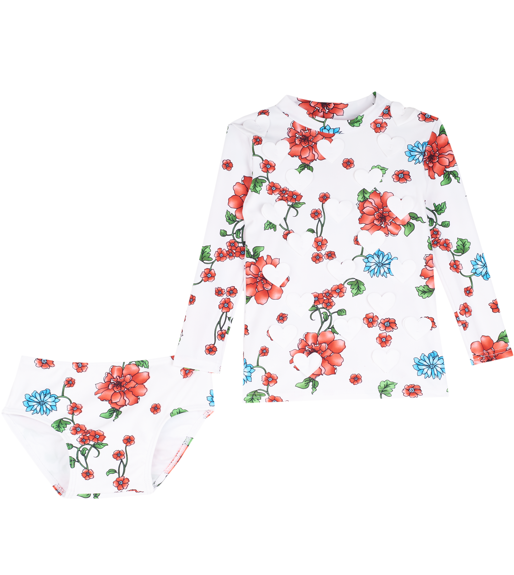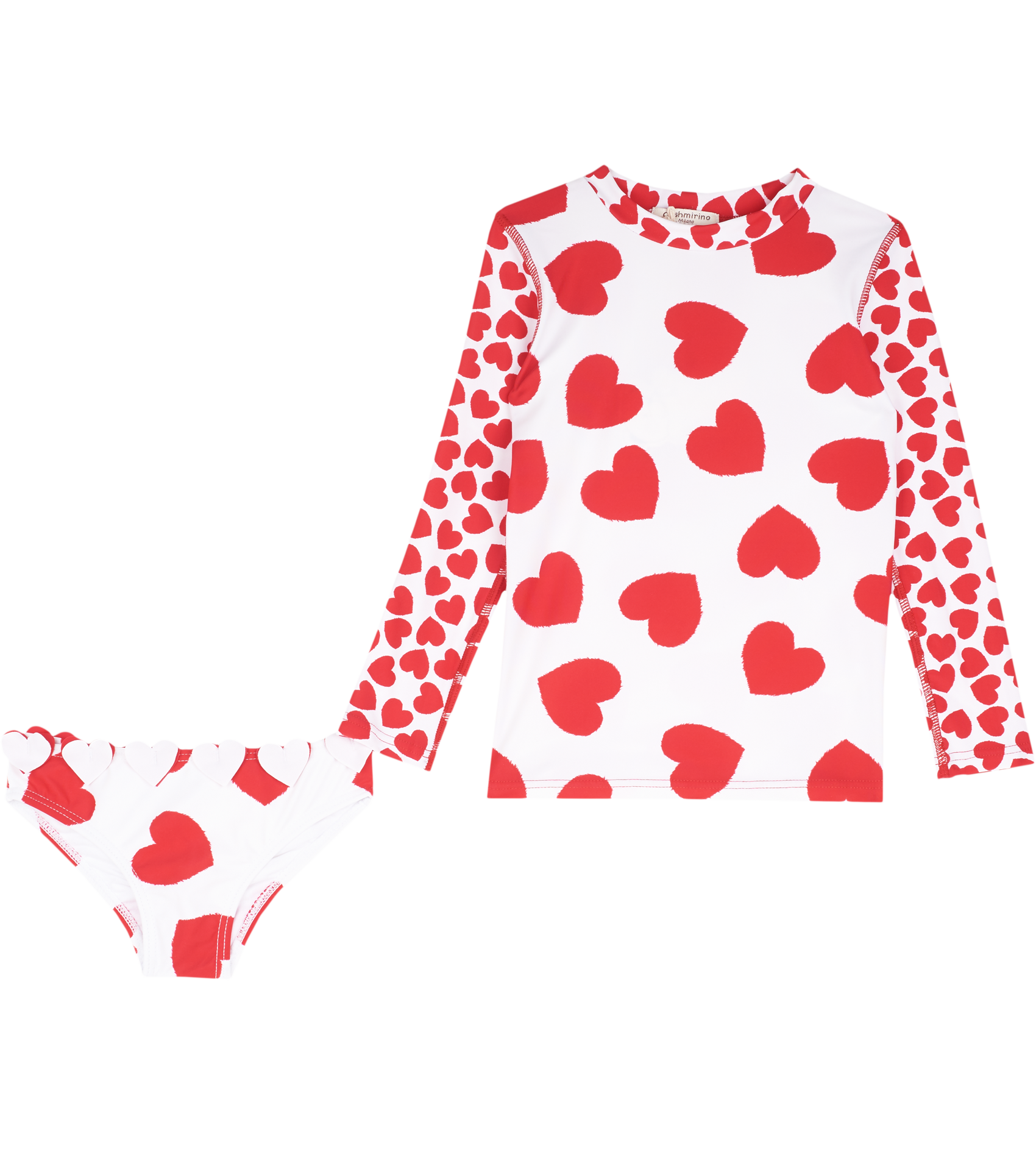 Girl – Siena Long Sleeve Two-Piece Swimsuit With Heart Applique