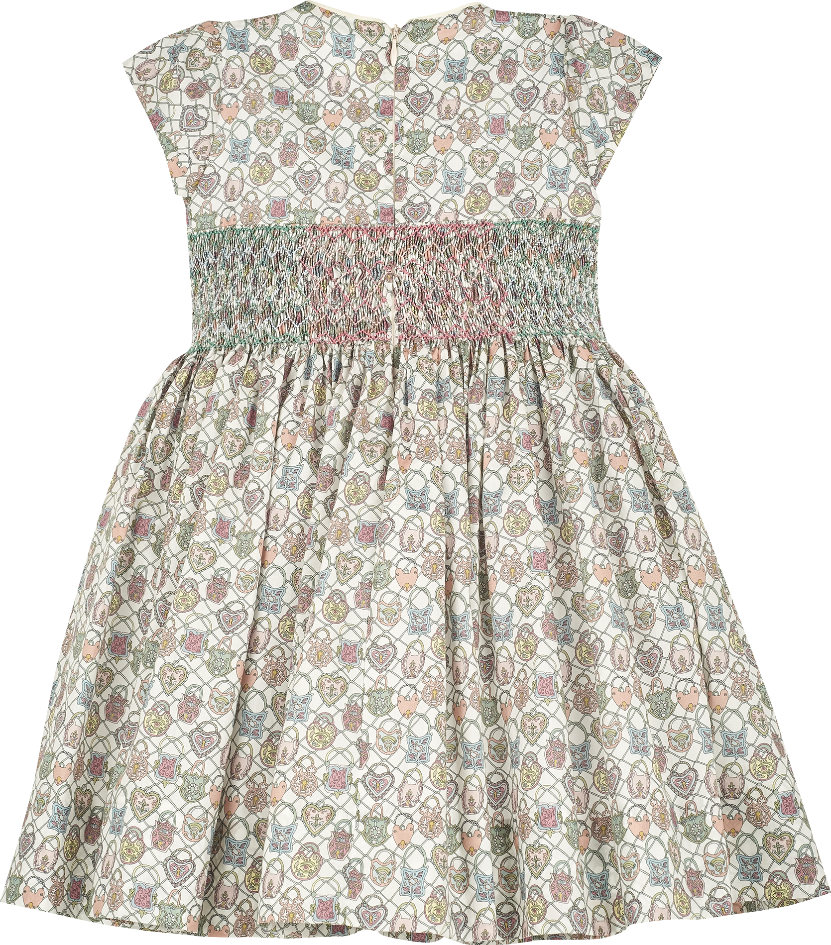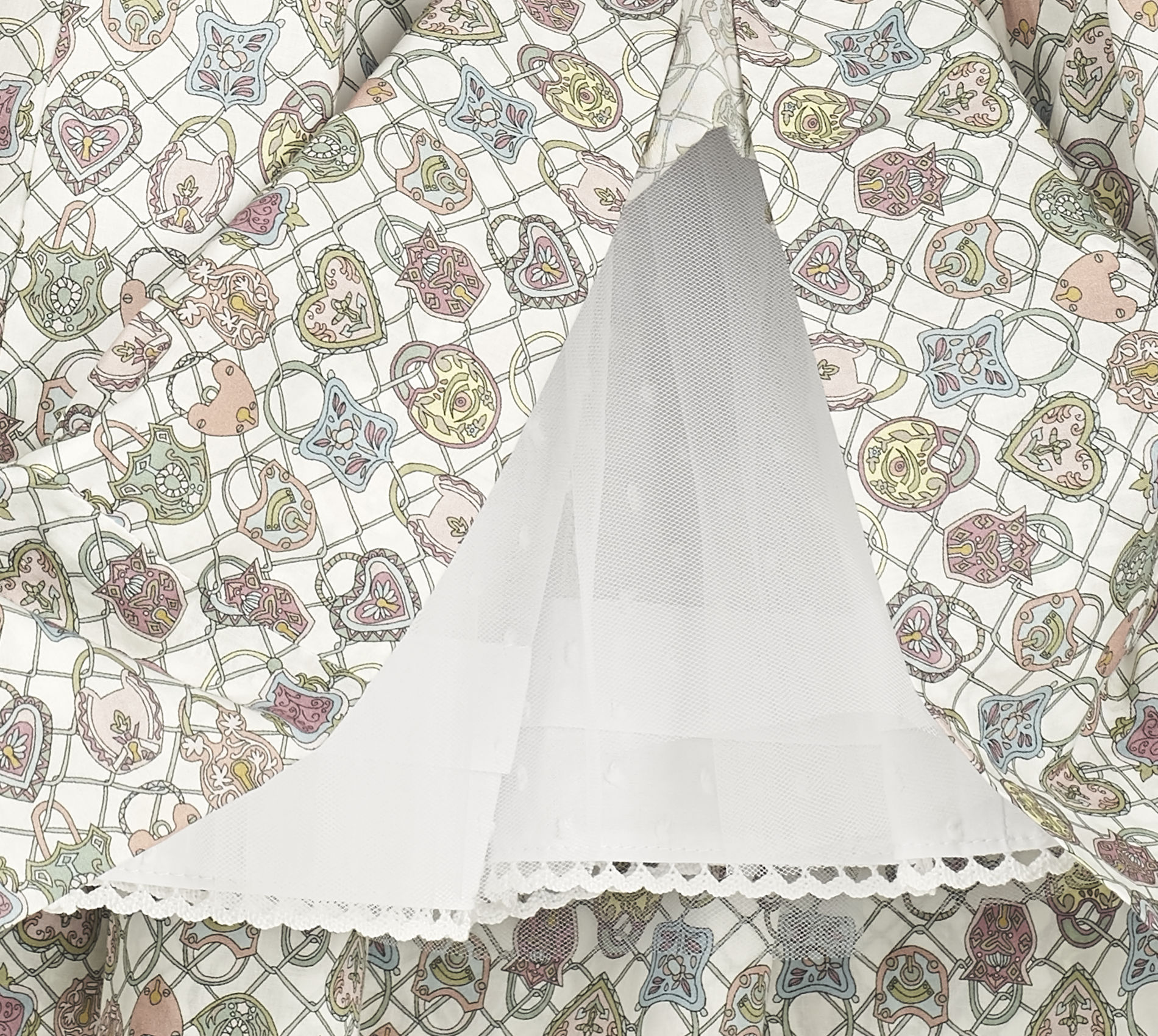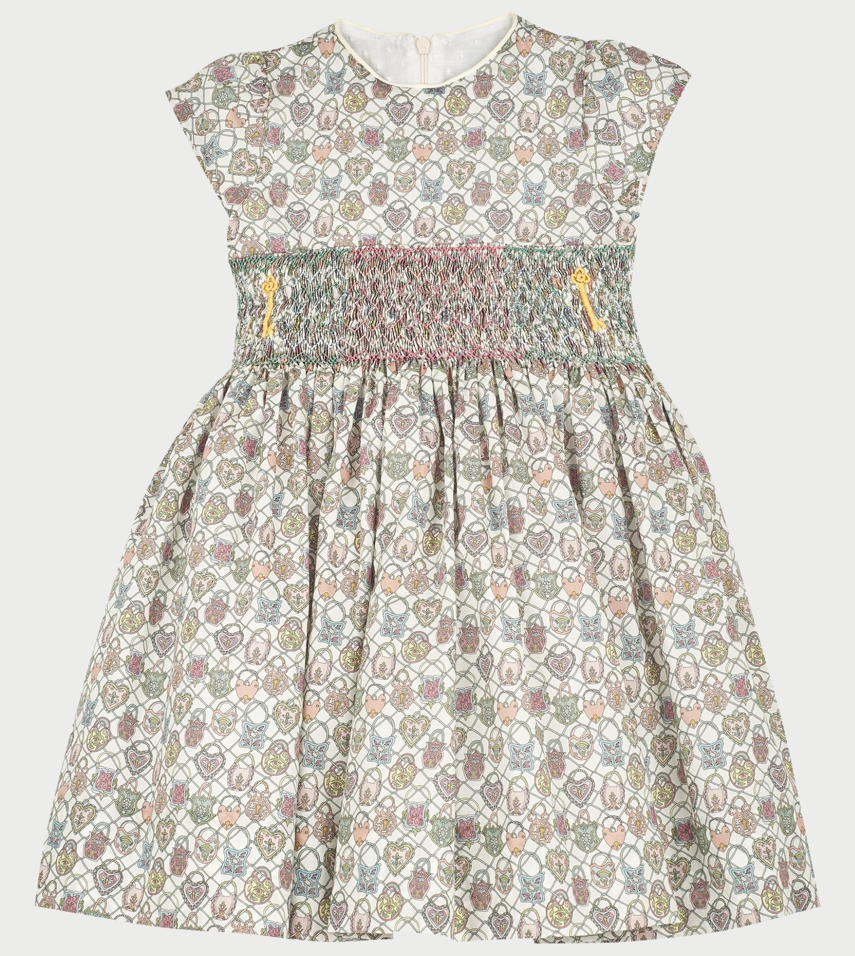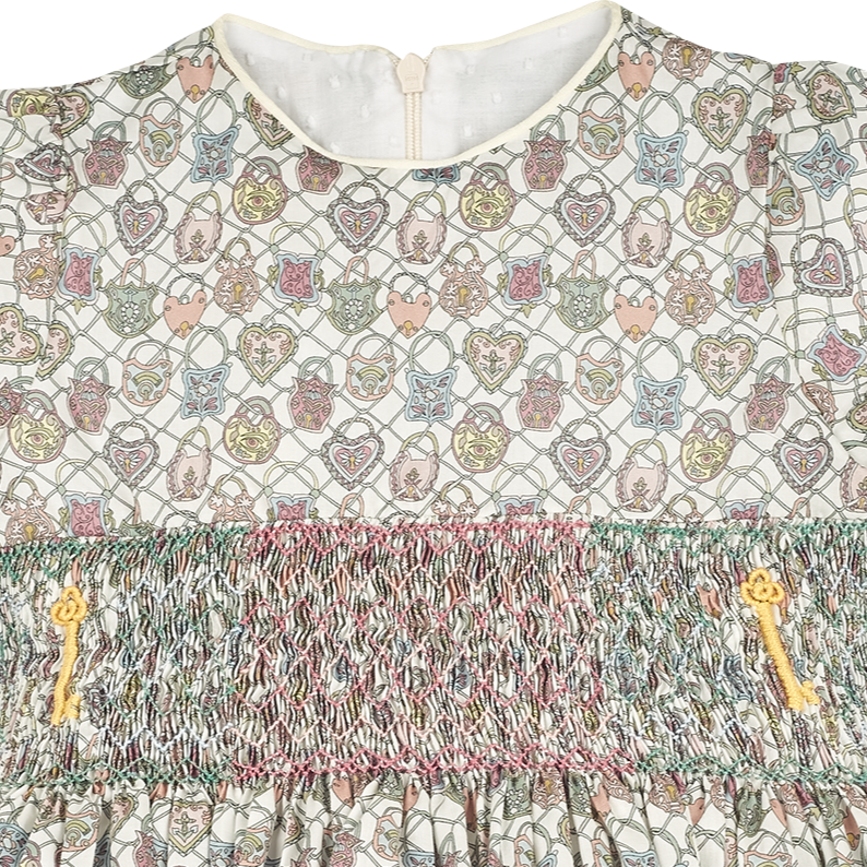 Fresh from our selection of girl's summer outfits, our Veronica cotton hand smocked girl dress is made with Liberty fabrics and features unique hand embroidery and piping detail along the neckline. A layer of white tulle along with the cotton underlining enhance the volume of the skirt.