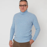 Men - 100% Premium Cashmere Cable Knit Roll Neck Jumper