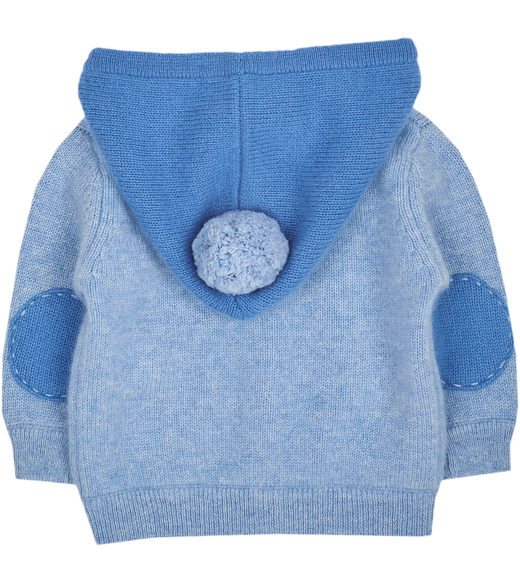 Made from 100% cashmere with a sweet pom-pom hood, it’s cosy, charming, and ready for all his playful adventures.