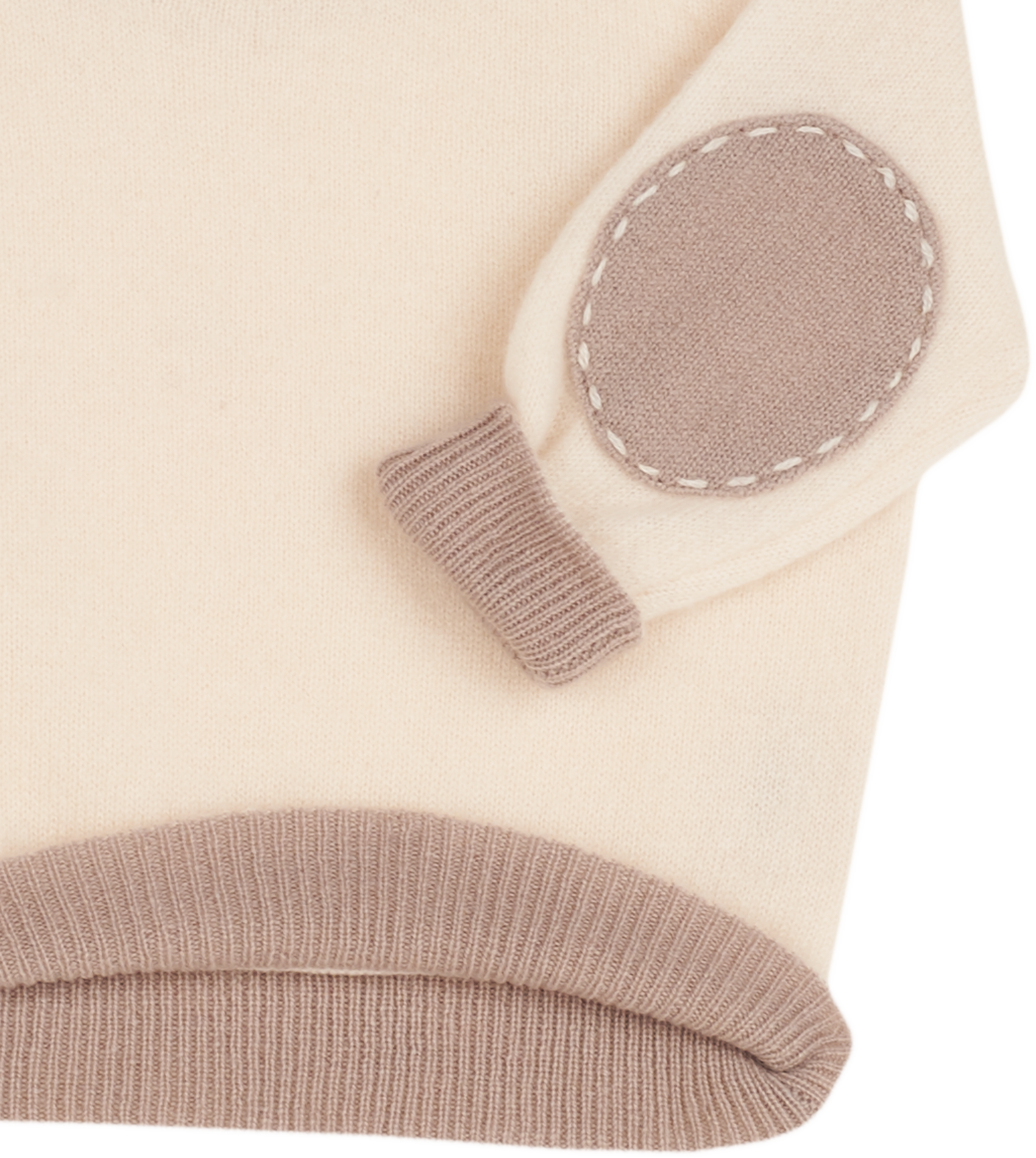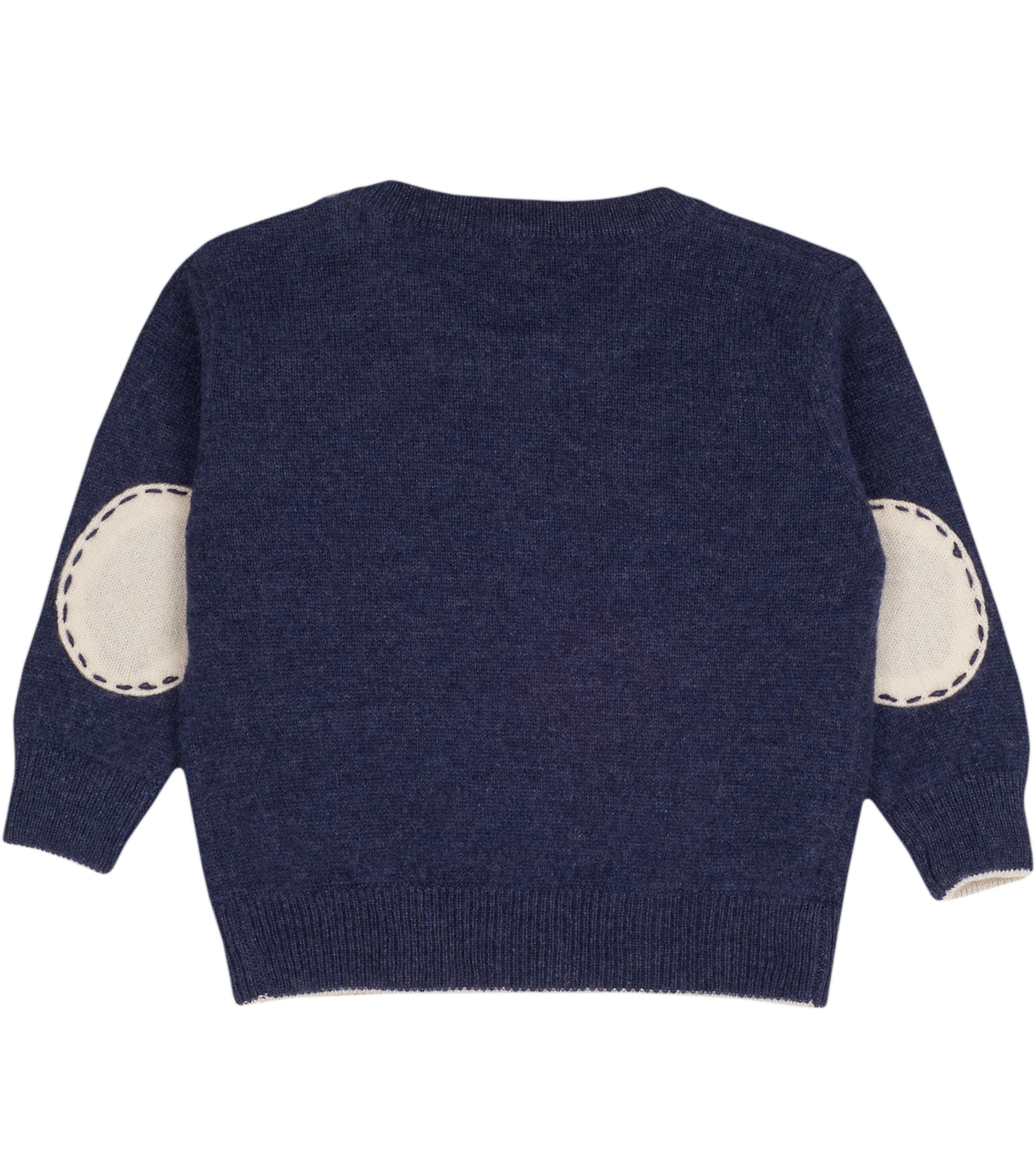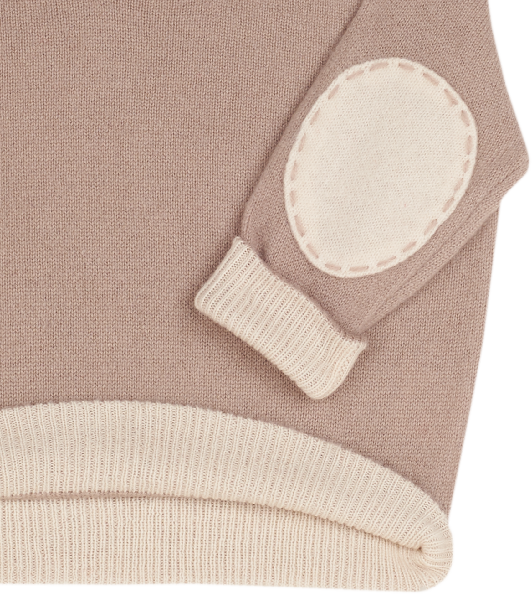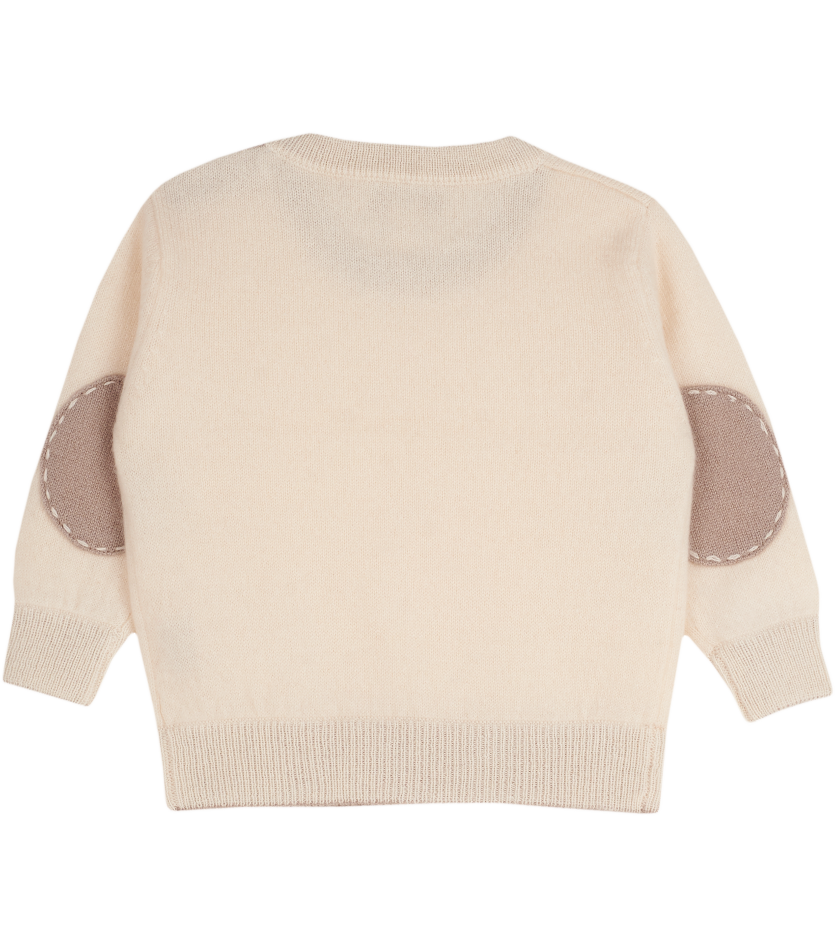Featuring a smart crew neck with button fastening, contrast elbow patches, and a ribbed hem with hidden detail, this piece is a favourite for a reason — available in a variety of colours and sizes to suit every tiny wardrobe.