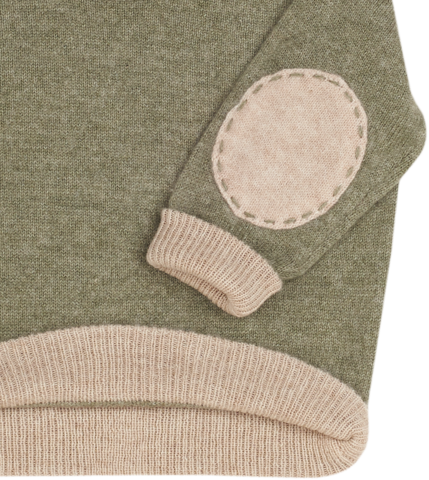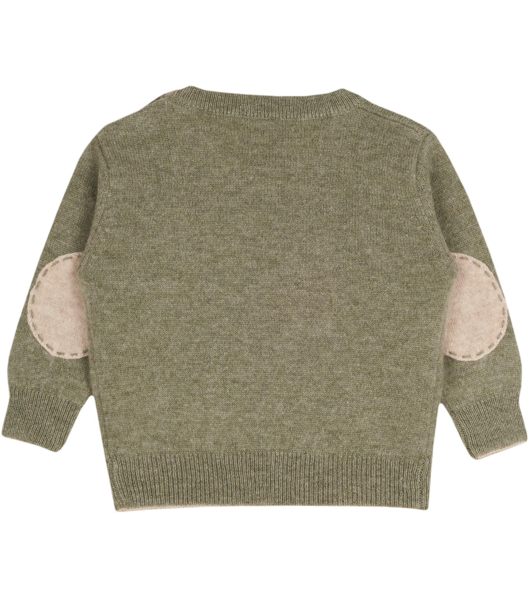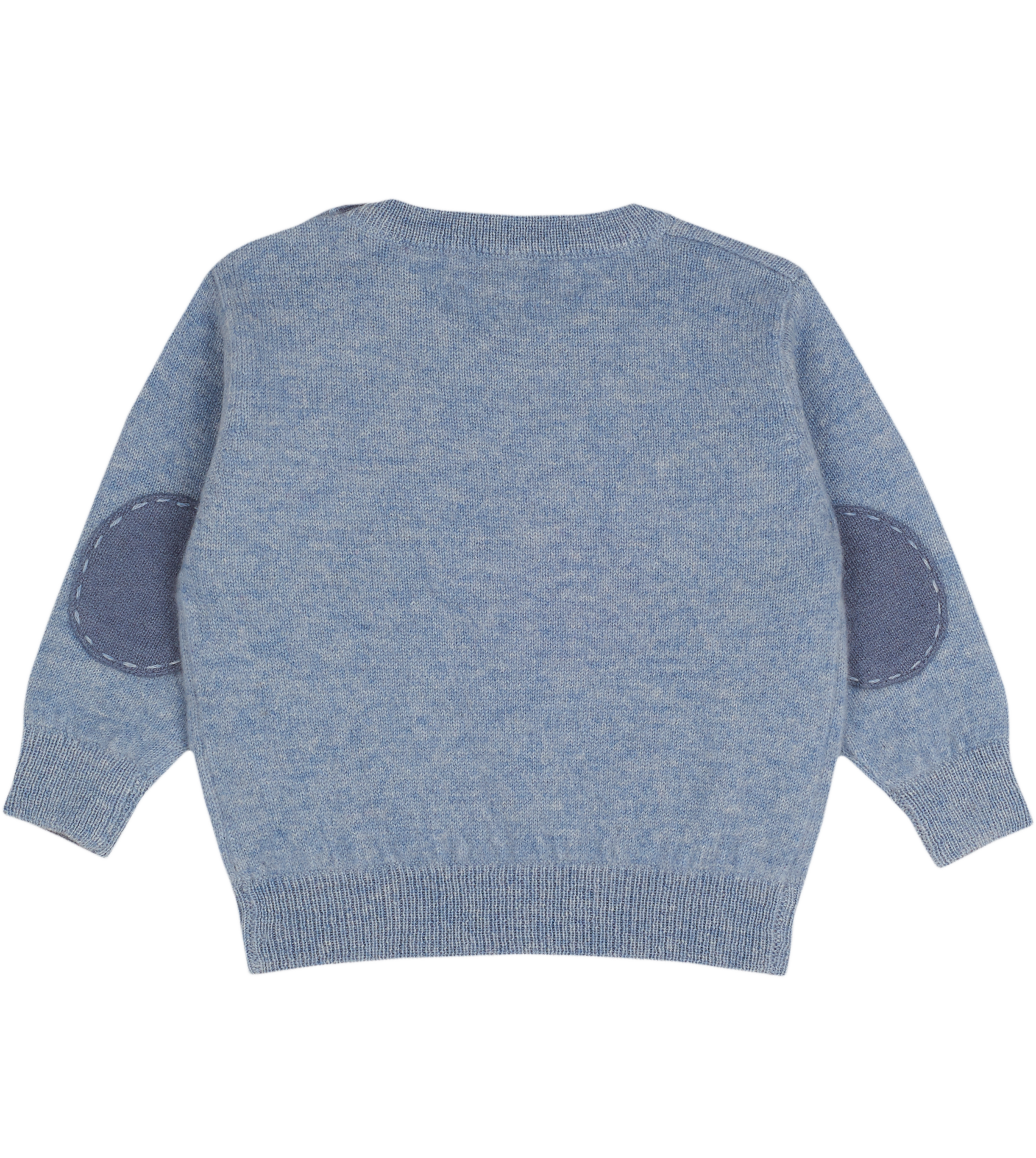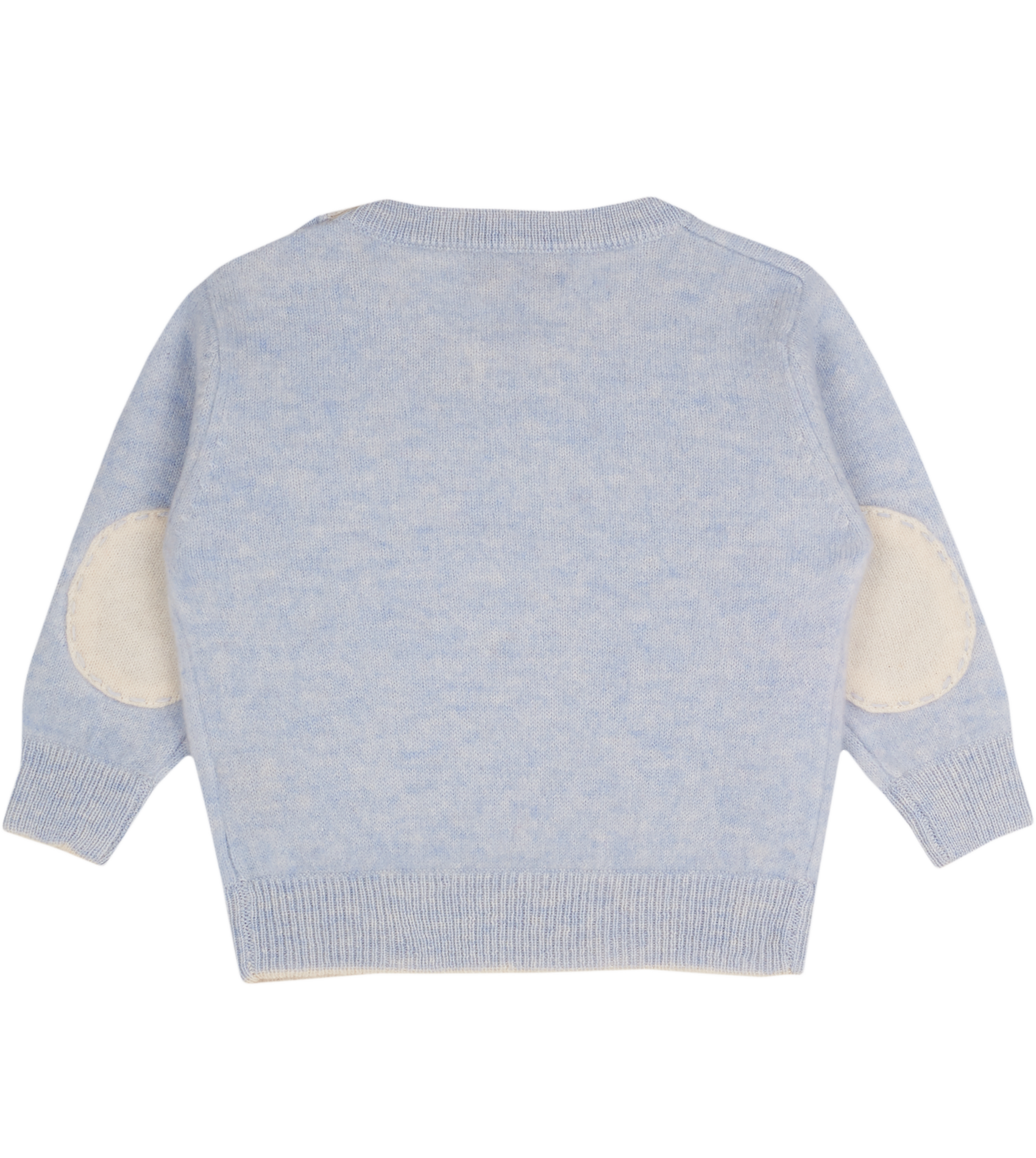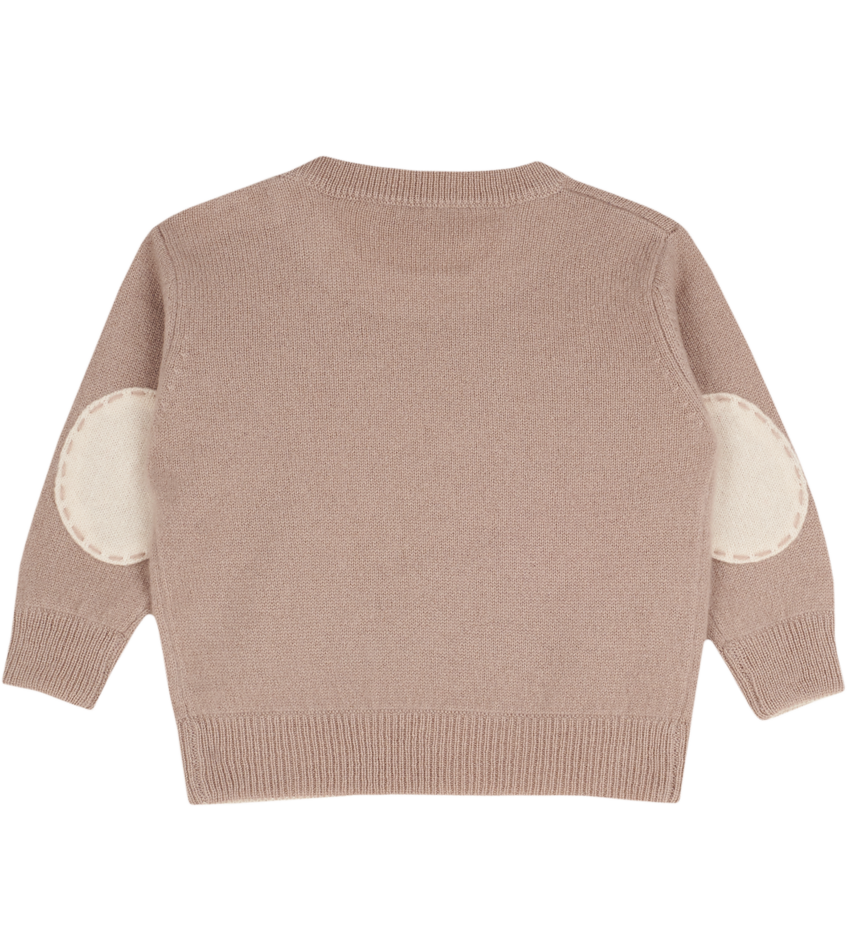 Featuring a smart crew neck with button fastening, contrast elbow patches, and a ribbed hem with hidden detail, this piece is a favourite for a reason — available in a variety of colours and sizes to suit every tiny wardrobe.