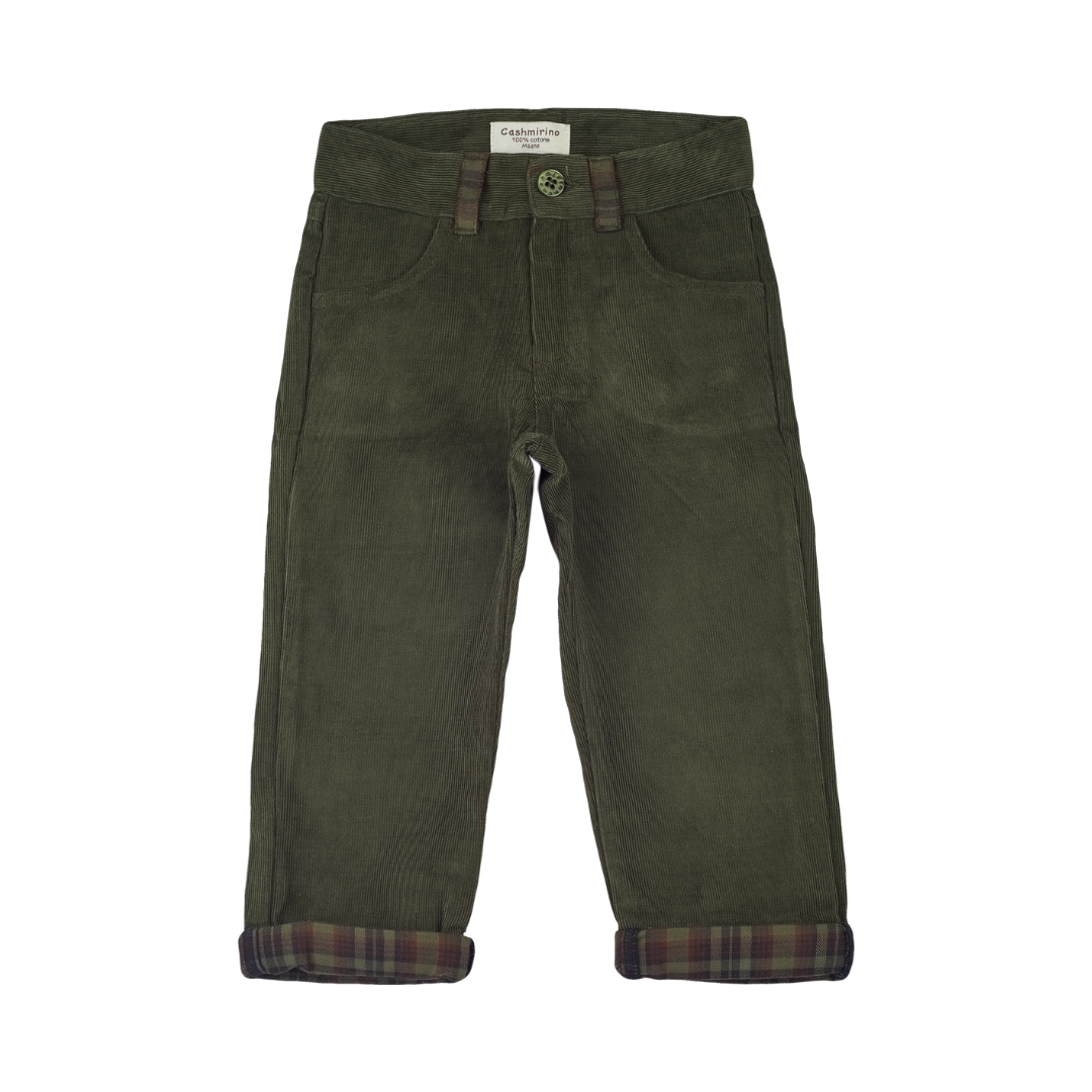Baby Boy - Josh 100% Cotton Corduroy Trousers with Checked Turn Ups