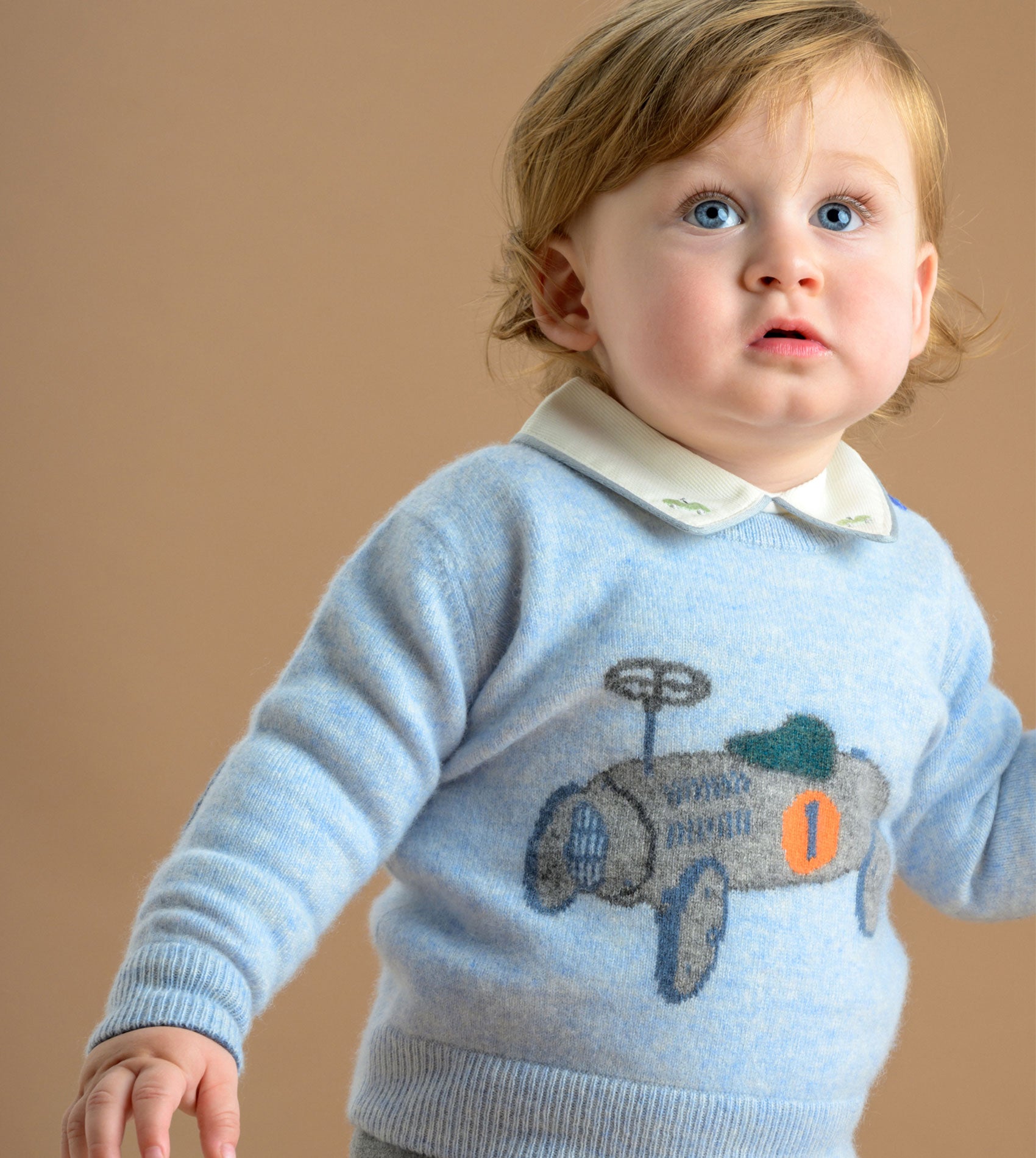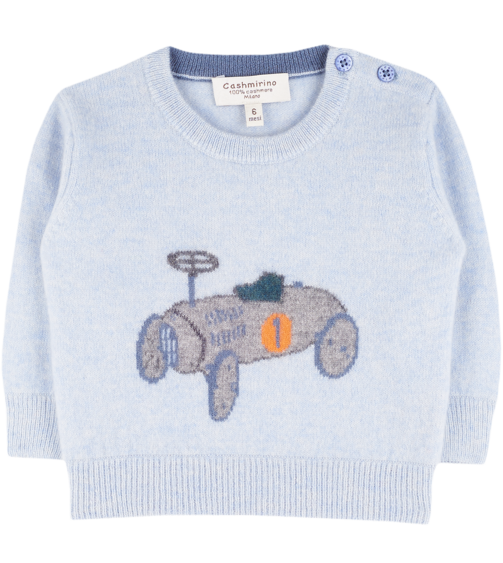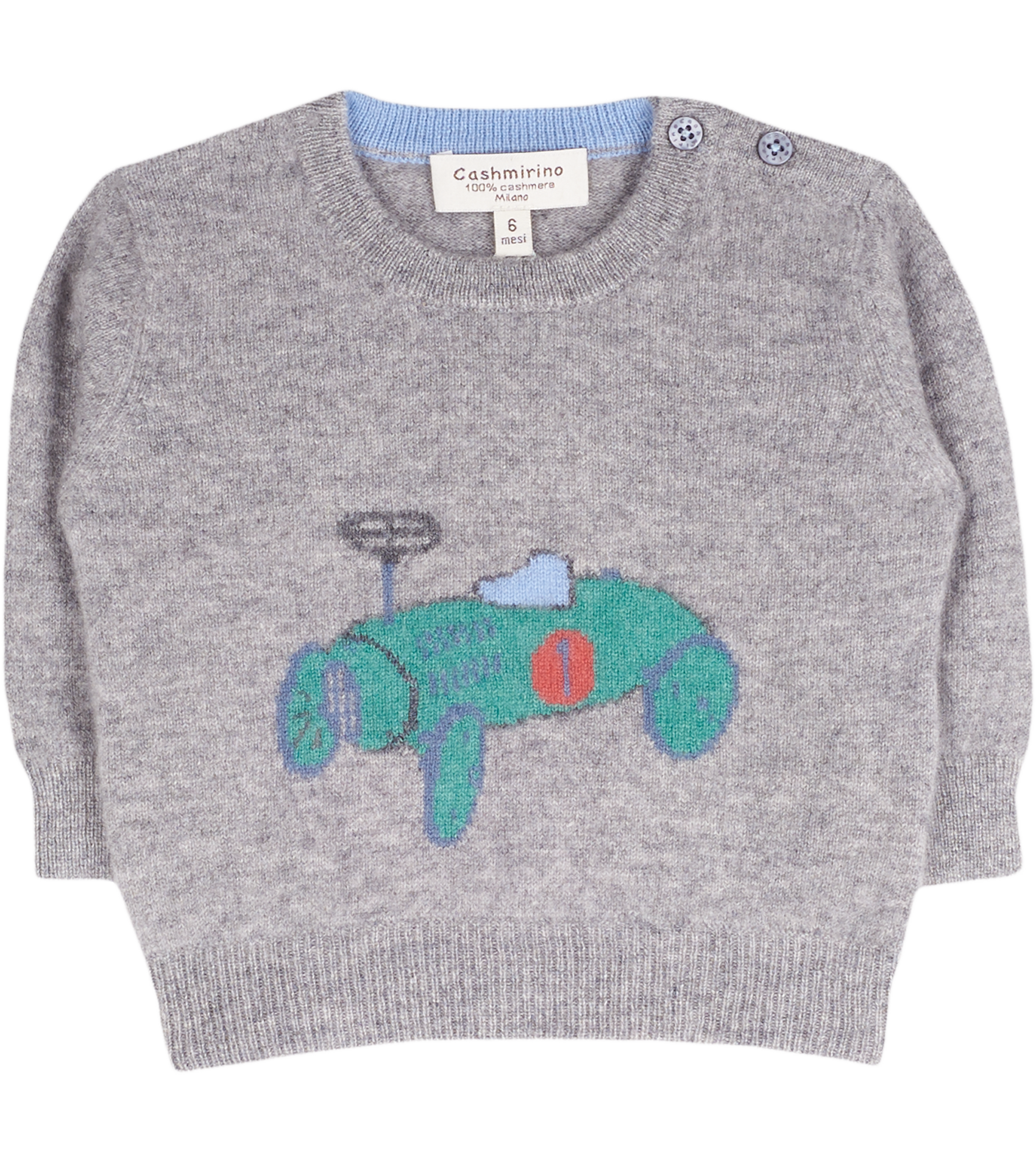 Baby Boy - Dom Cashmere Jumper with Car Intarsia – Cashmirino