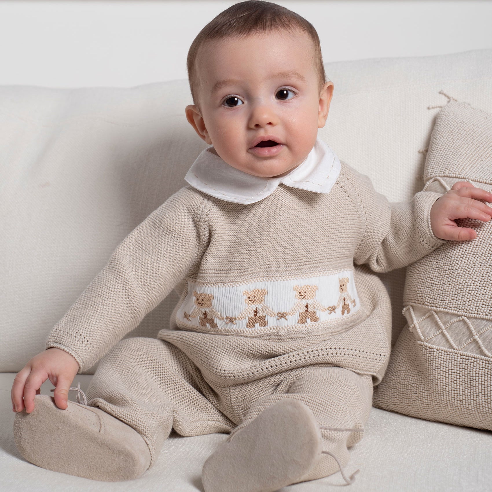 Baby Boy - Jason Cotton Set with Teddy Bear Smocked Panel