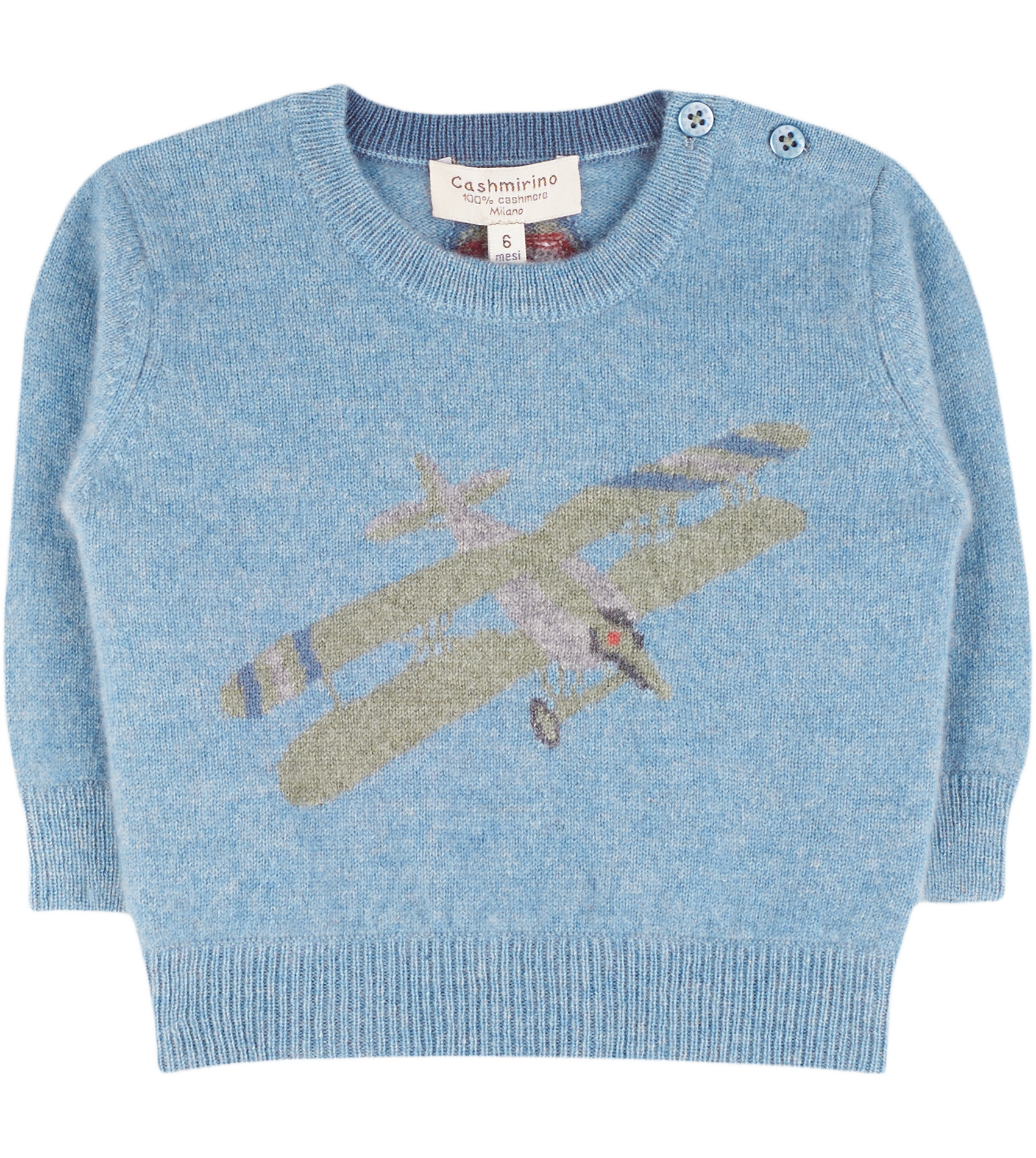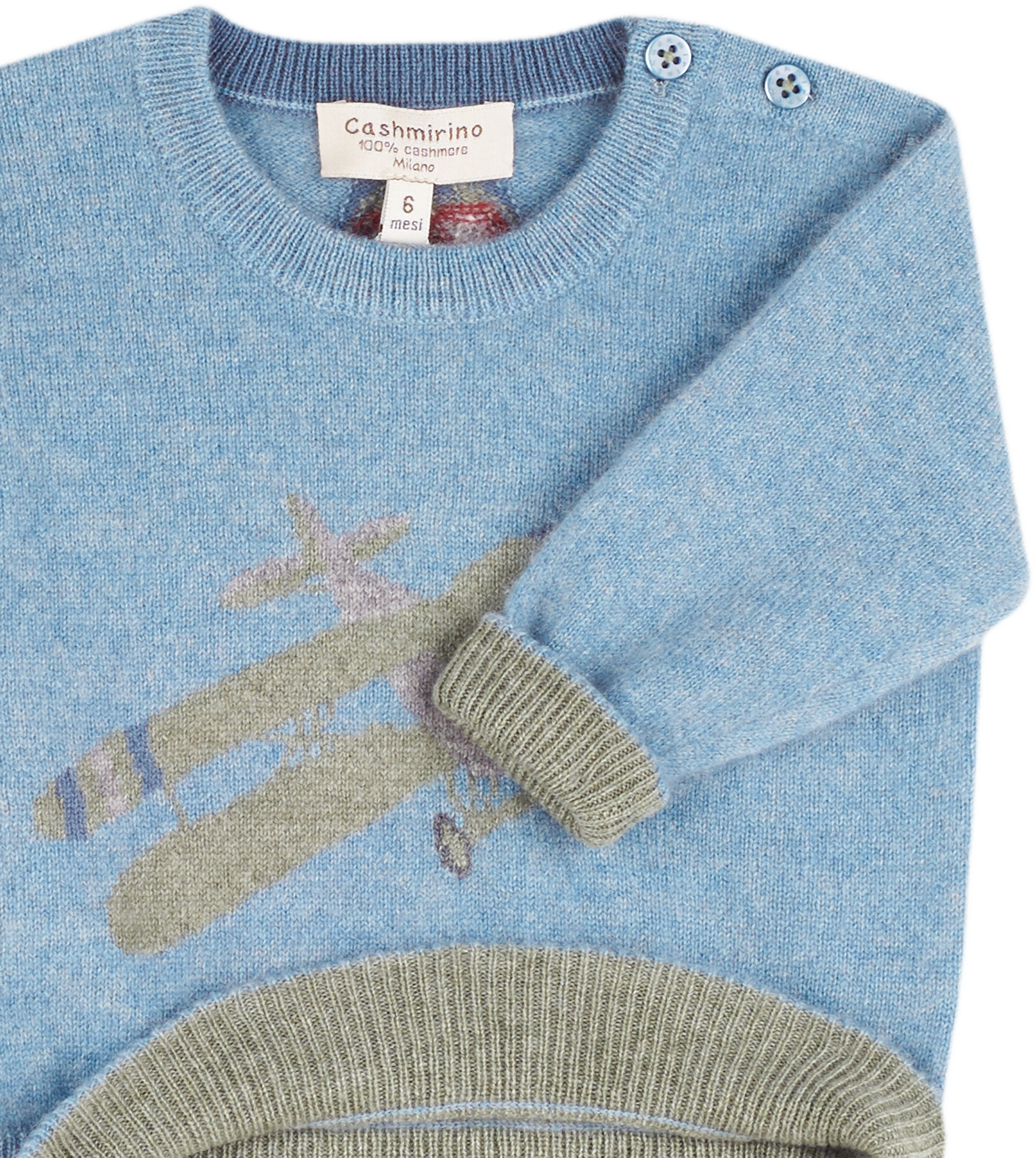 Baby Boy - Mitch Cashmere Jumper with Plane Intarsia – Cashmirino