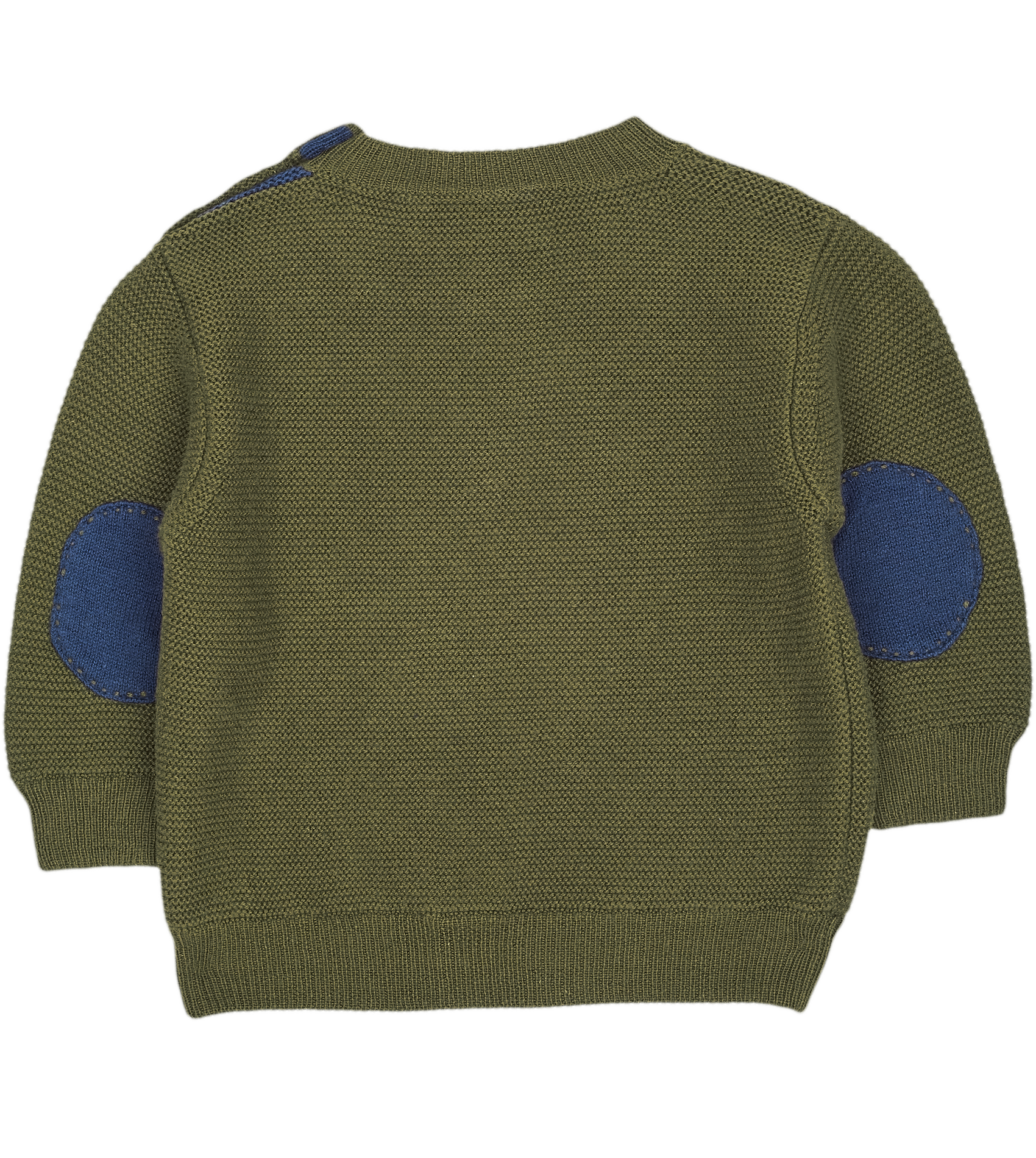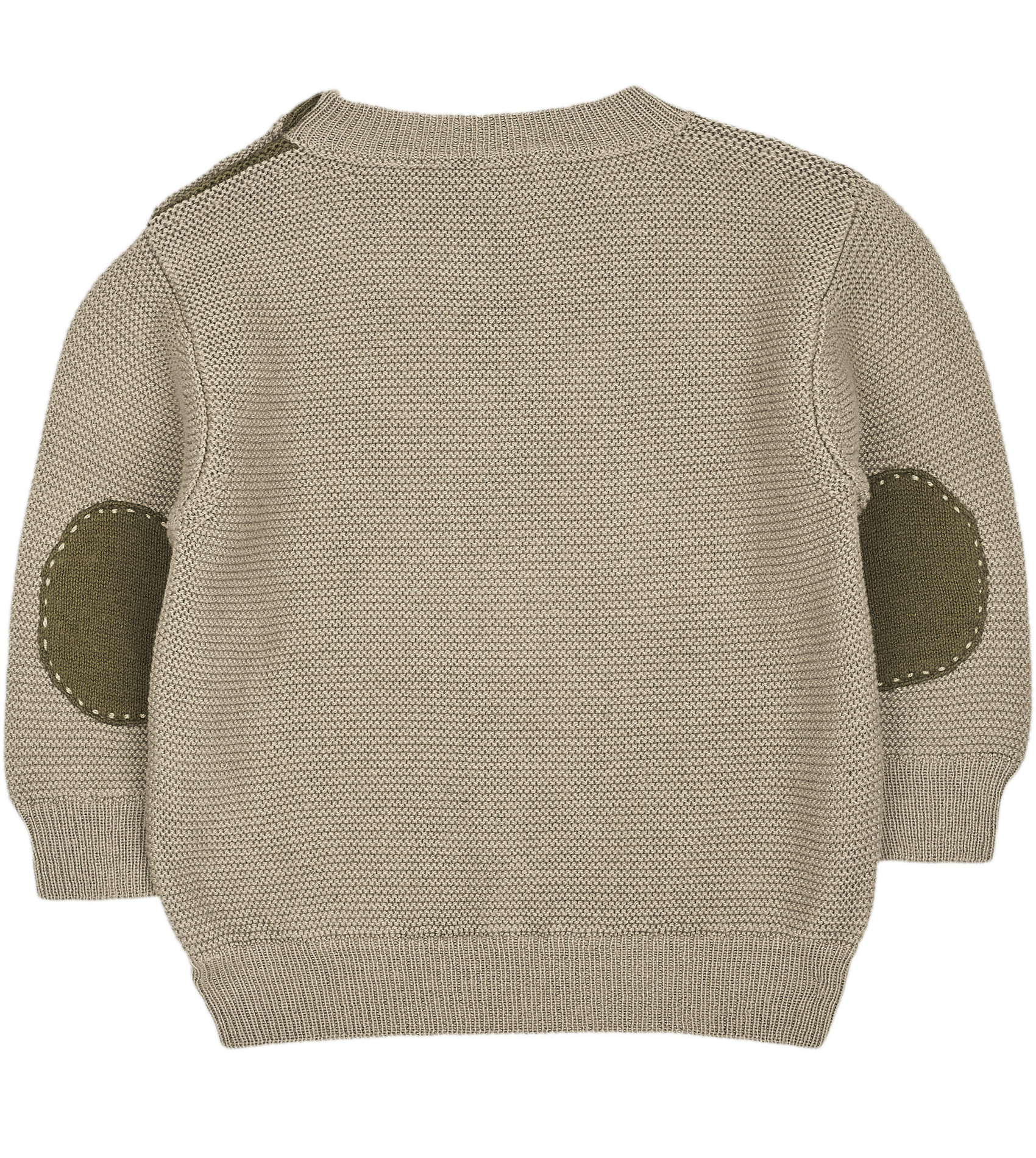 Designed with long sleeves, a ribbed hem featuring a subtle contrasting inside detail, and sweet elbow patches, this lightweight knit combines comfort with classic style. A must-have wardrobe essential for both everyday outings and special occasions.