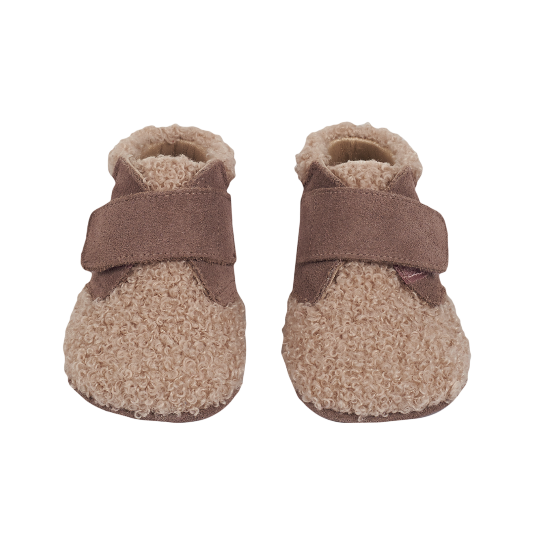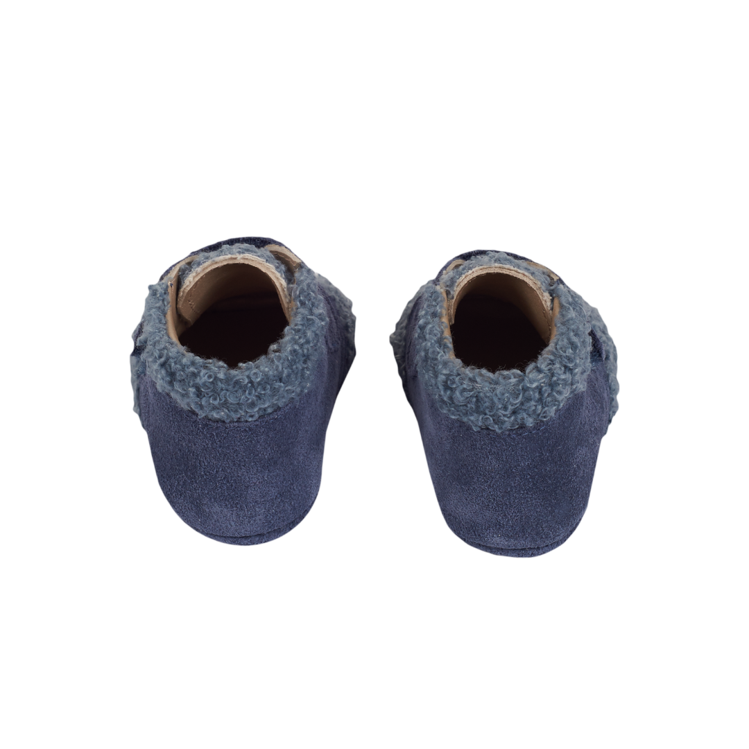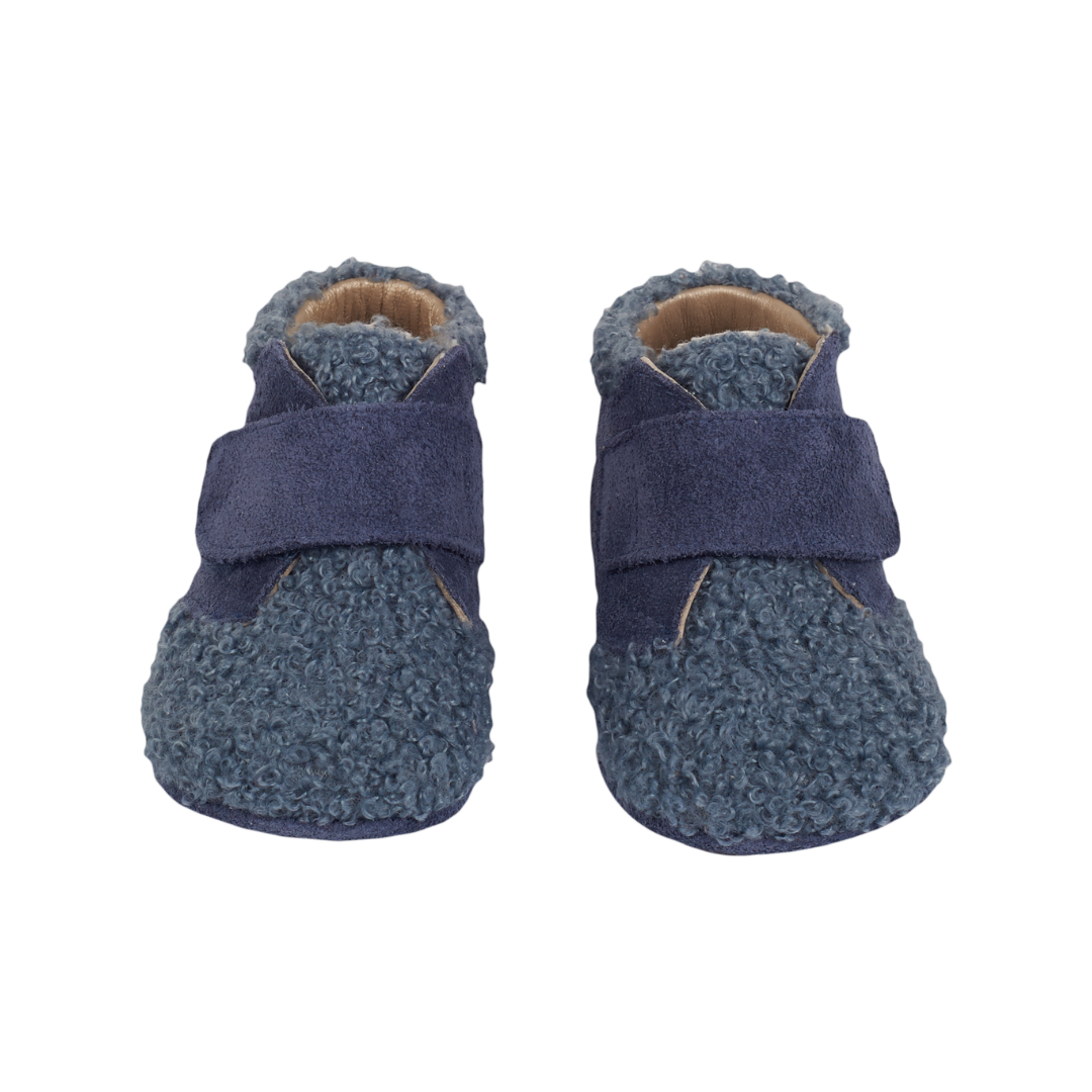 A charming pair of baby crawling shoes, designed to combine comfort and style for your little one. Made with a refined mix of soft suede and cosy sherling, these ankle shoes gently wrap the foot to keep it warm and protected. The practical velcro closure ensures an easy and secure fit, making dressing quick and effortless.