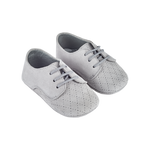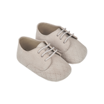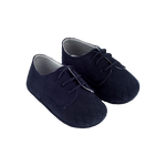 A suede pair of baby boy crawling shoes that will have your new-born looking smart for every special occasion. Made from soft suede and featuring laser diamond cut out detail.
