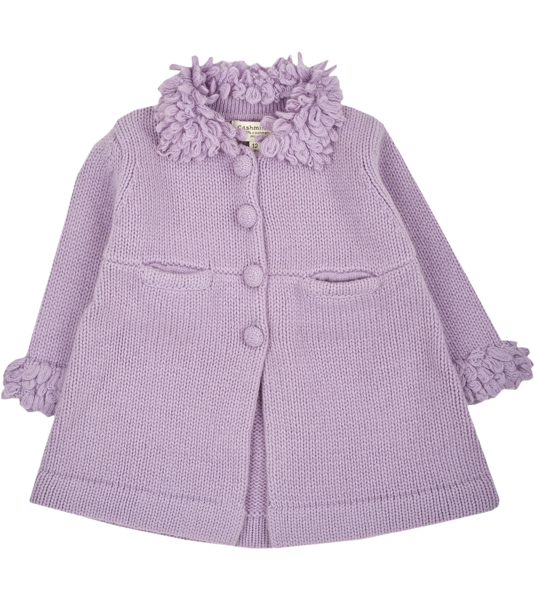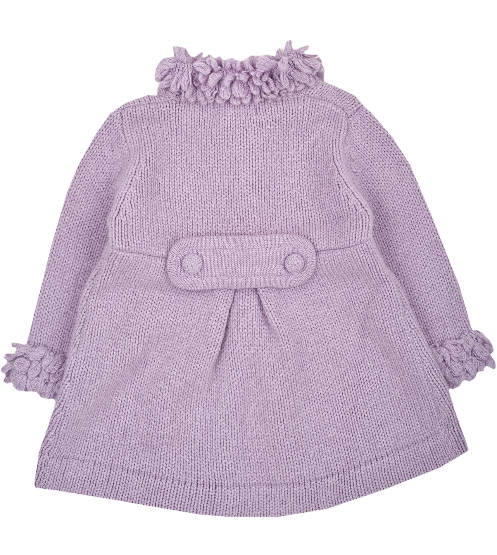 Made from ultra-soft, luxurious cashmere, this adorable coat features covered buttons, practical front pockets, and delicate boucle detailing for a charming, textured finish. Its flared, swing silhouette allows for easy movement and layering, perfect for everyday adventures or special occasions. Designed with comfort, warmth, and timeless style in mind, this coat is a must-have addition to your baby girl’s wardrobe.