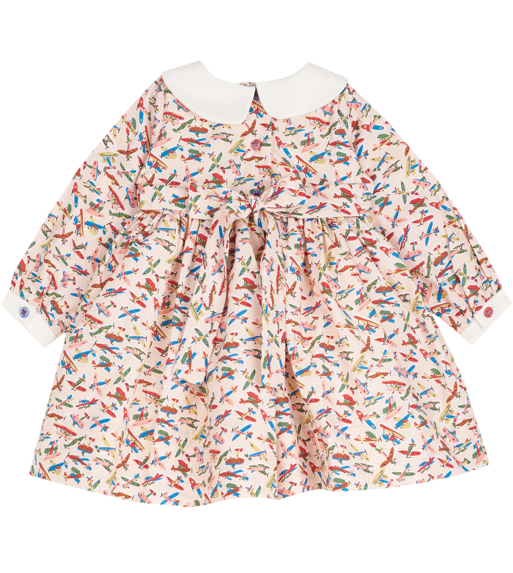 The Ameline dress is a charming blend of timeless design and whimsical detailing, perfect for both special occasions and refined everyday wear. Crafted from premium Liberty print cotton, it features a delightful pattern of vintage-inspired flying planes, evoking a sense of adventure and nostalgia.