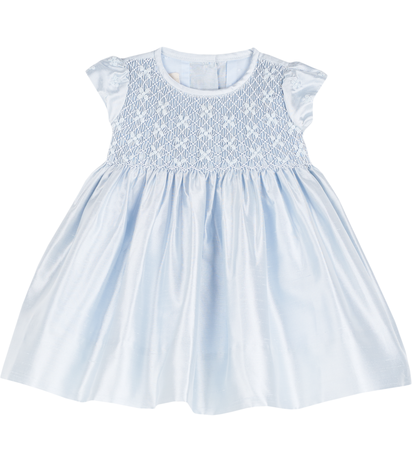 Baby Girl - Angelica Silk Smocked Hand Embroidered Knee Length Dress