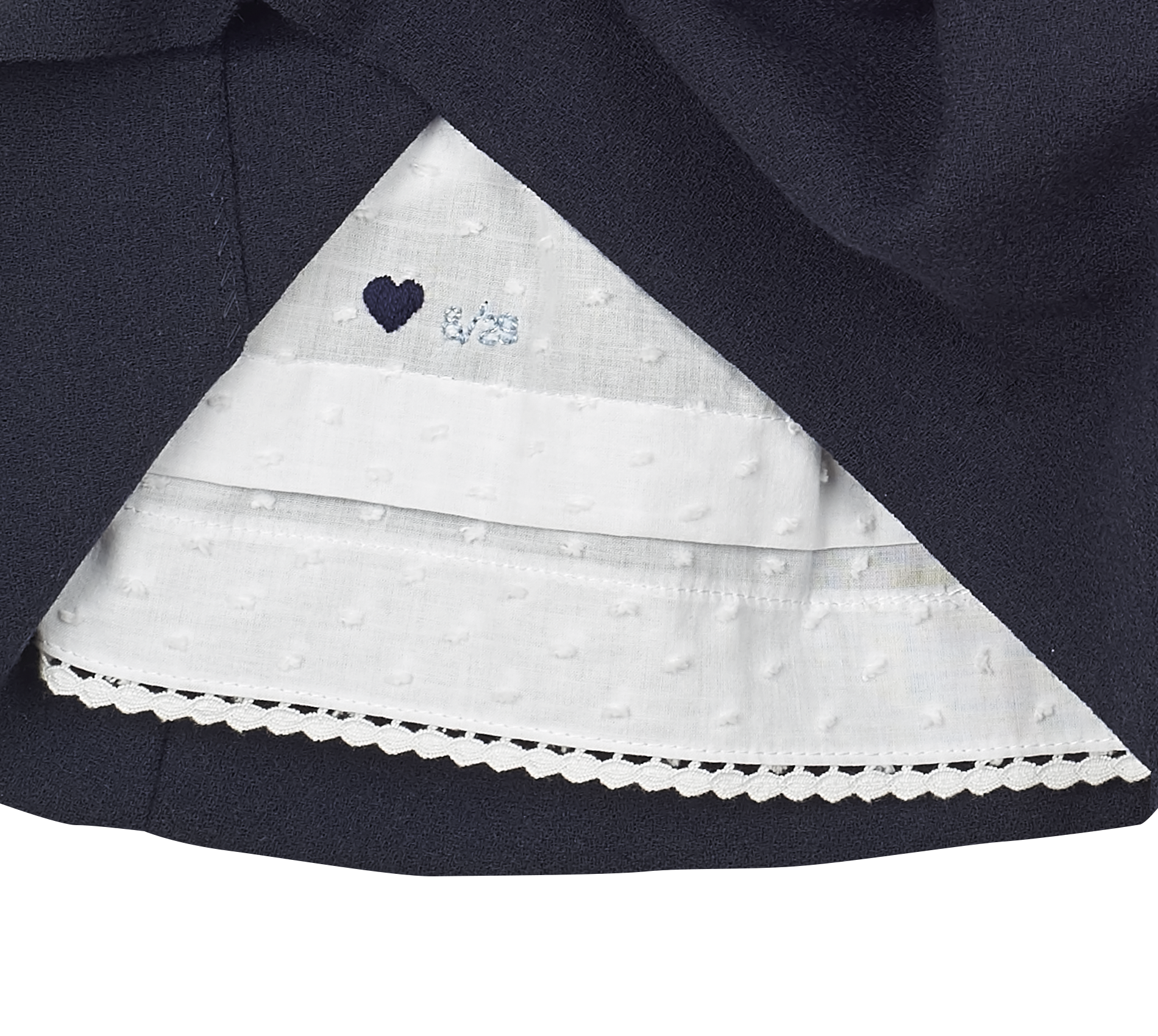 • Soft 100% cotton white lining with crochet trim on skirt hem