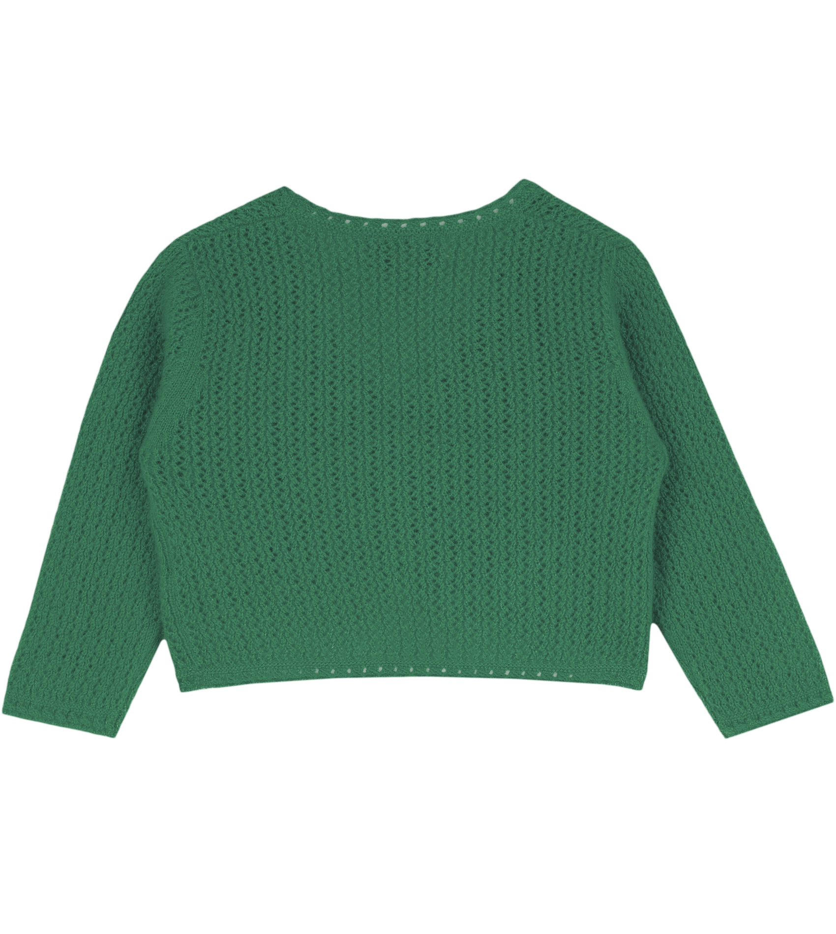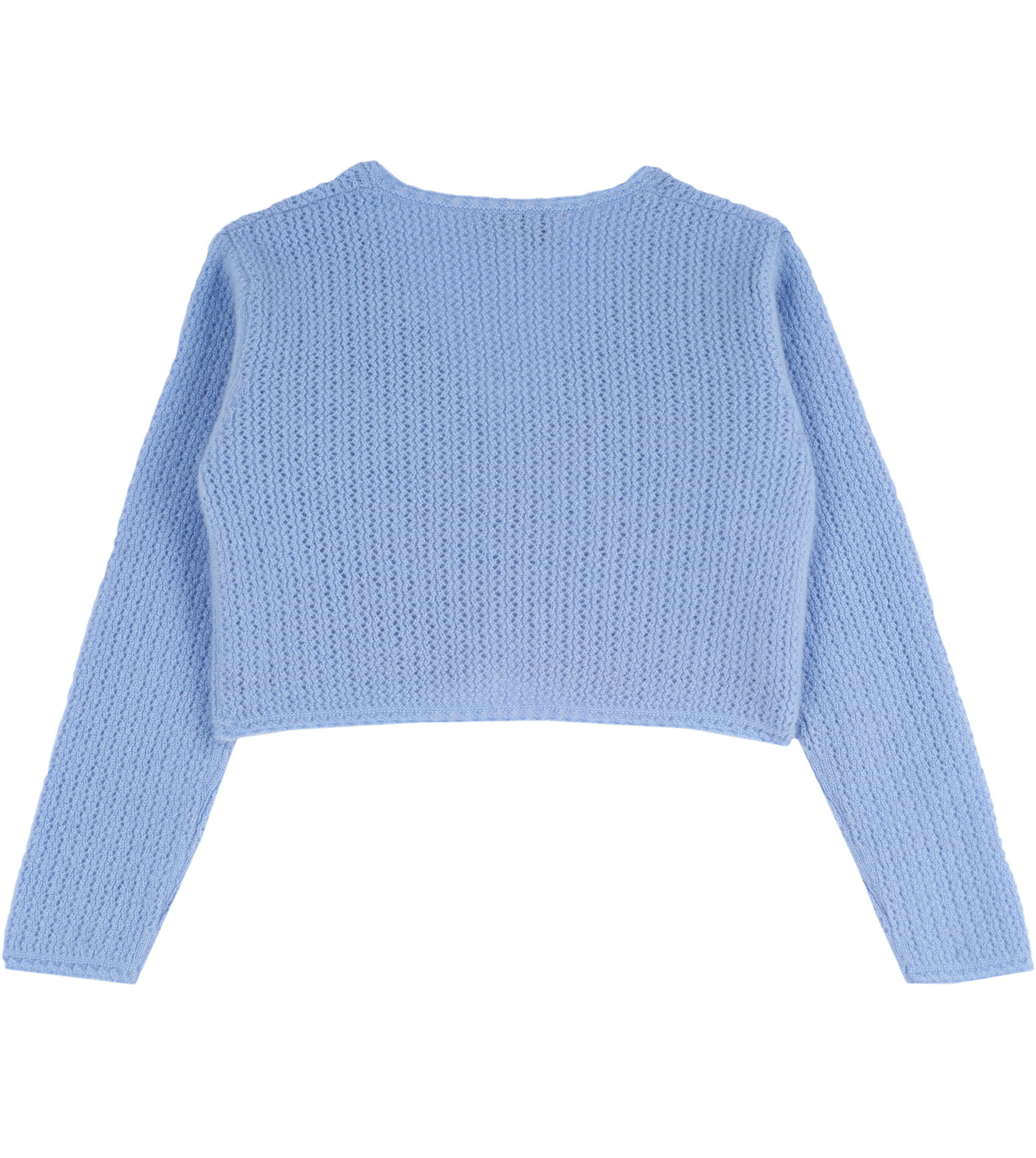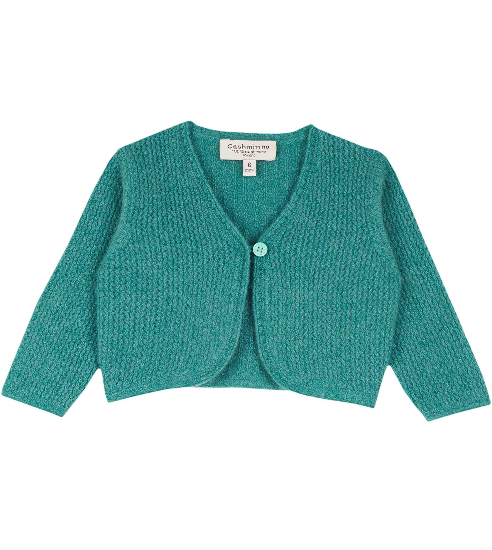 The Brielle Cashmere Shrug is a stunning and versatile addition to your baby girl’s wardrobe. Crafted from 100% luxuriously soft cashmere, this elegant piece is designed with a chic V-neckline and cropped silhouette, making it the perfect light layer for cooler summer days, and equally lovely in spring, autumn, or under a coat in winter.