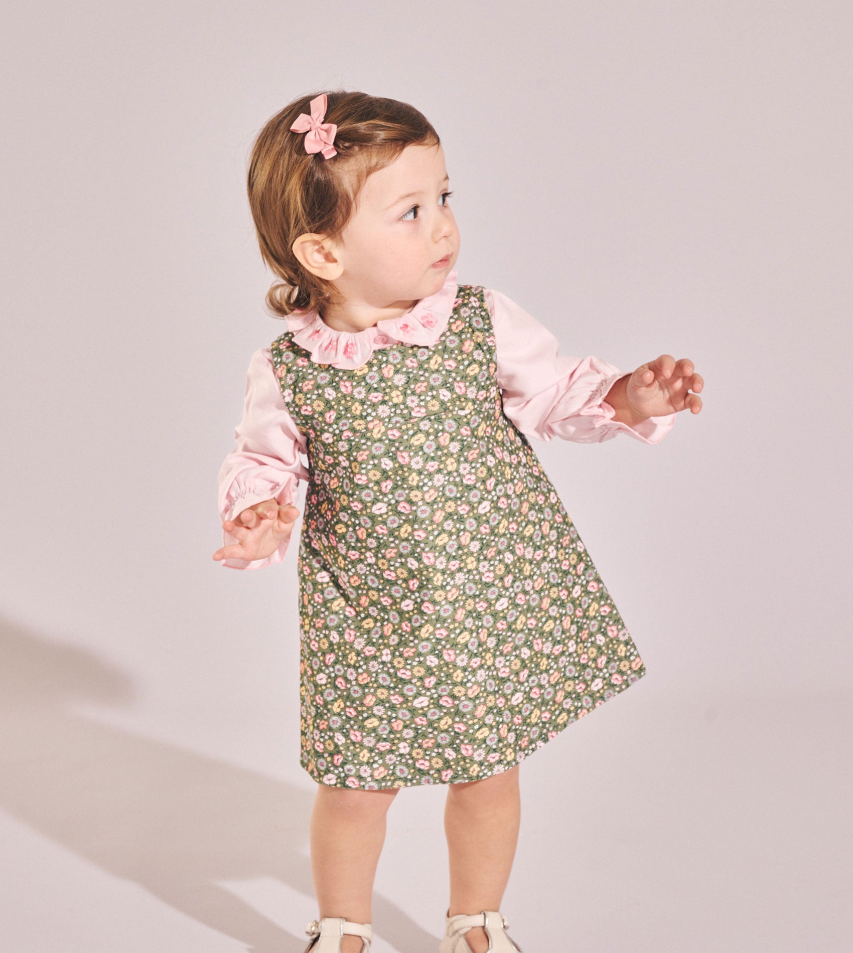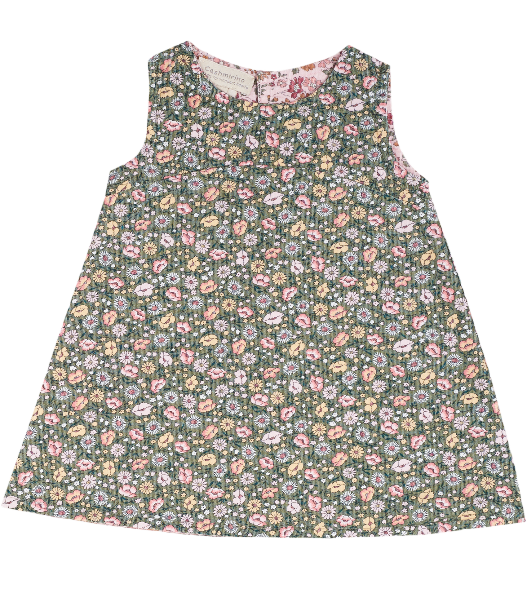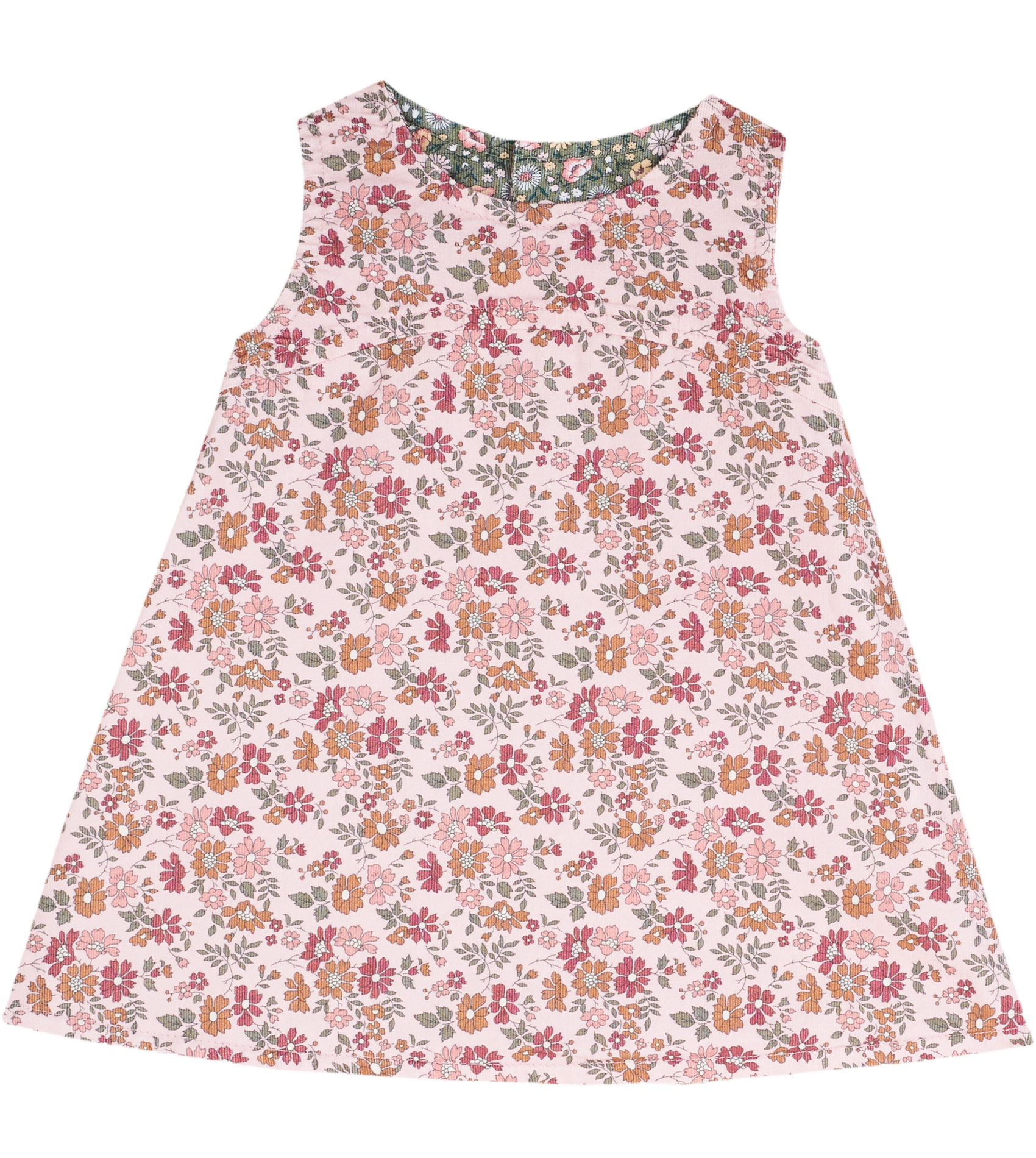On one side, discover a delicate blooming Liberty floral print, while the reverse reveals the same exquisite pattern in a different hue. Whether your little one is in a playful or polished mood, this dress adapts effortlessly—simply turn it inside out to change the look.
