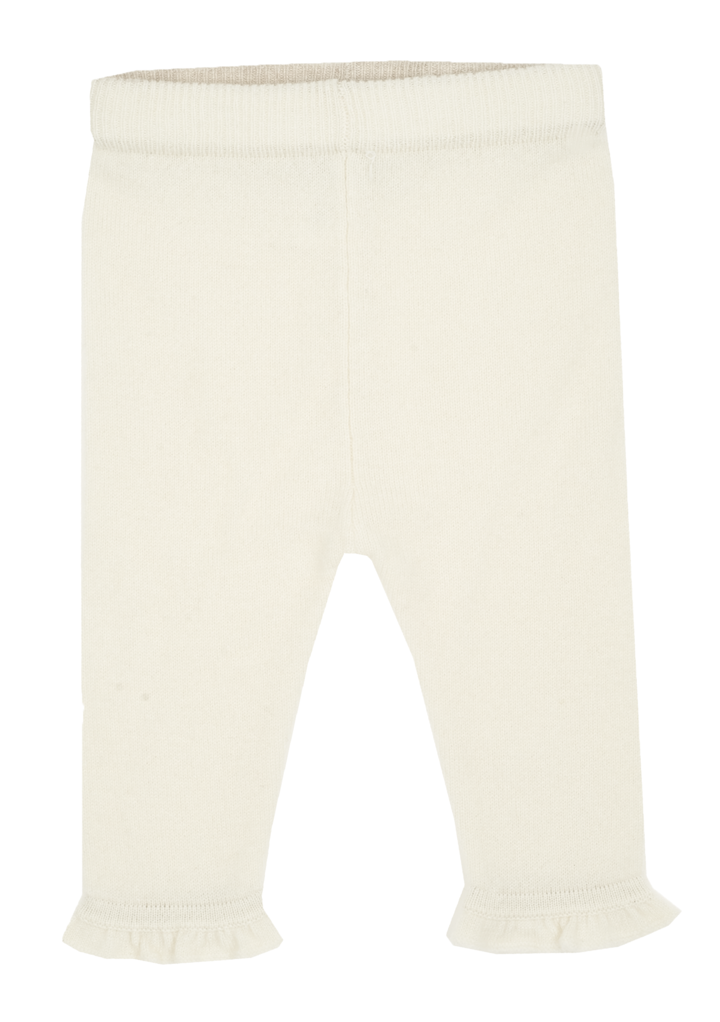 The soft doll-style top features a round neckline, delicate frill across the front panel, and charming button detail, finished with gathered waistline for an elegant silhouette. Coordinating cashmere leggings complete the set, designed with ribbed cuffs and hem for comfort and style.