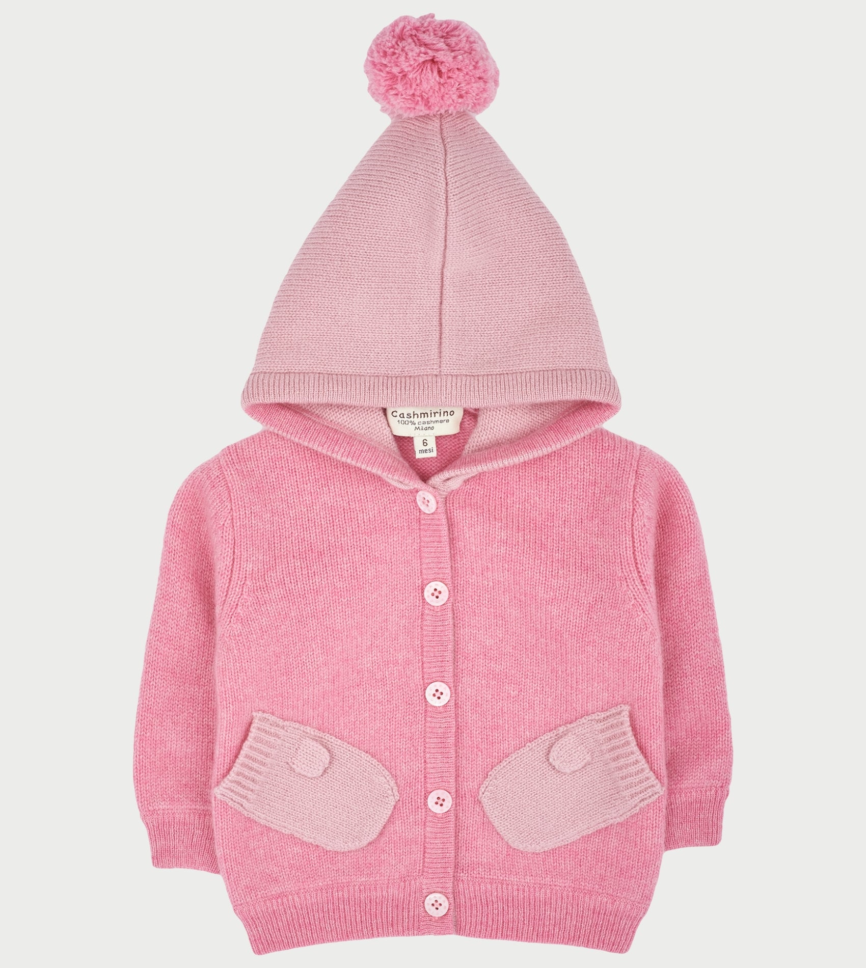 Baby Girl - Paola 100% Cashmere Cardigan Hoodie with Mitten Style Pockets