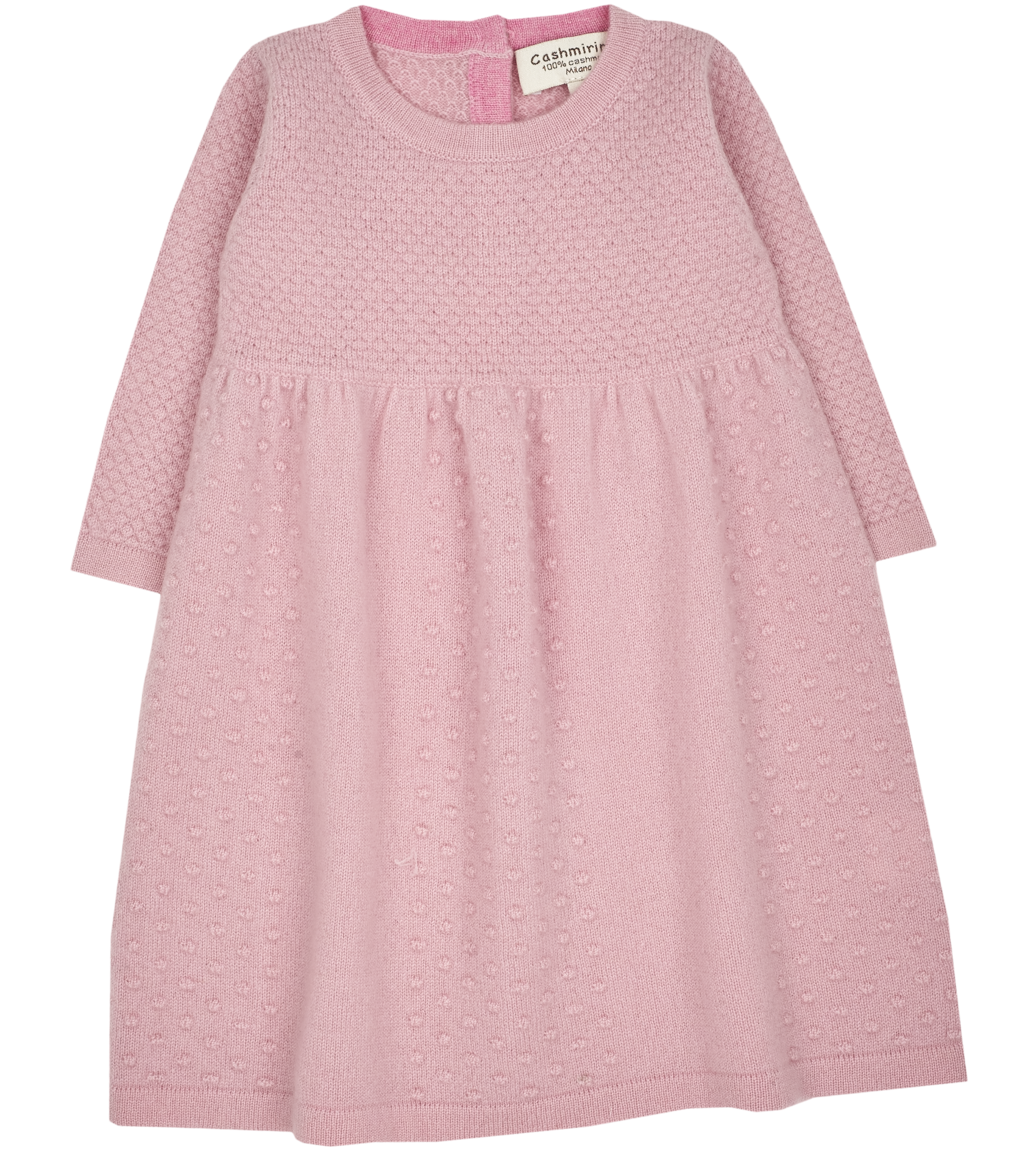 Baby Girl - Annabelle 100% Cashmere Knitted Bobble Stitch Detail Dress