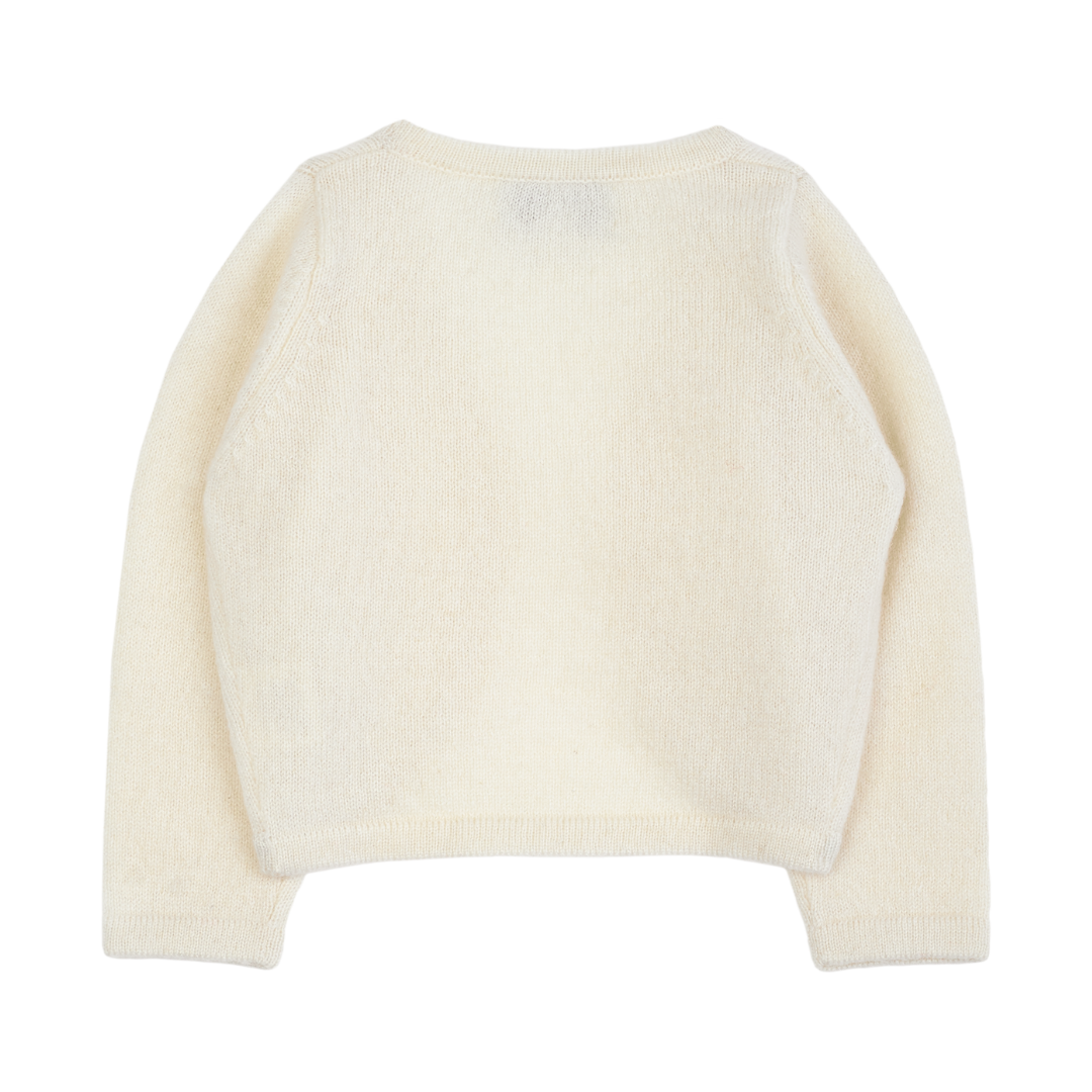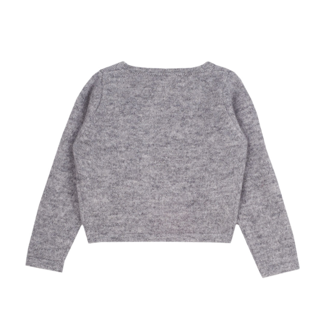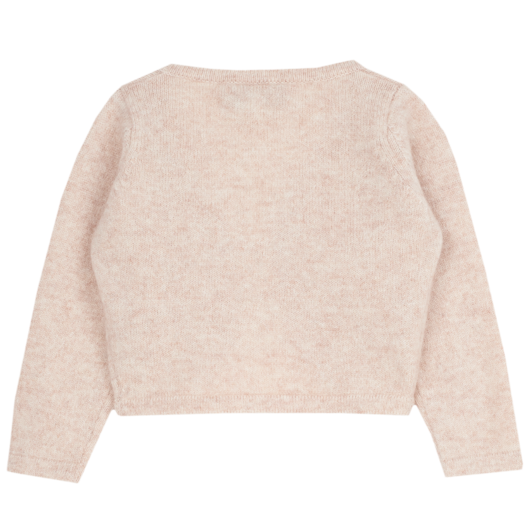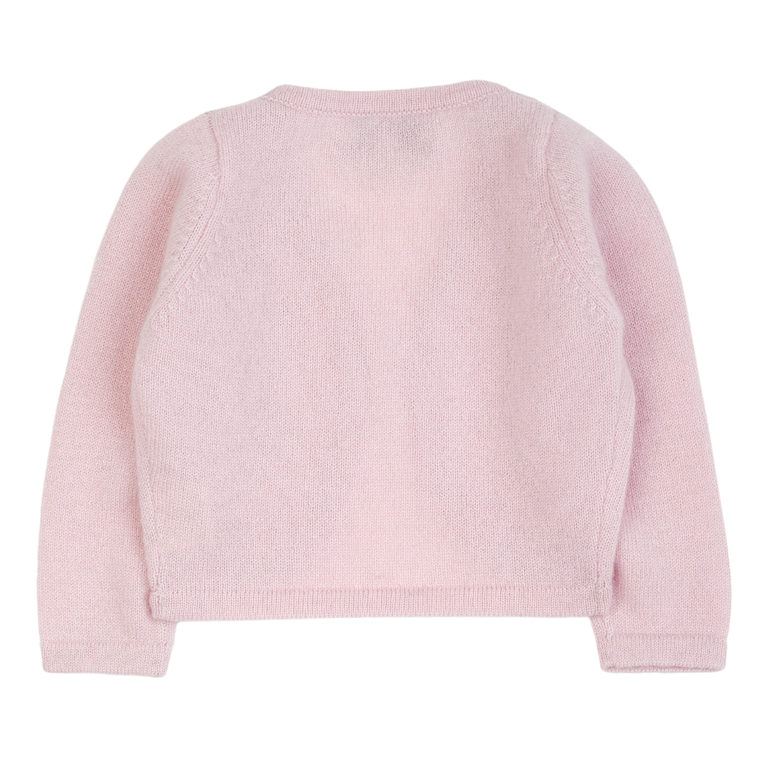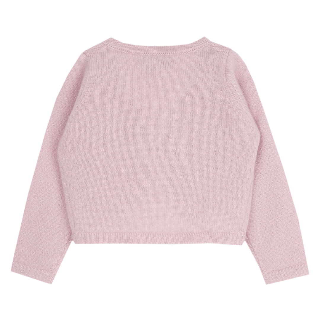 Wrap your little one in luxury with this baby girl shrug, beautifully crafted from 100% pure cashmere. Designed with a cropped silhouette, it layers effortlessly over dresses to create a perfectly polished look.