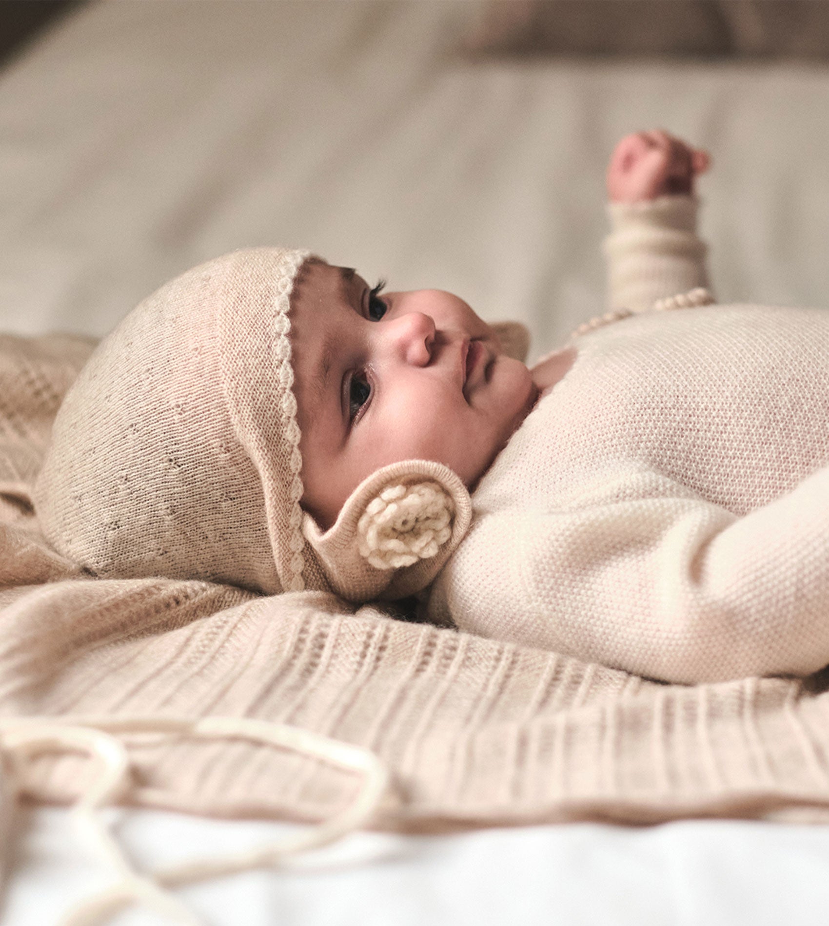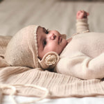 100% Cashmere baby girl hat featuring cute ear flaps for added warmth in the colder months.