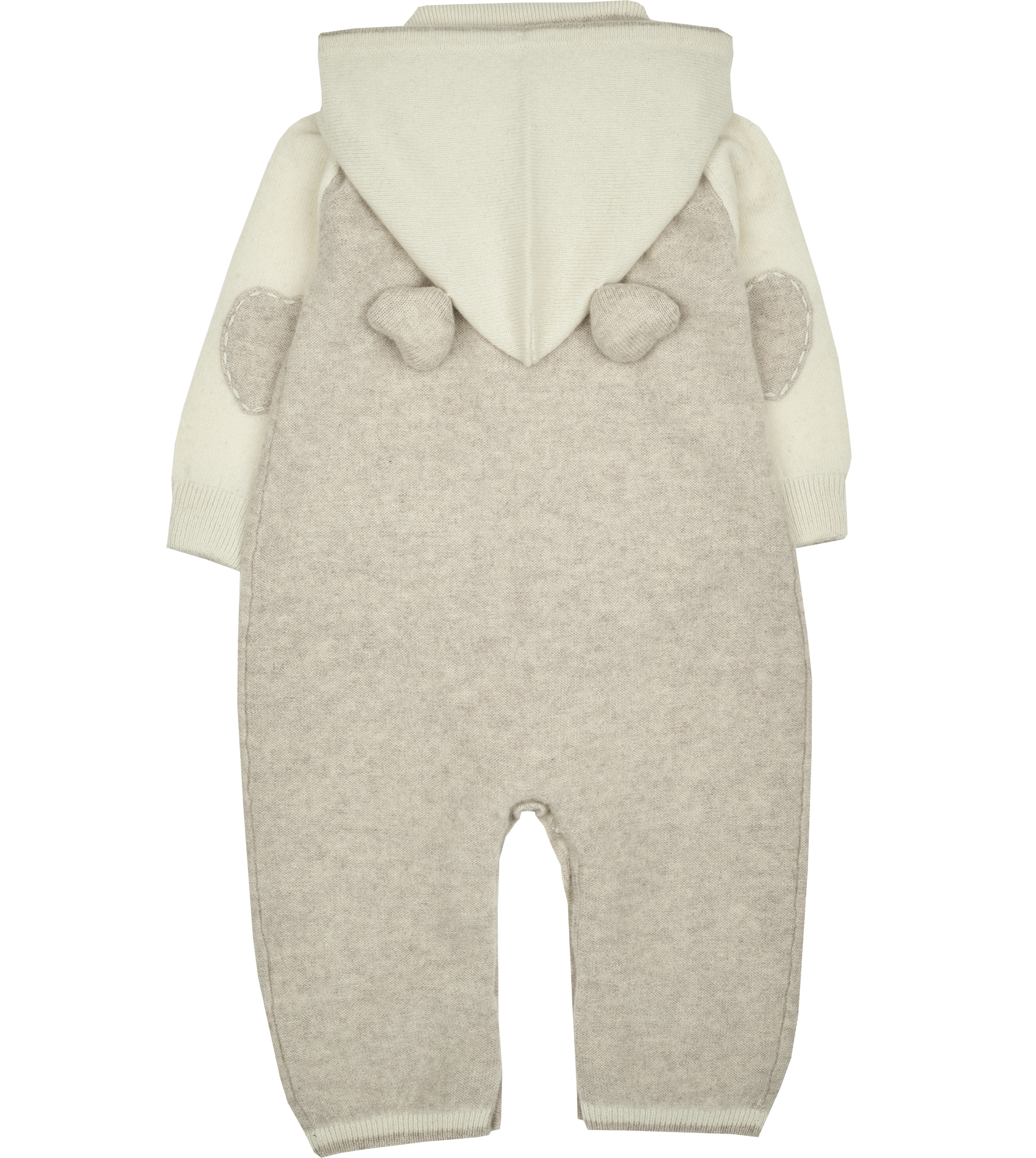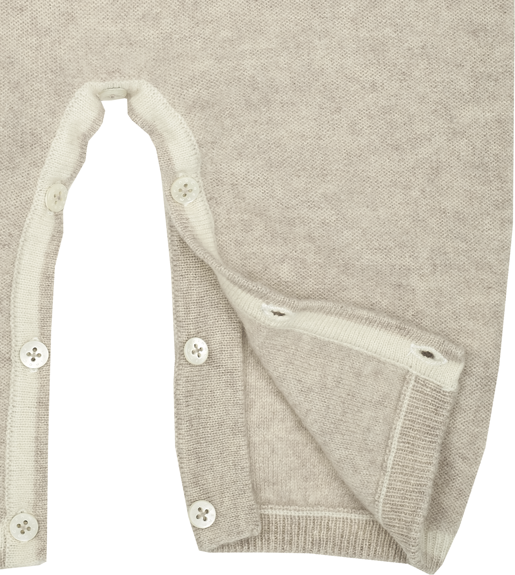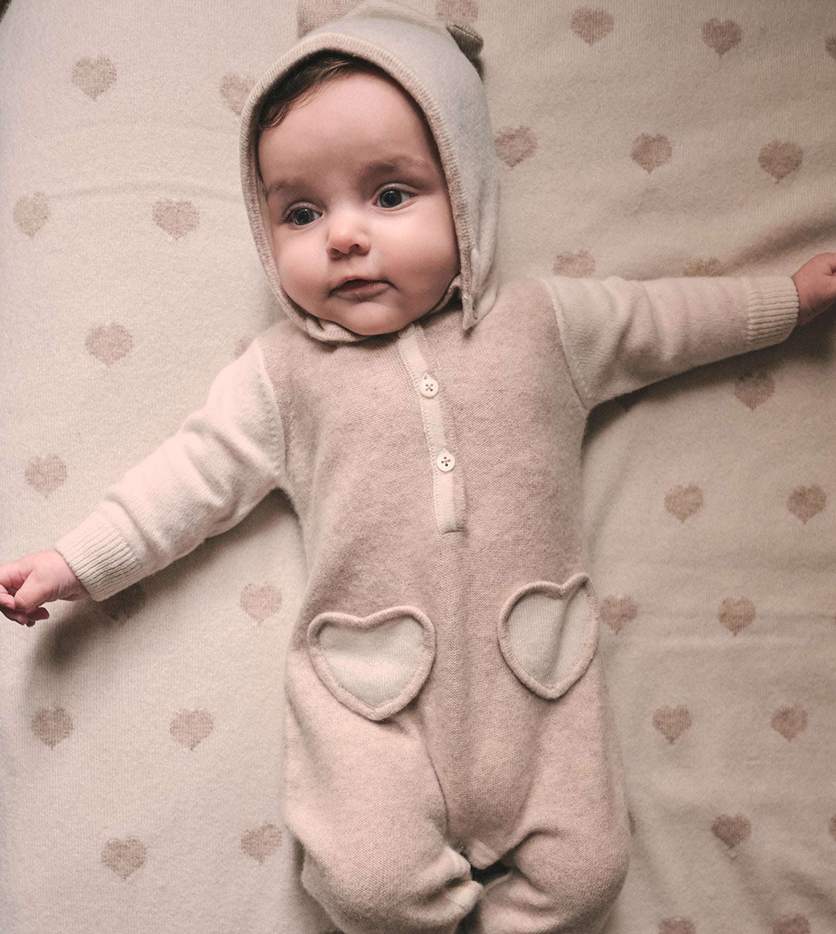 This adorable baby cashmere romper features a detachable hood, giving you two stylish looks in one.