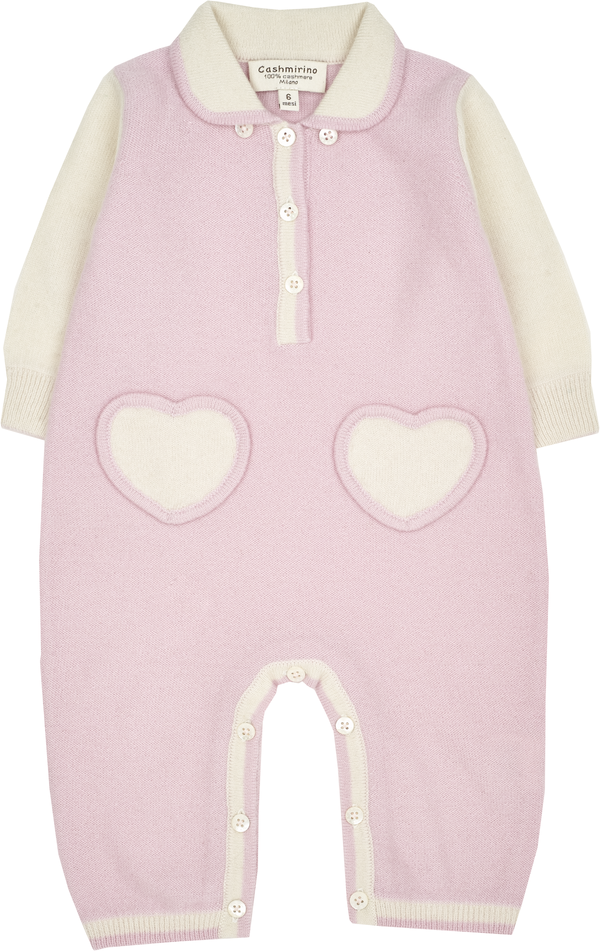 Baby Girl - Hailey 100% Cashmere Romper with Heart Ears & Heart Pockets