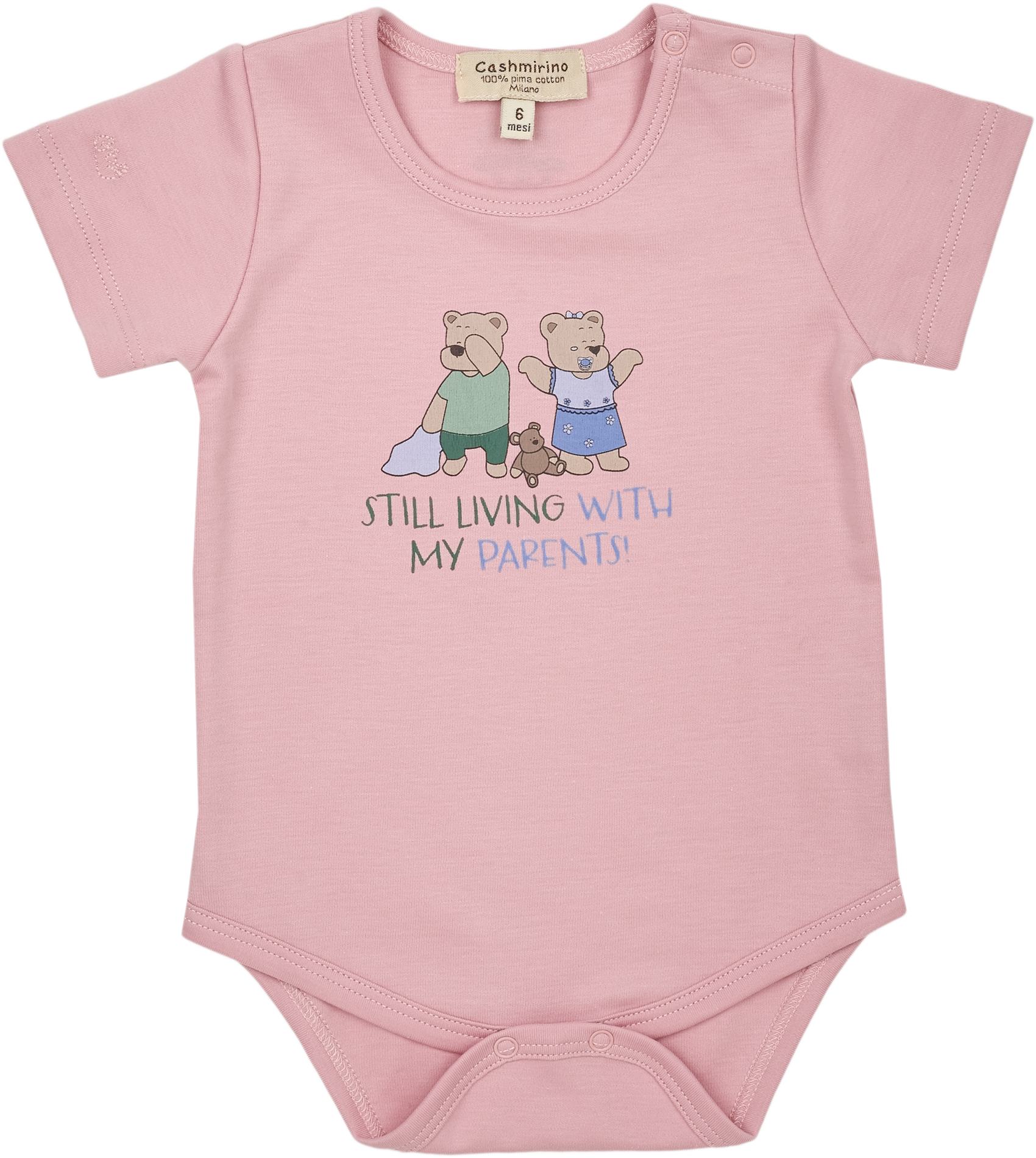 Crafted from 100% premium Pima cotton, this short-sleeved baby girl bodysuit delivers unmatched softness and breathability—perfect for delicate skin. The bodysuit features a playful graphic illustration and our signature embroidered Cashmirino bear, blending artistry with everyday comfort.