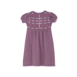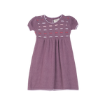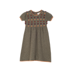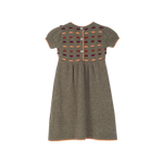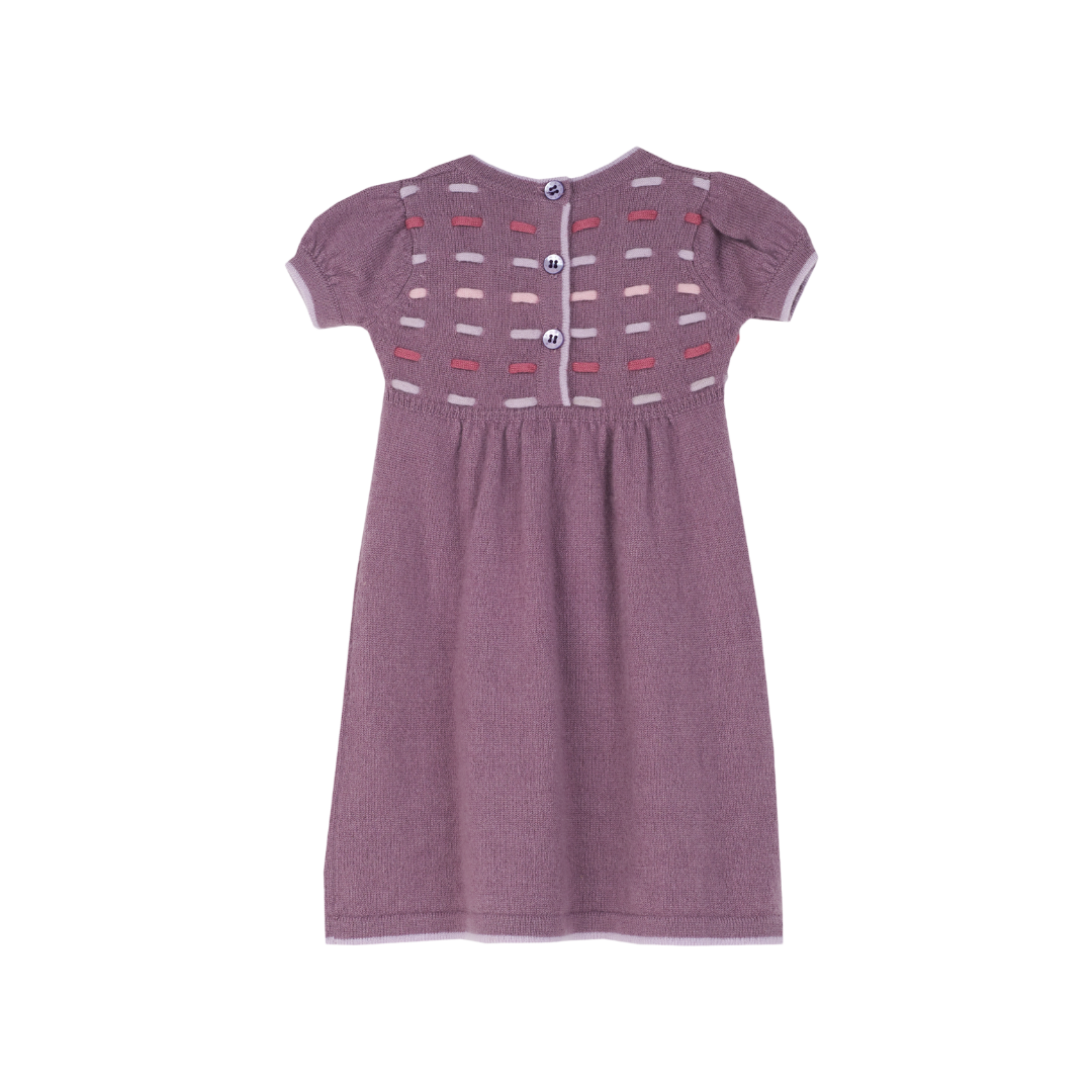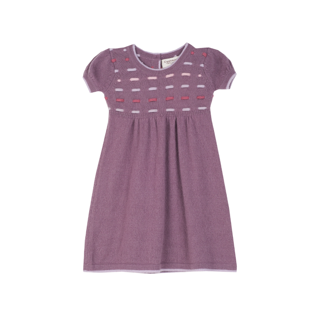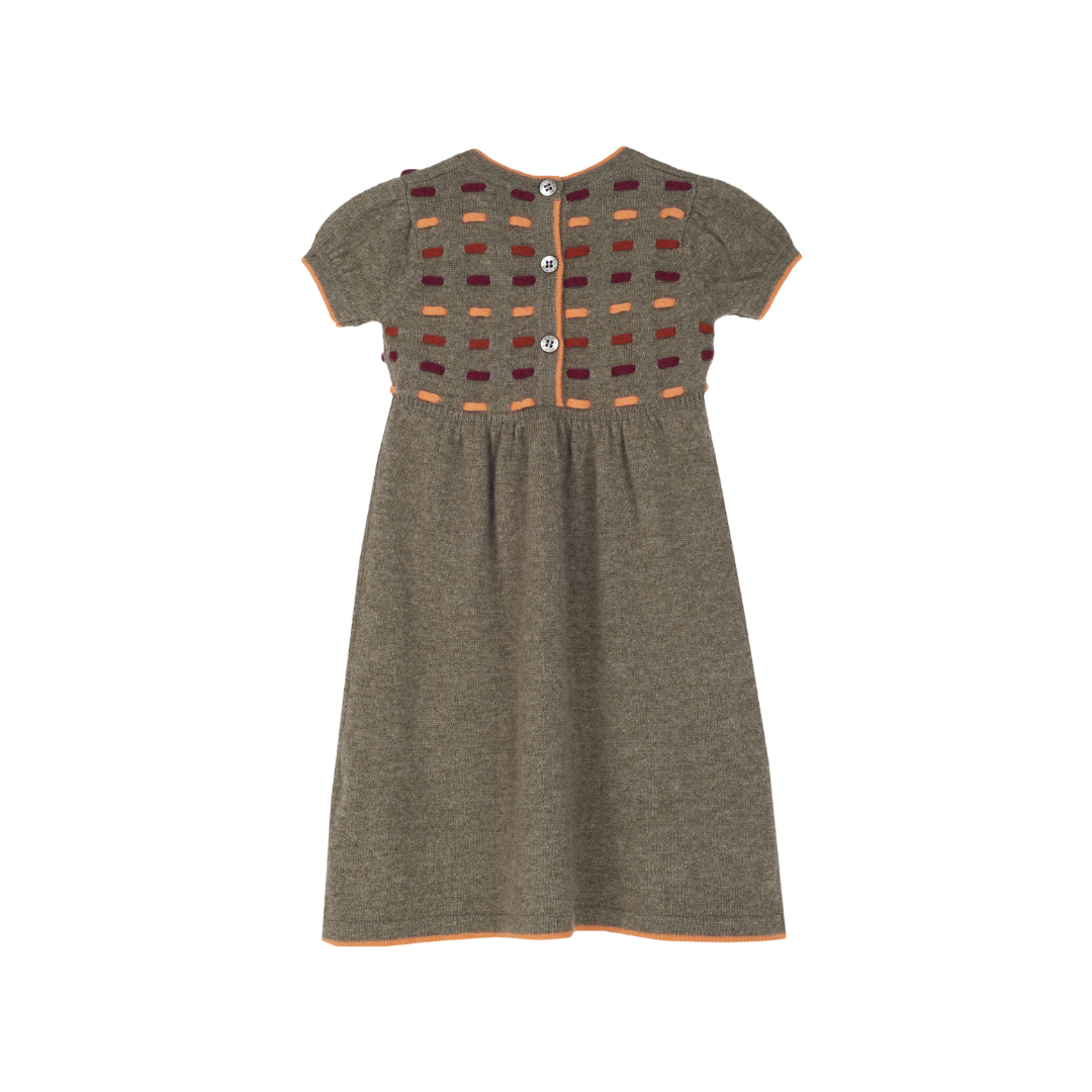 This elegant dress is made from 100% cashmere, offering softness and luxury. The short puff sleeves and textured check pattern on the upper bodice add a touch of charm to the simple, classic design. The flowy silhouette and delicate detailing make it perfect for both casual and formal occasions, providing comfort without compromising on style.