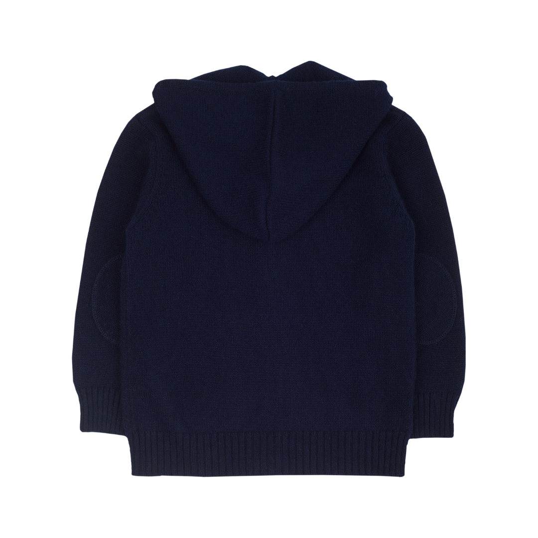 Simple, stylish, and 100% luxuriously soft cashmere, this cardigan hoodie is perfect for keeping little ones cosy on crisp winter days. Zip up and fasten the toggle for extra warmth, while practical pockets and contrasting elbow patches add both charm and function. A cosy classic that’s as clever as it is comfy.