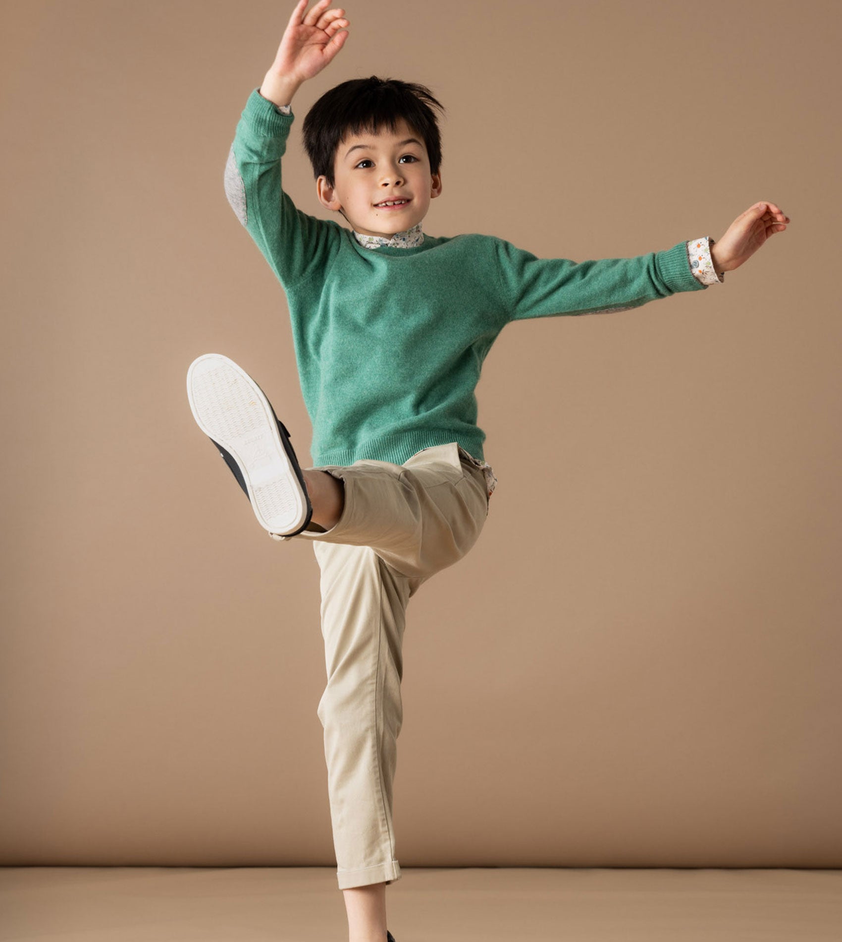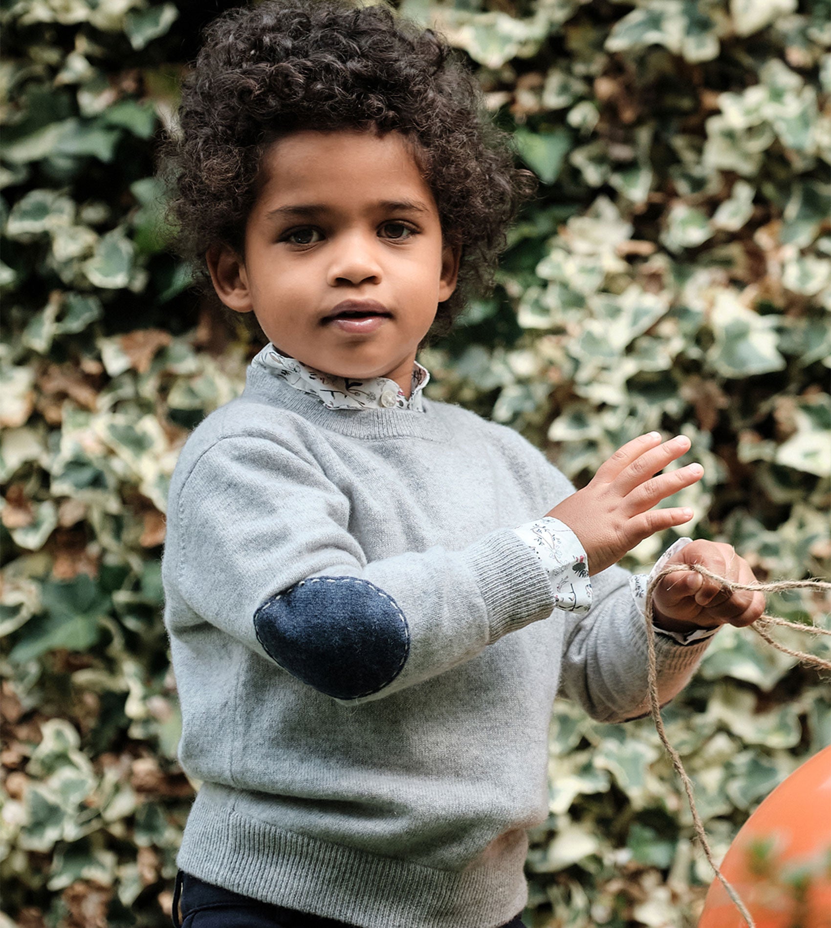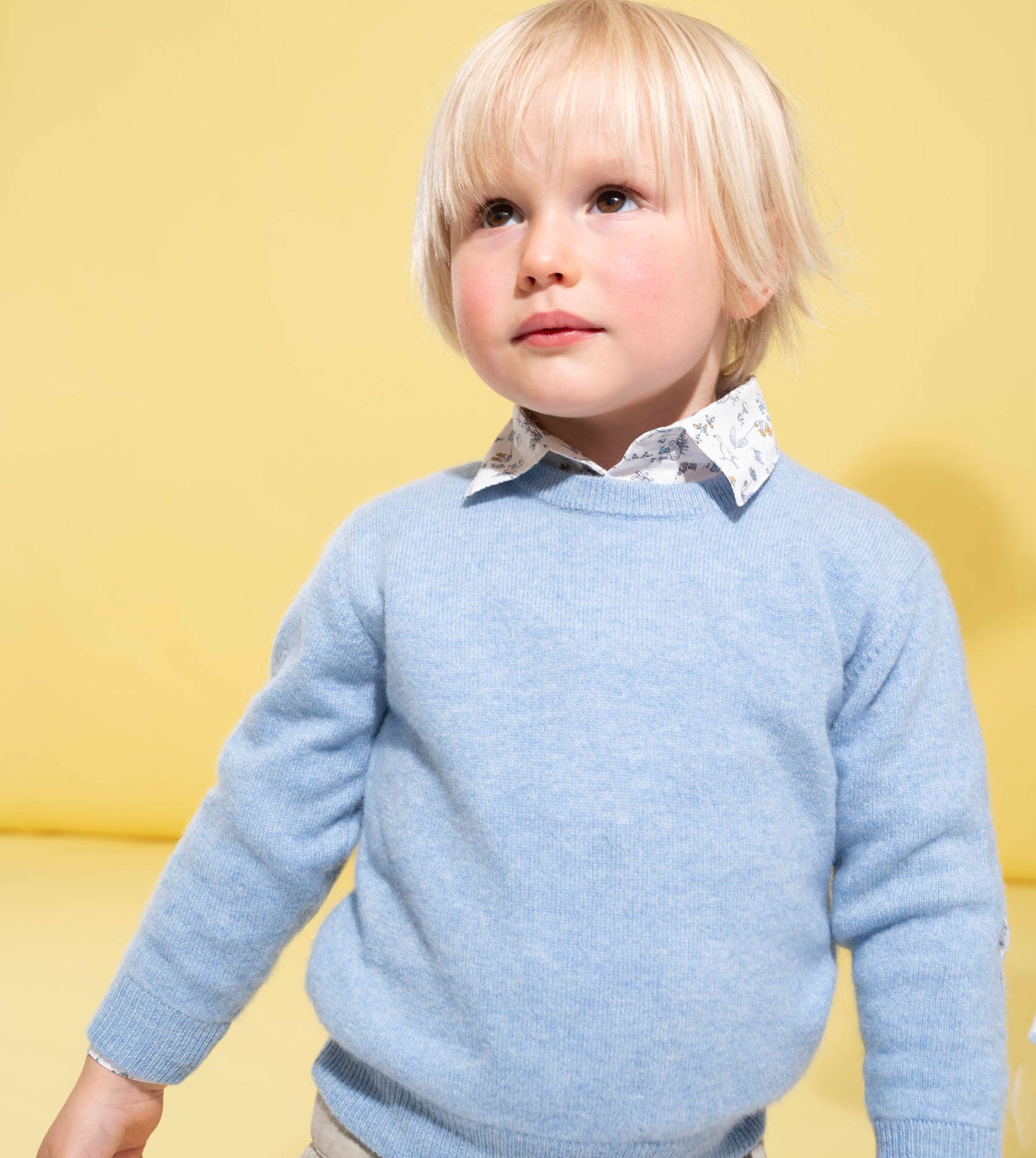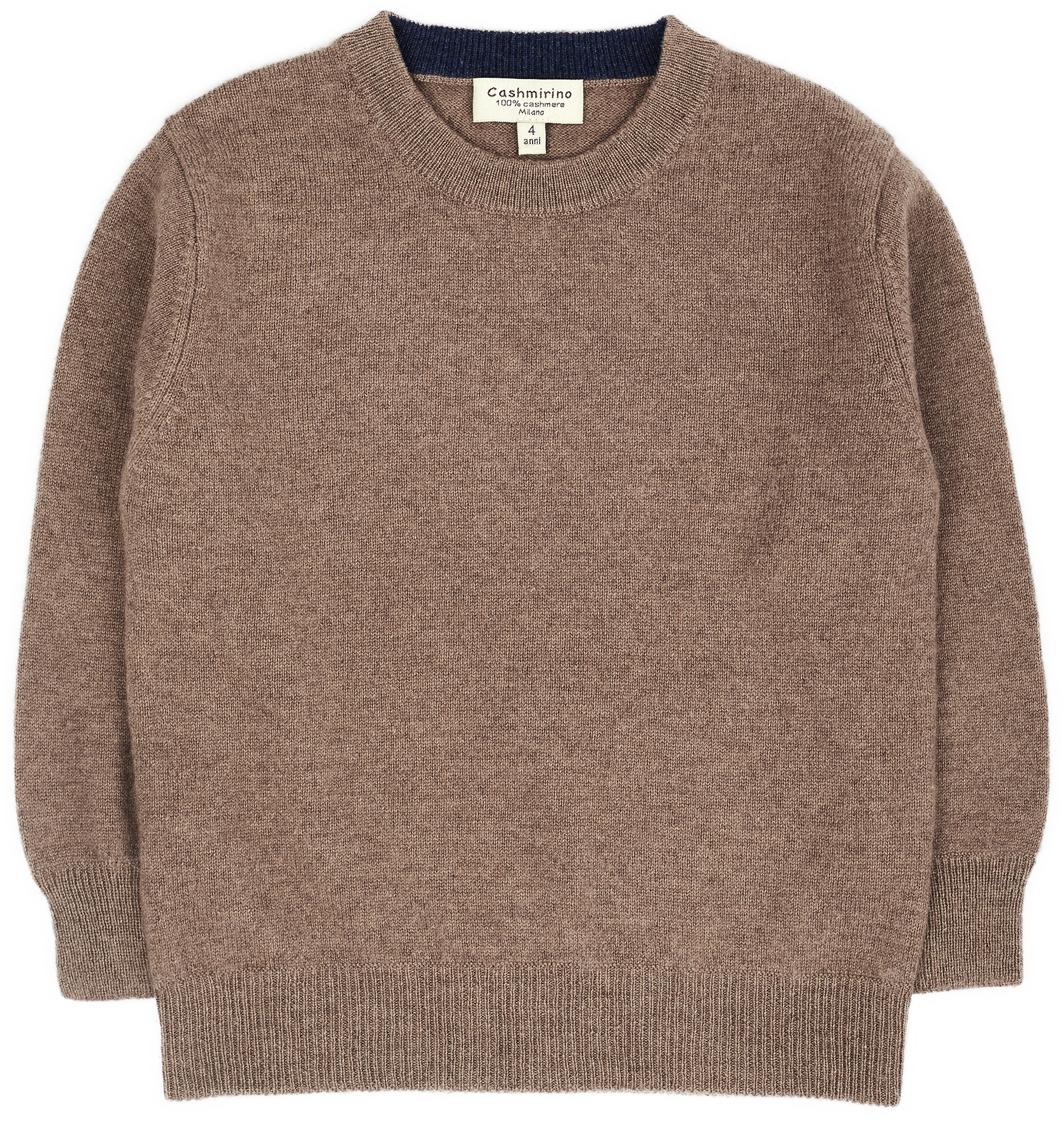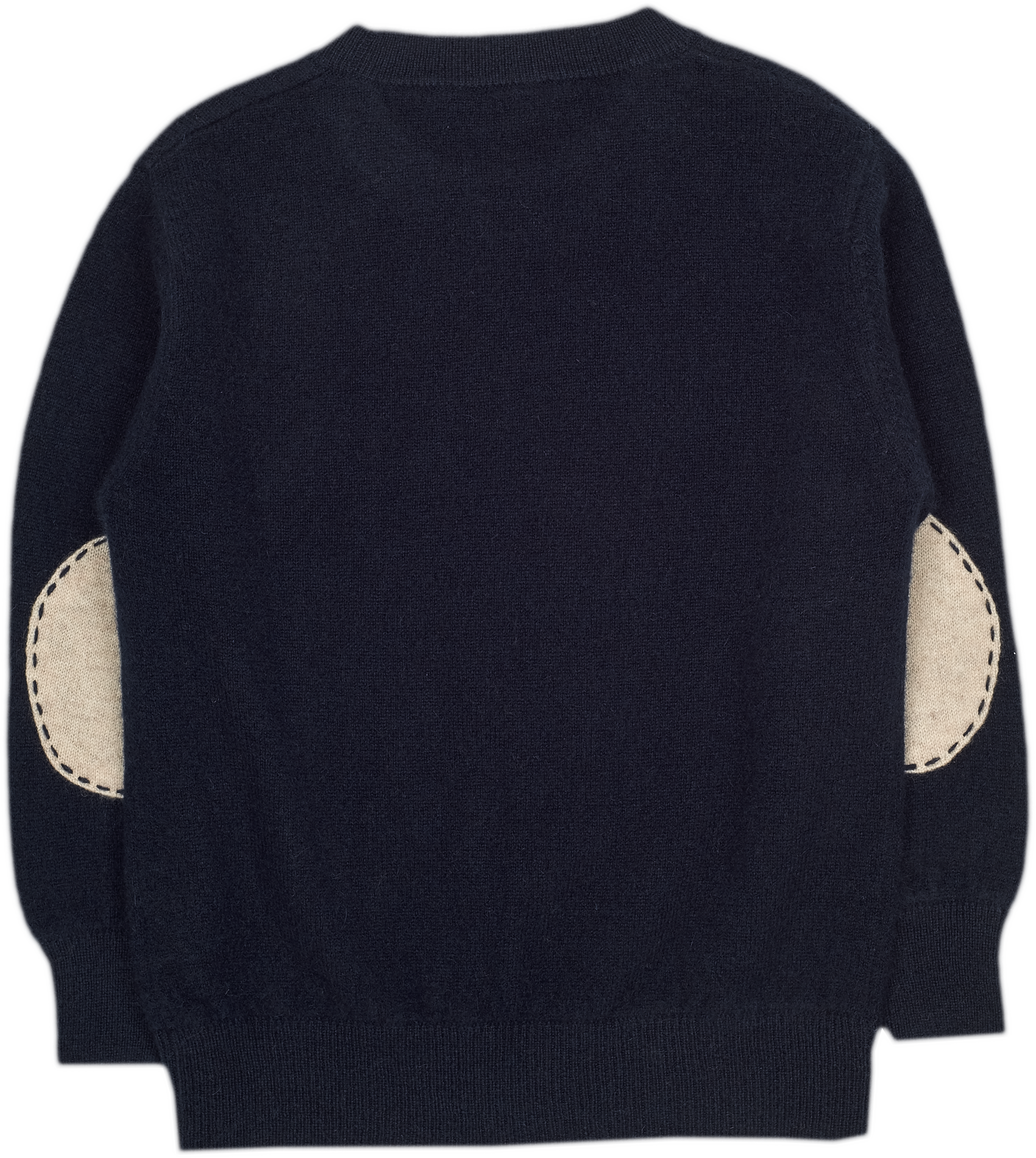 A timeless essential for every young gentleman's wardrobe, this boys' crew neck jumper is expertly crafted from 100% lightweight cashmere — soft, breathable, and gentle on delicate skin. Designed with comfort and style in mind, it features long sleeves, a classic ribbed hem, and subtle contrasting details on the inside and elbow patches for a refined touch.
