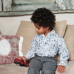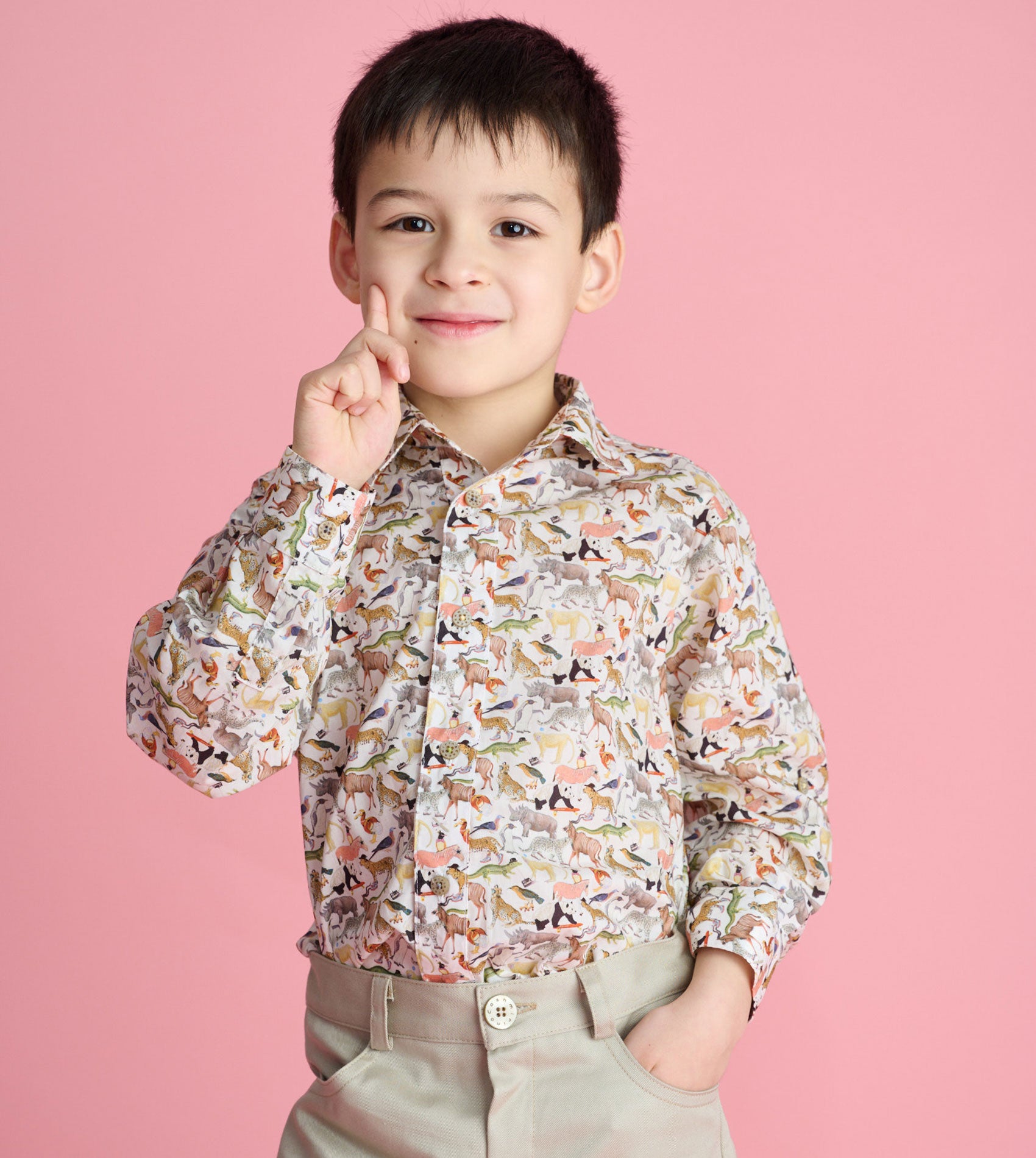 Let your little bears sparkle with this boy's shirt, specially tailored to befit both casual and formal occasions. This long-sleeved, fun-loving piece is made with Liberty fabrics and a neat classic collar. Cashmirino signature buttons.