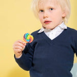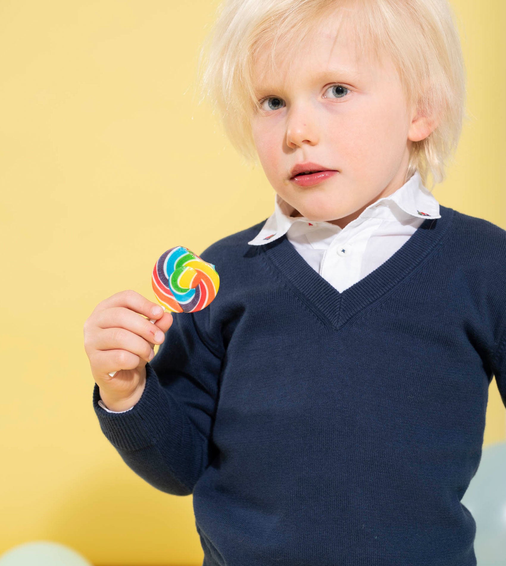 A classic boy cotton v neck jumper with long sleeves and a ribbed hem. This lightweight jumper can be used in Fall or Spring or as a layer in Winter. Available in a range of sizes.