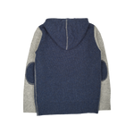 Crafted from 100% pure cashmere, this beautifully soft hooded jumper combines everyday comfort with refined design. Featuring a relaxed silhouette with a large front pocket, it is finished with contrasting long sleeves and coordinating elbow patches for a subtle yet distinctive touch.