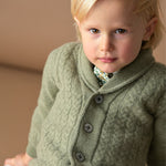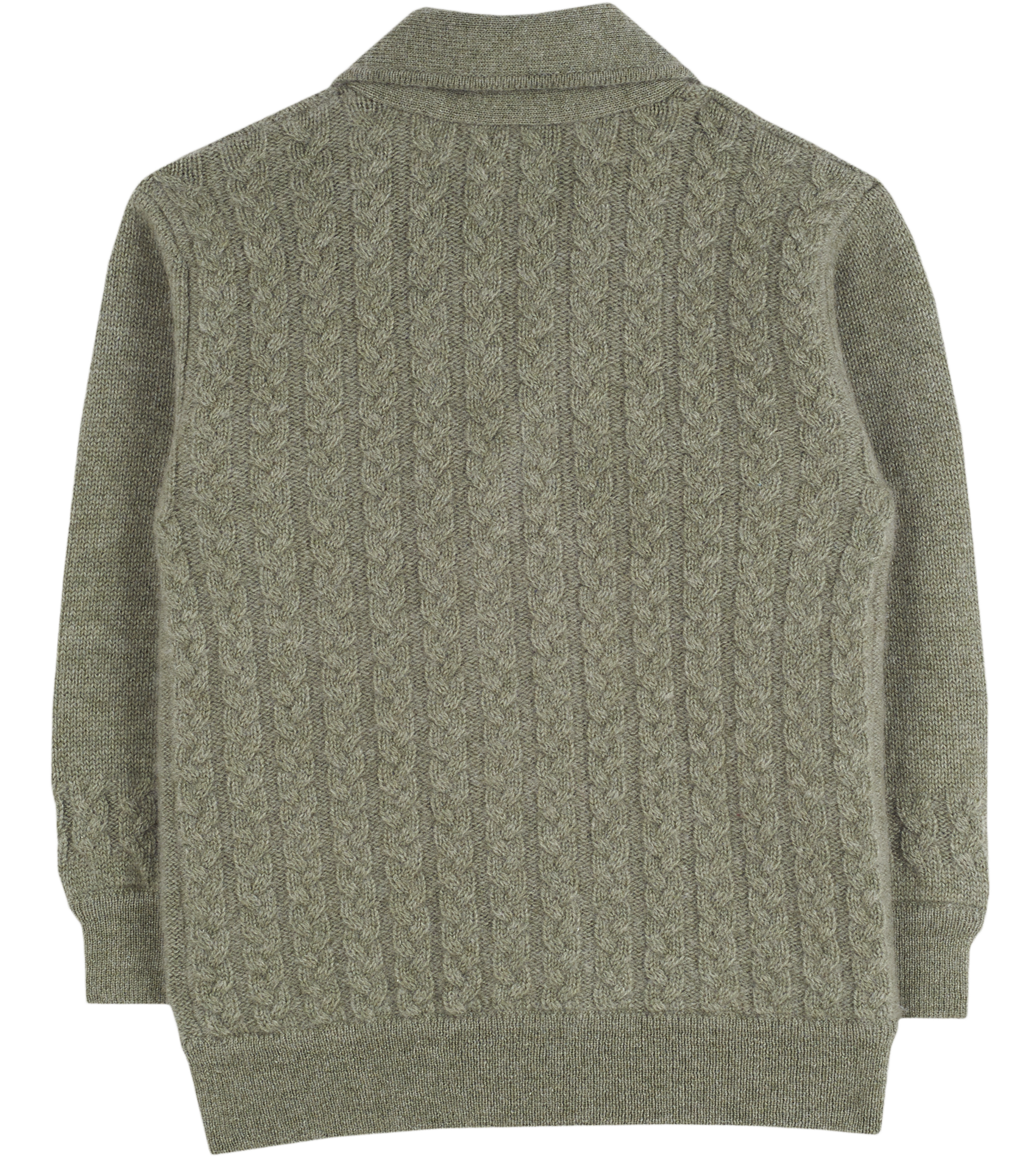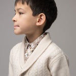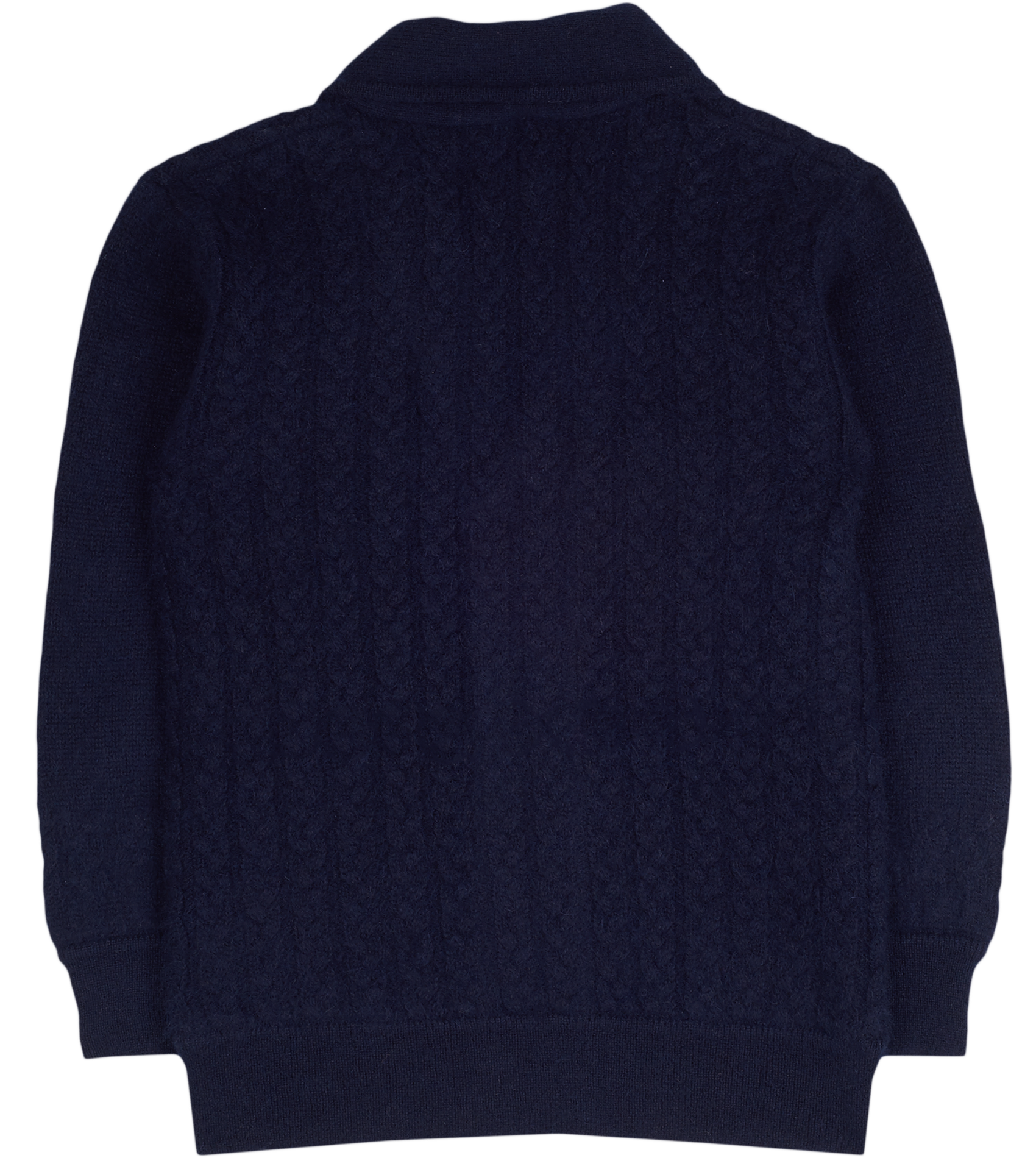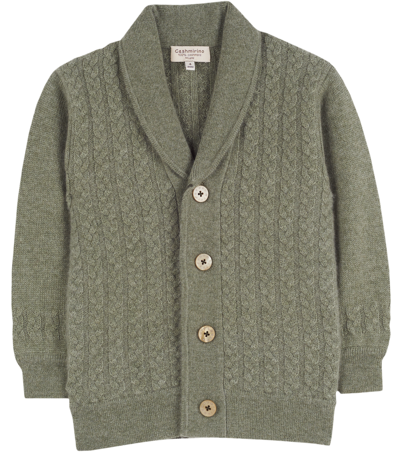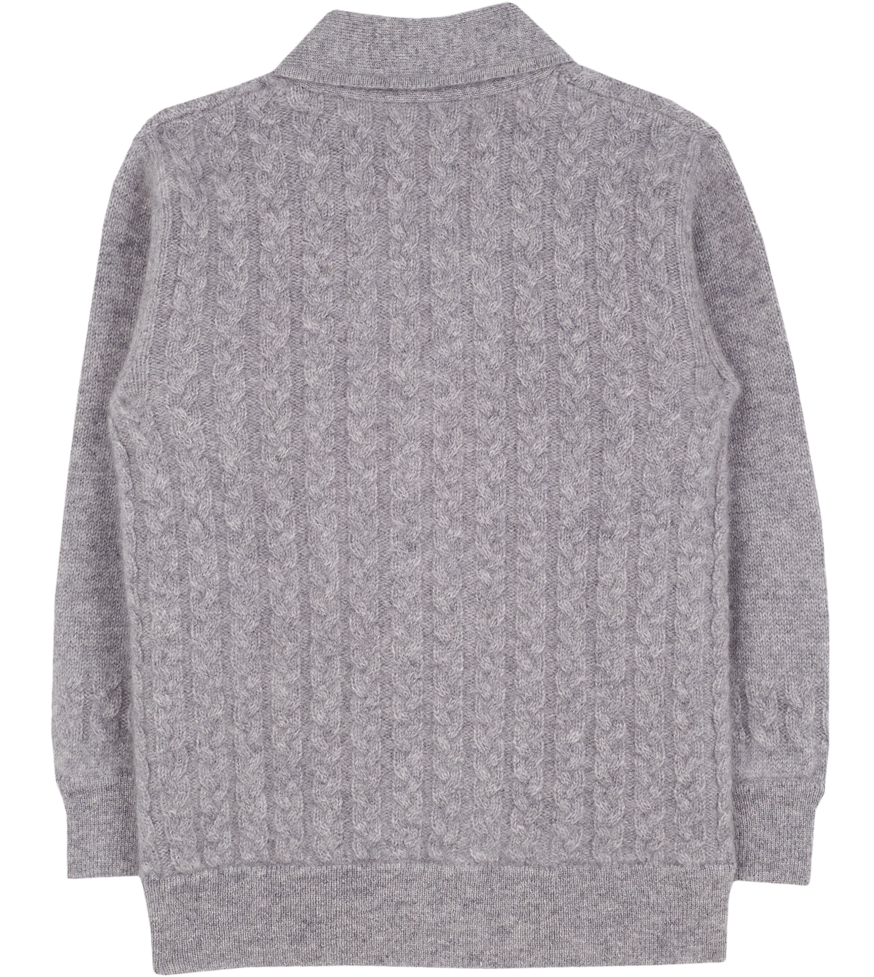 Knitted in soft 100% Cashmere, incorporate a formal look into your little boy's wardrobe. Our long-sleeved blazer is ideal for everyday layering. This features a cable knit and a shawl collar so that your little one can dress to impress. This classic piece is best for the colder months and can be paired with one of our shirts. With ribbed hems, a contrasting colour on the inside of all borders, and the addition of our Cashmirino buttons, this is a delightful piece for your little one.