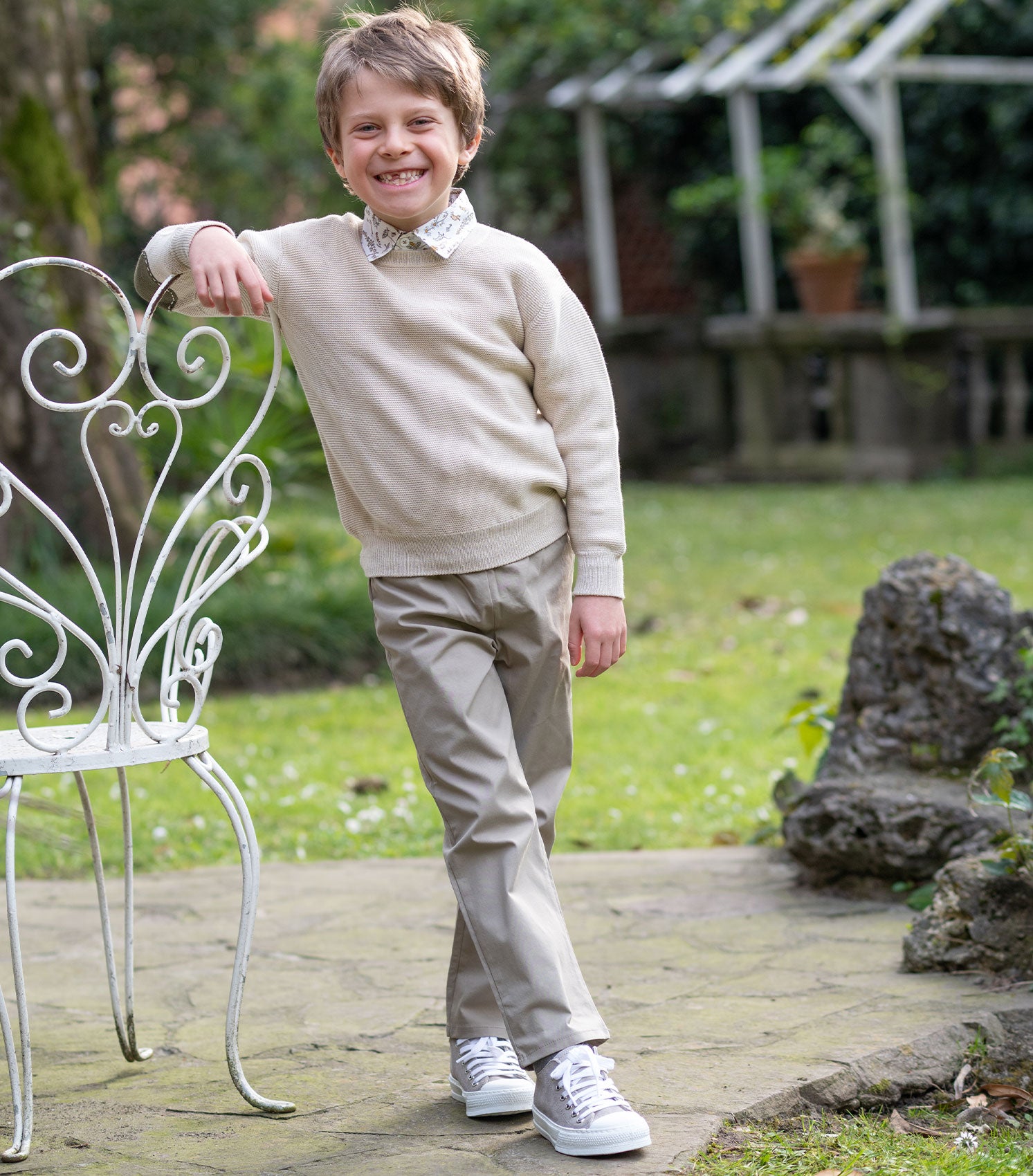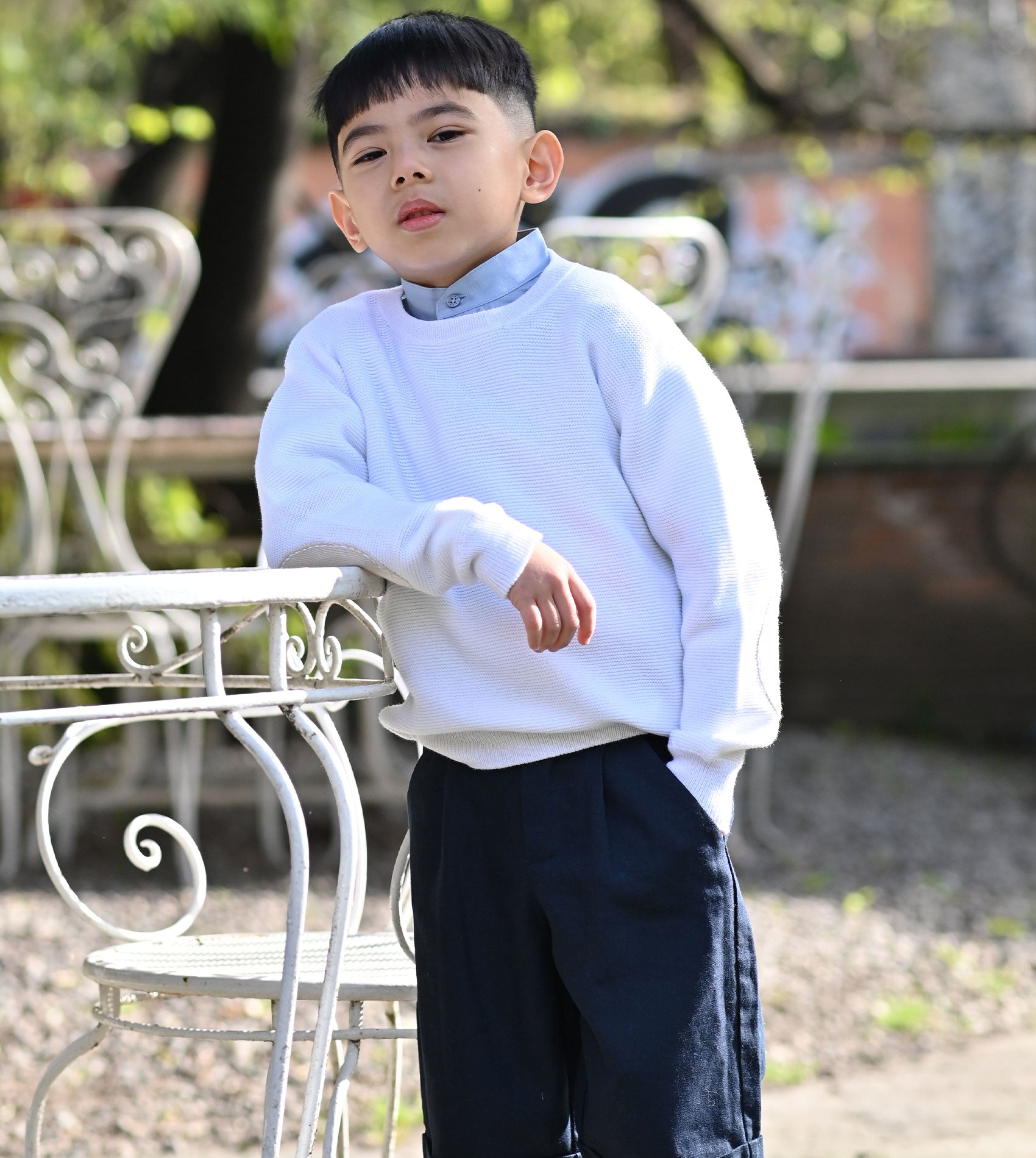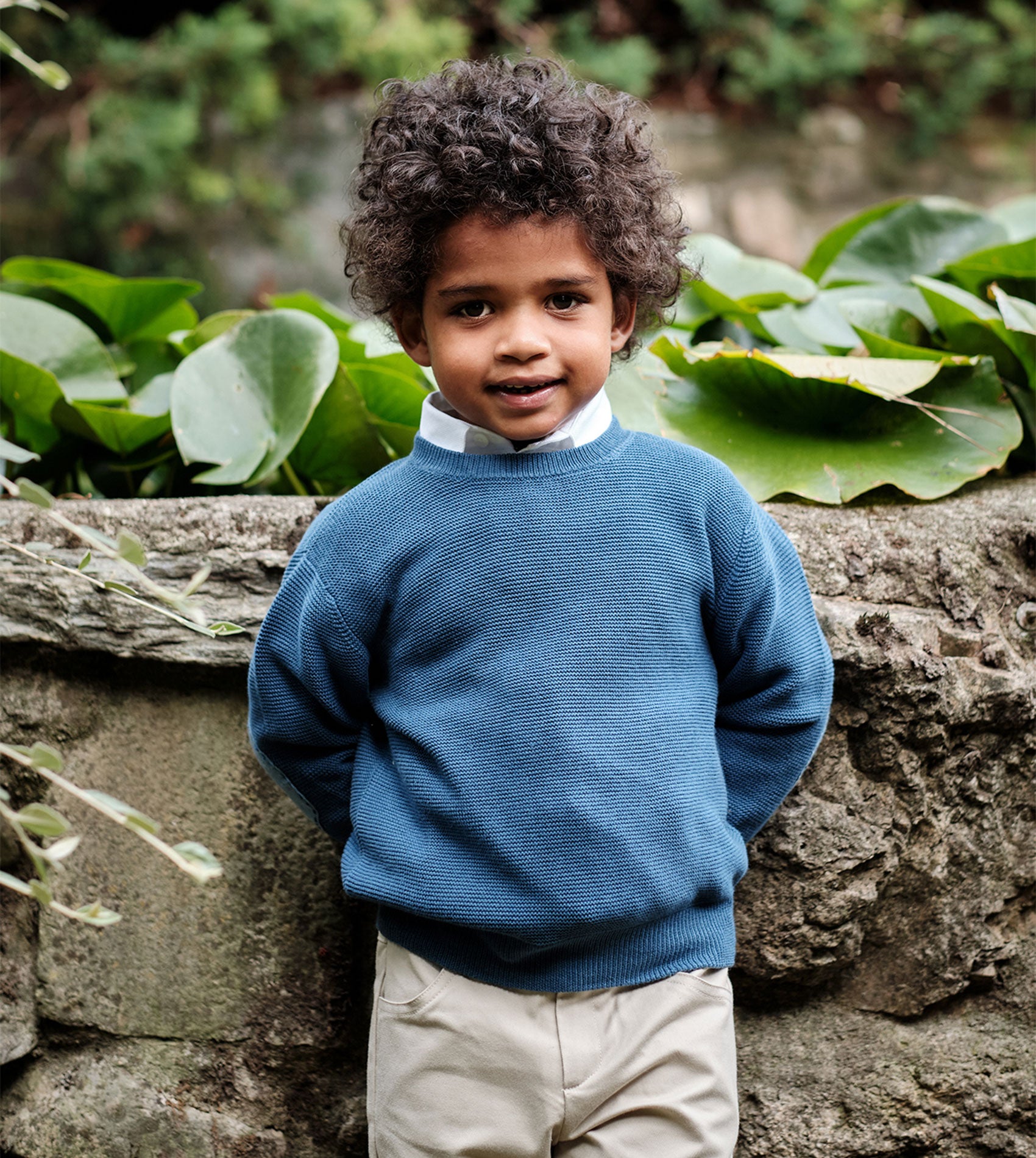 Our timeless crew neck jumper for boys is crafted from a luxurious blend of 70% cotton and 30% modal, making it exceptionally soft, breathable, and gentle on the skin. Designed for year-round wear, it is perfect for layering in winter or wearing on its own during the milder days of spring and autumn.