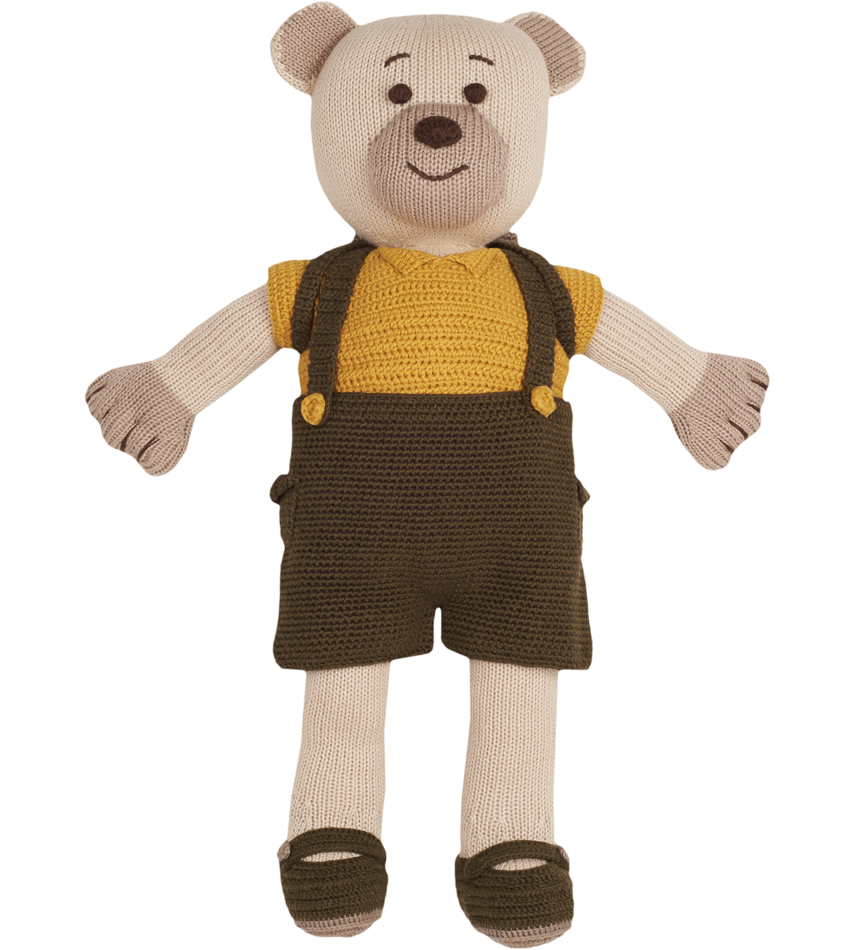 Meet Nico, a charming handmade heirloom bear designed to be treasured for years to come. Crafted from a luxuriously soft blend of 70% cotton and 30% modal, he is wonderfully gentle against delicate skin and made for endless cuddles.
